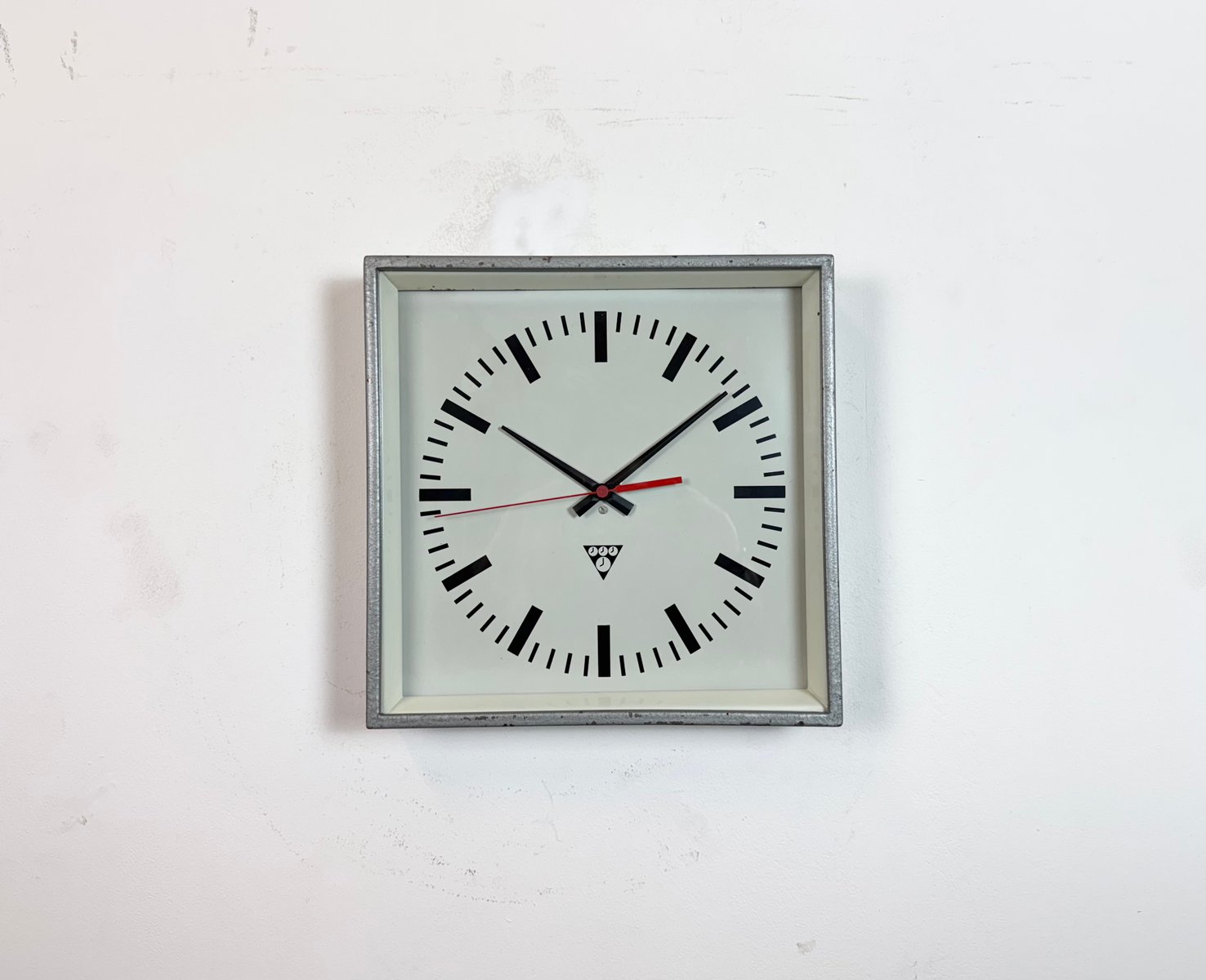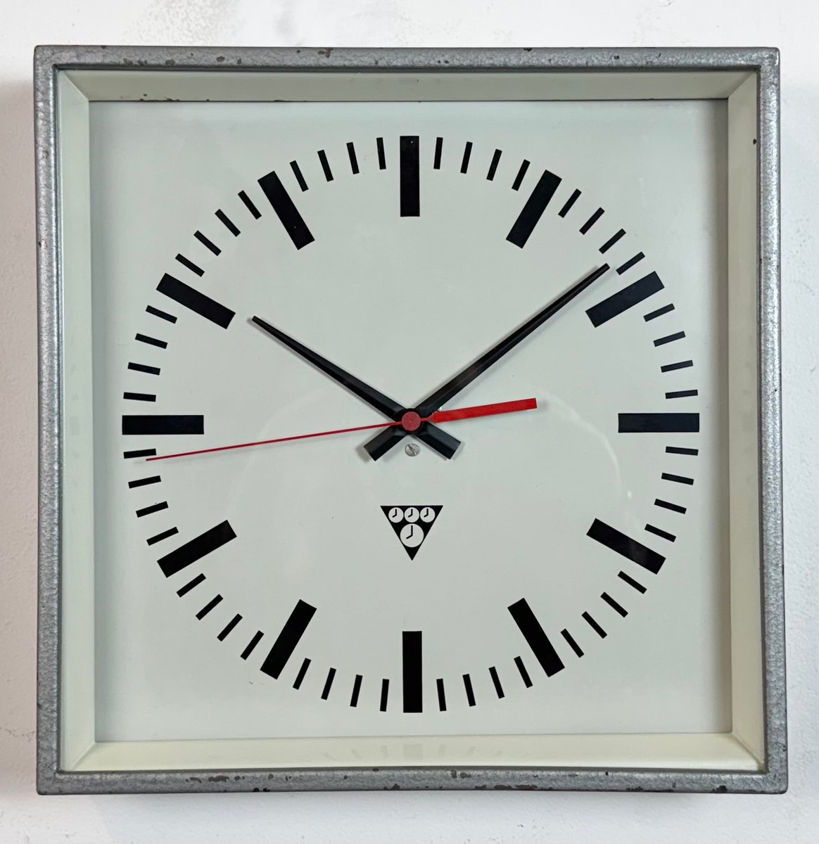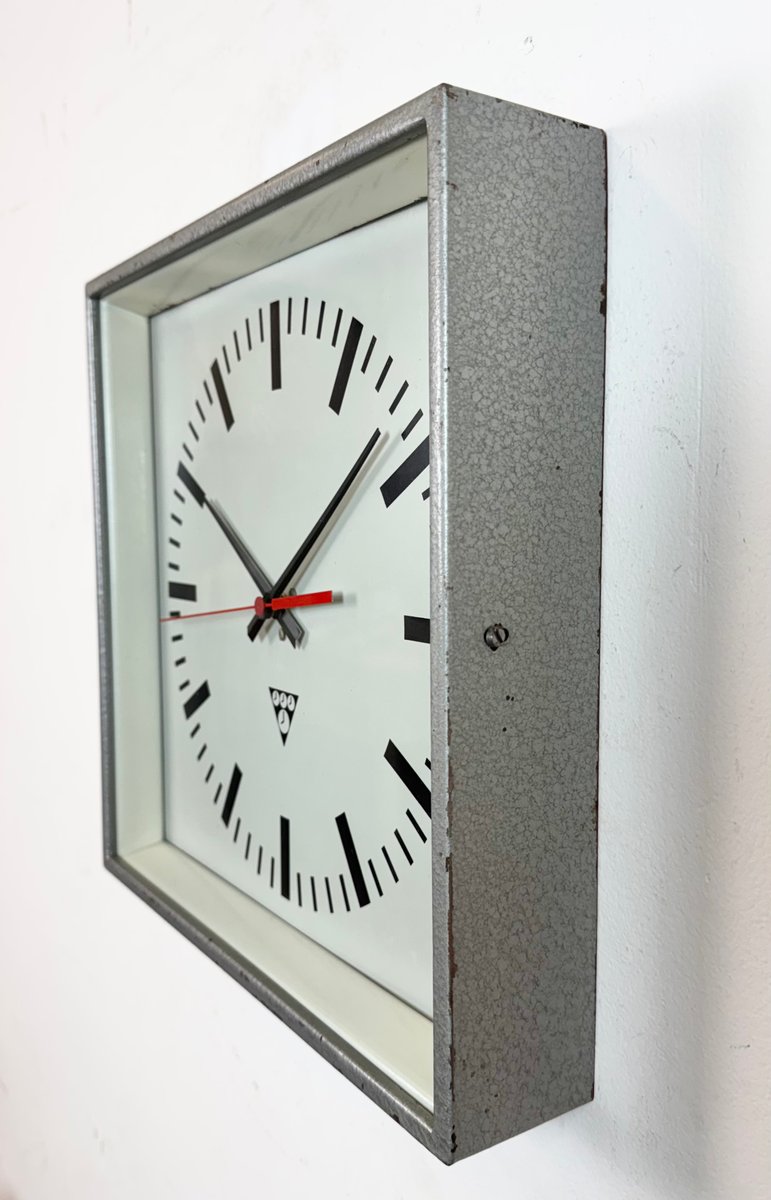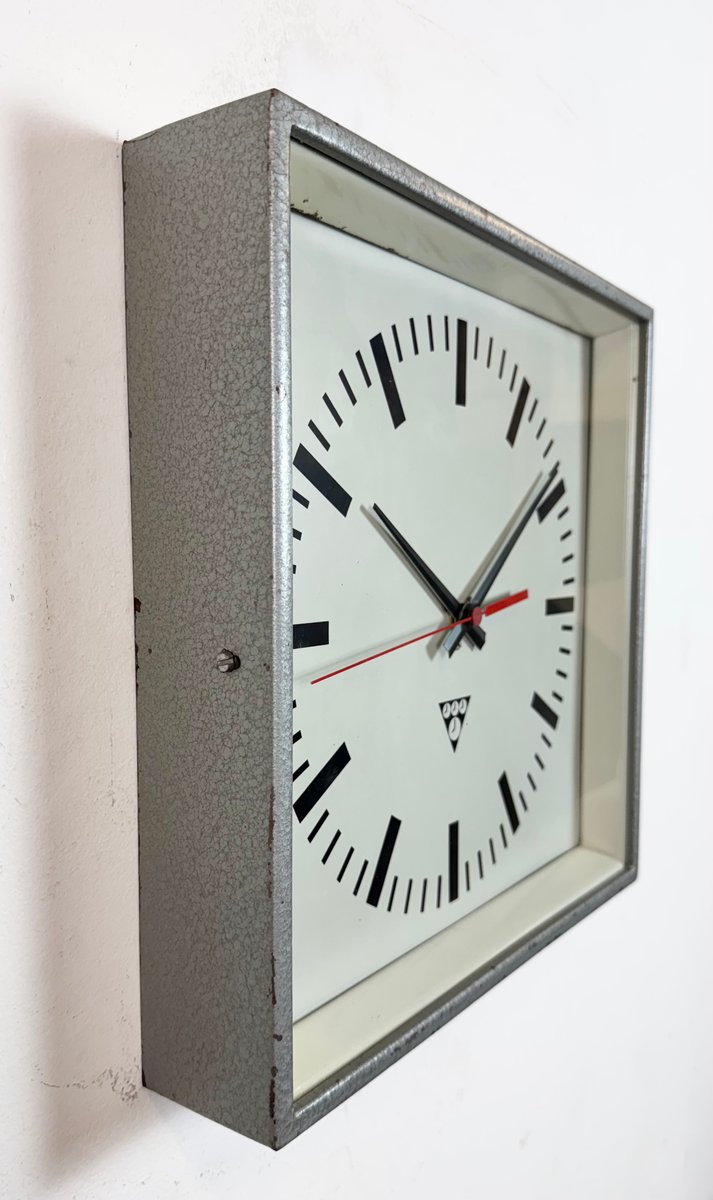 Industrial Grey Square Wall Clock from Pragotron, 1980s