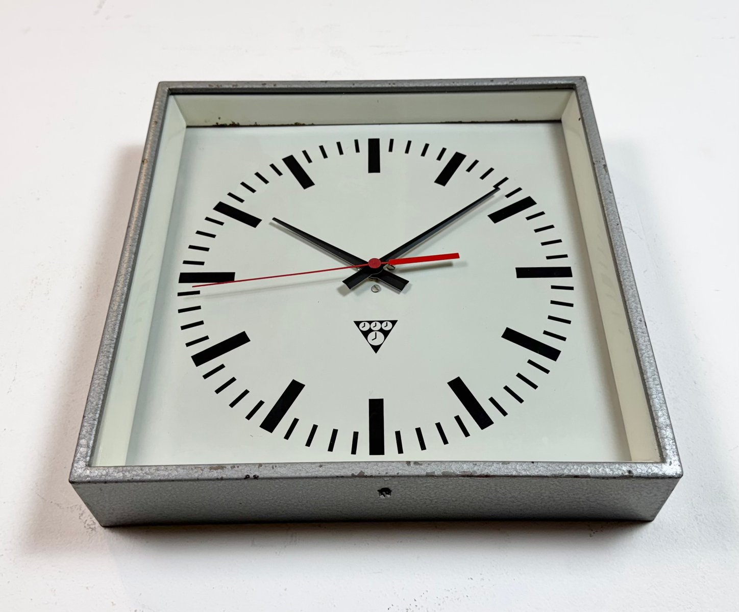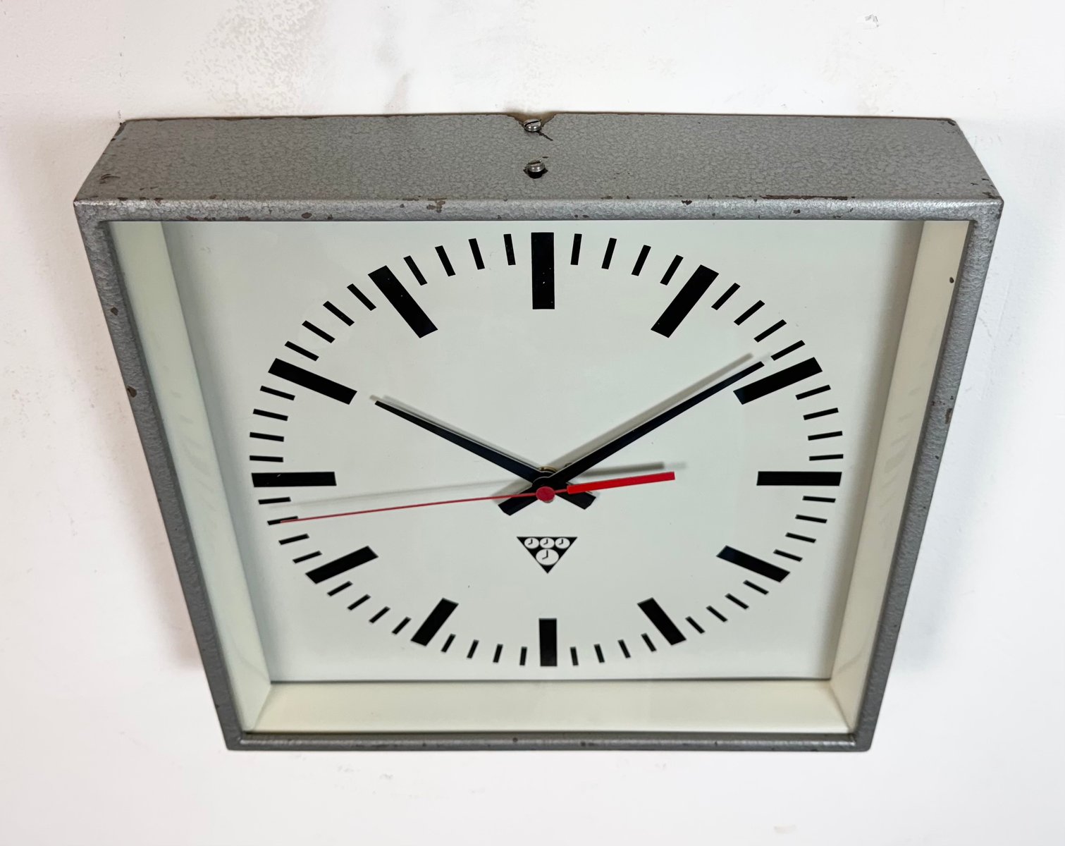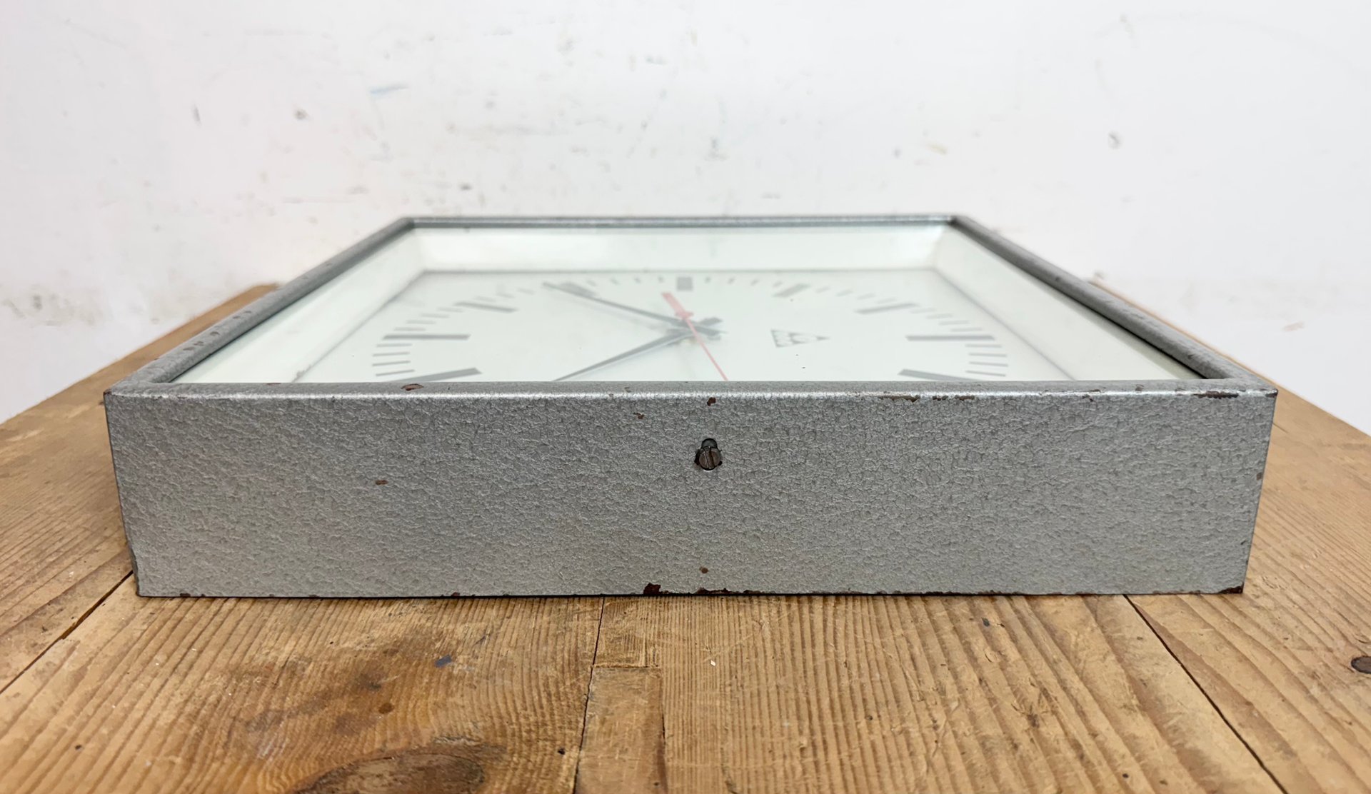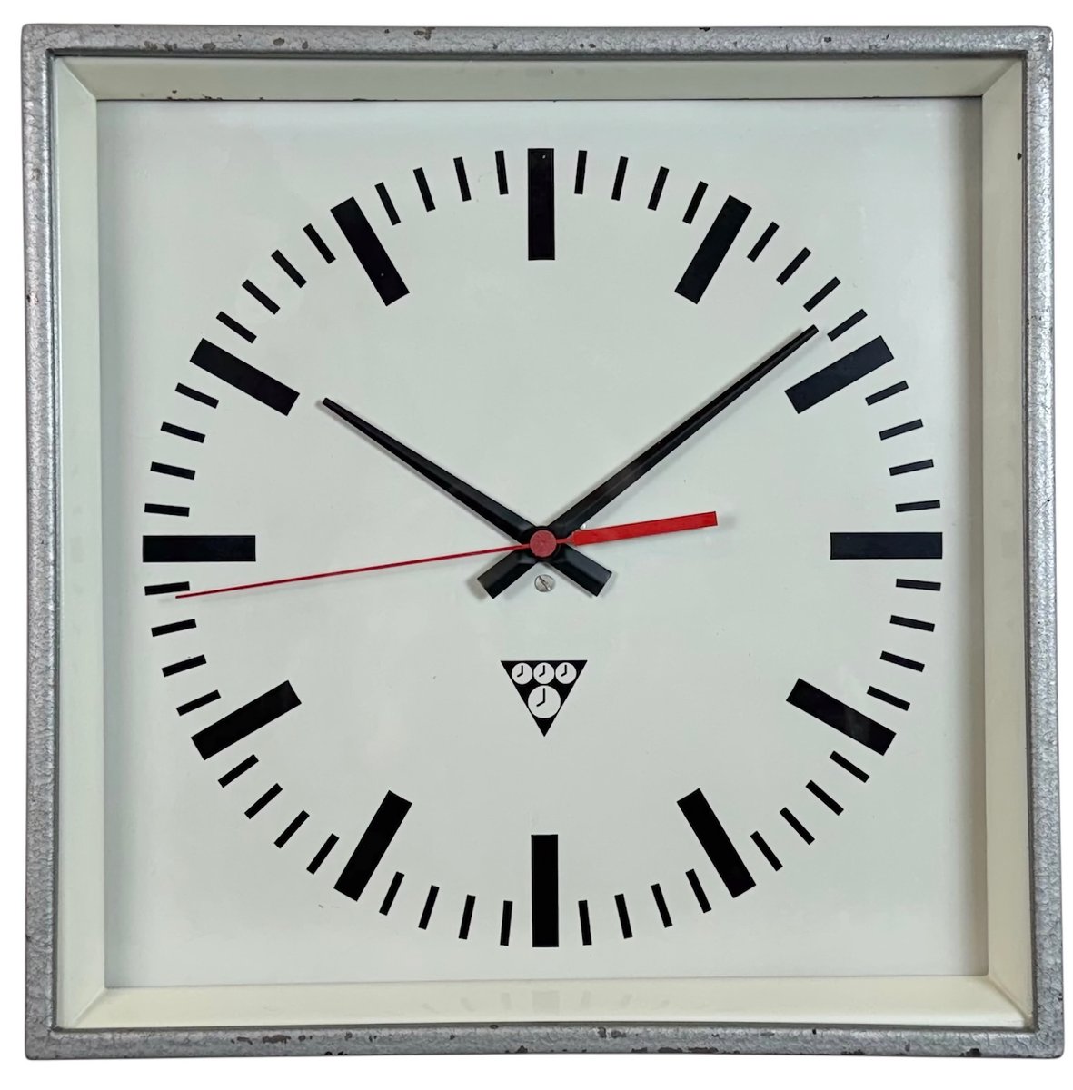 Industrial Grey Square Wall Clock from Pragotron, 1980s