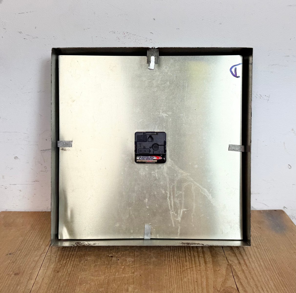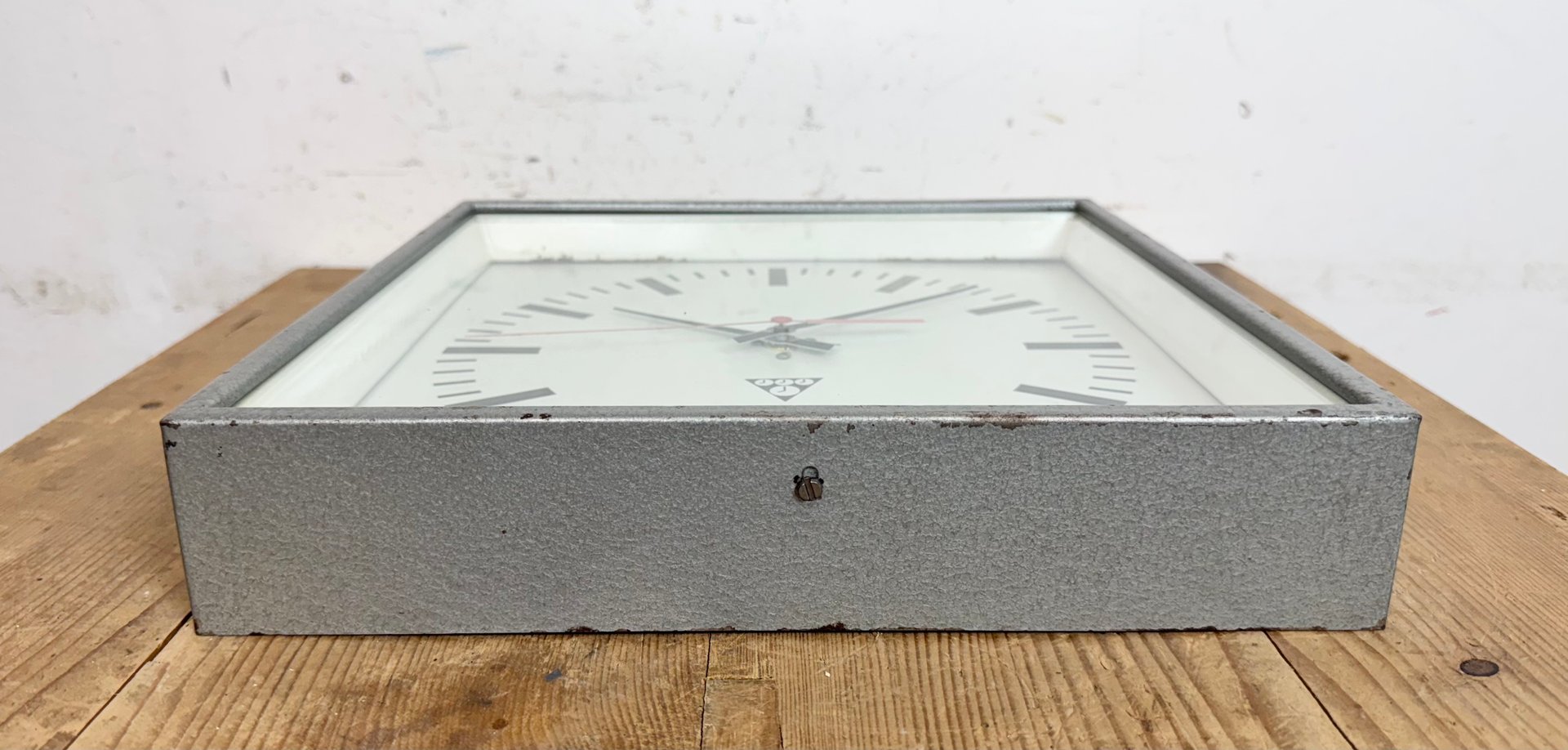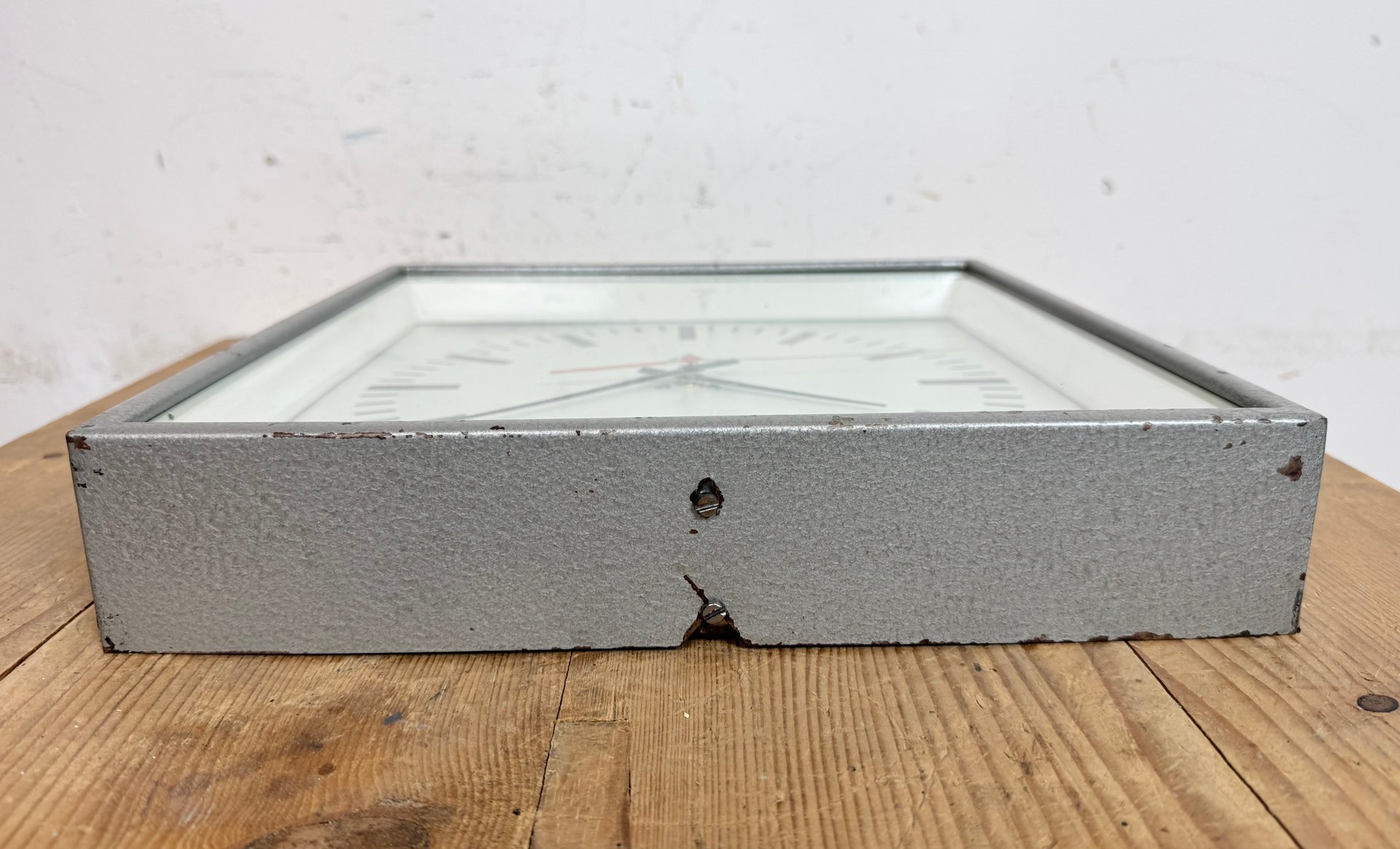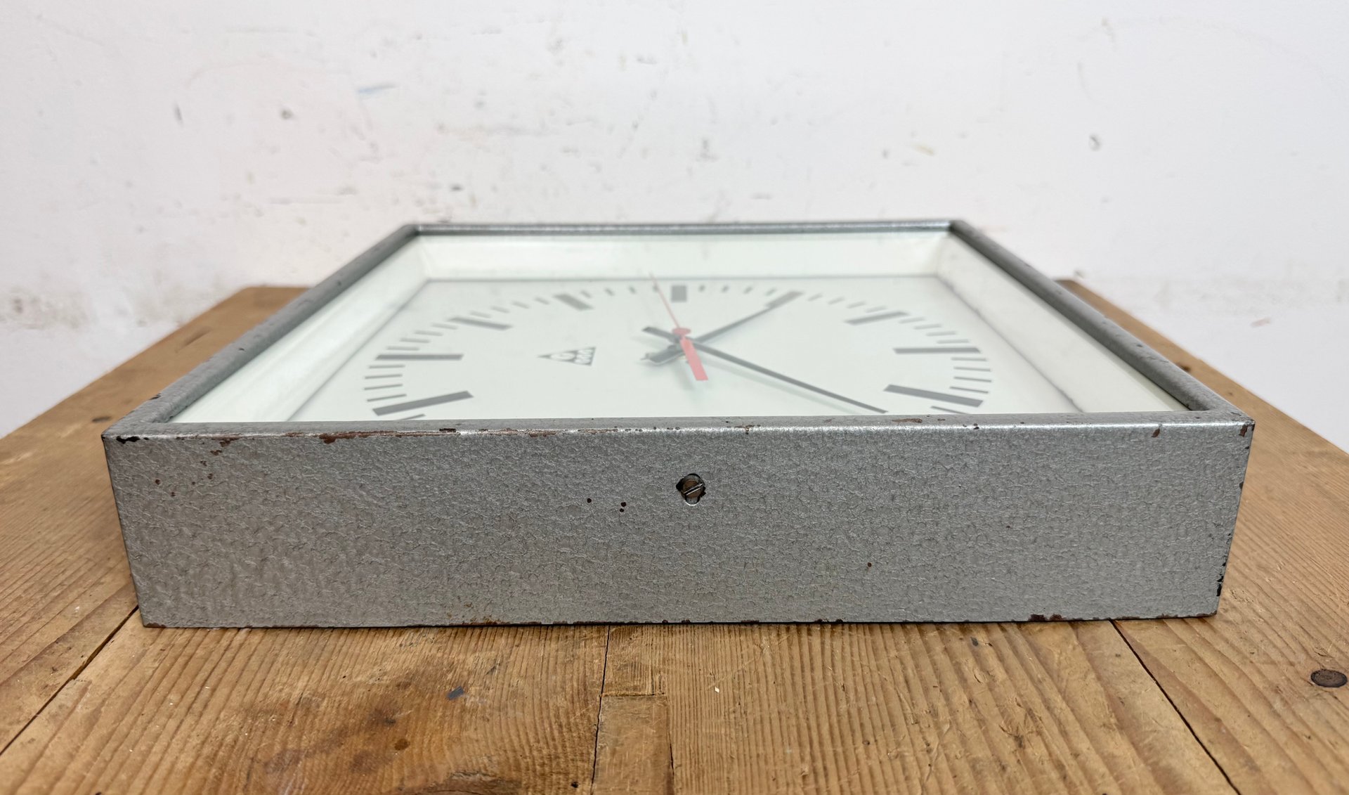 Industrial Grey Square Wall Clock from Pragotron, 1980s