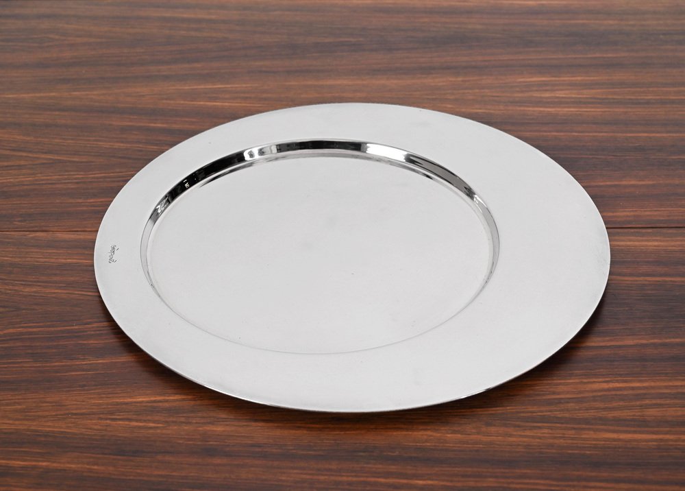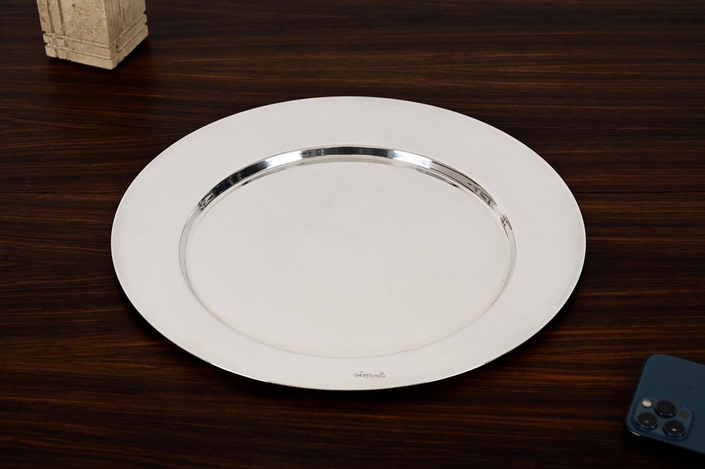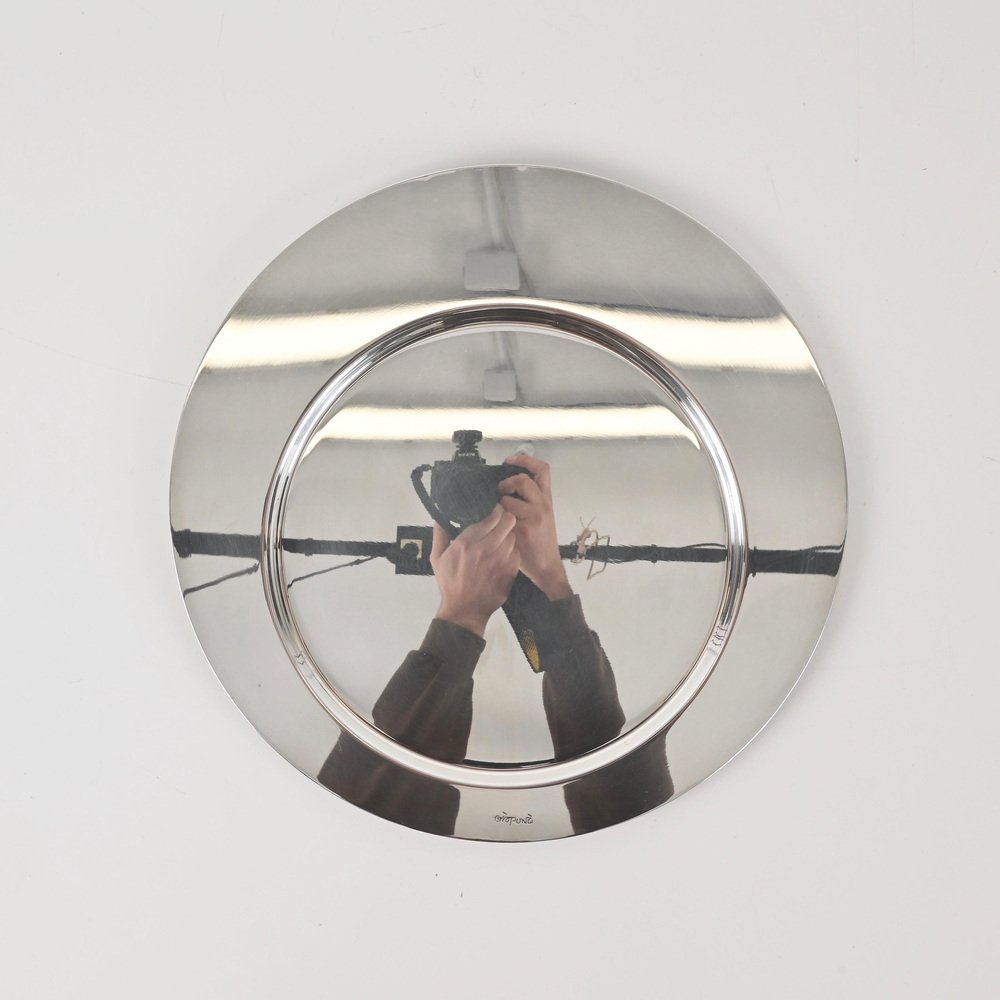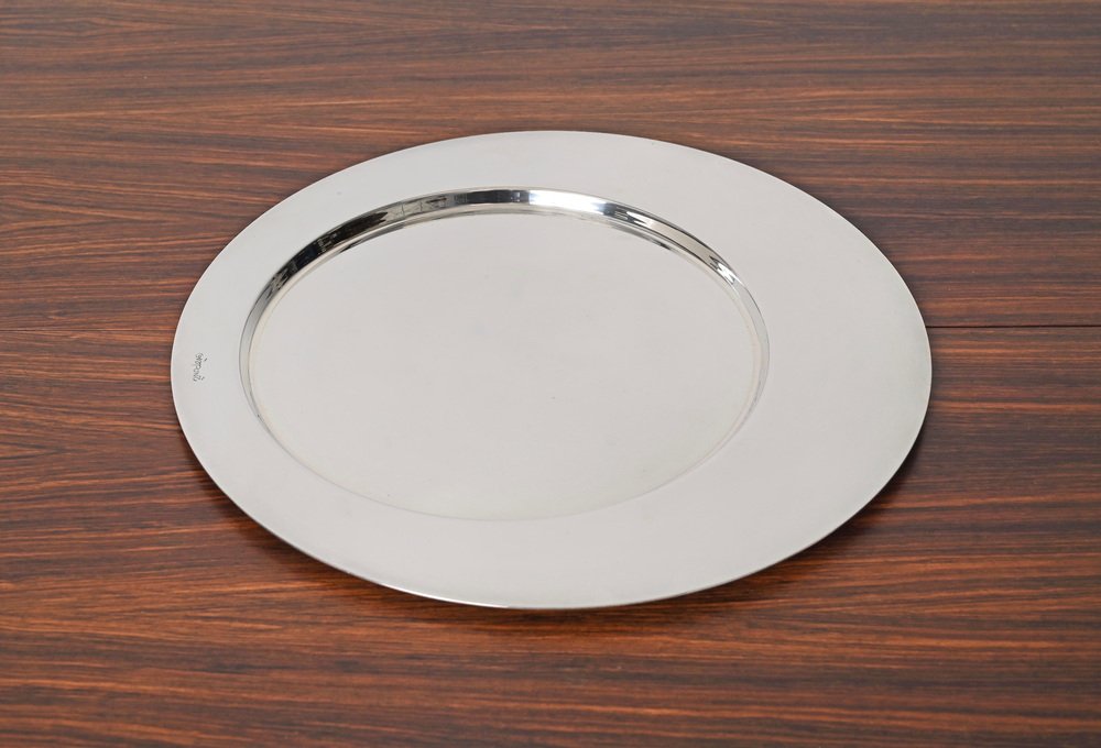 Mid-Century Italian Round White Carrara Marble and Steel Dressing Mirror, 1960s