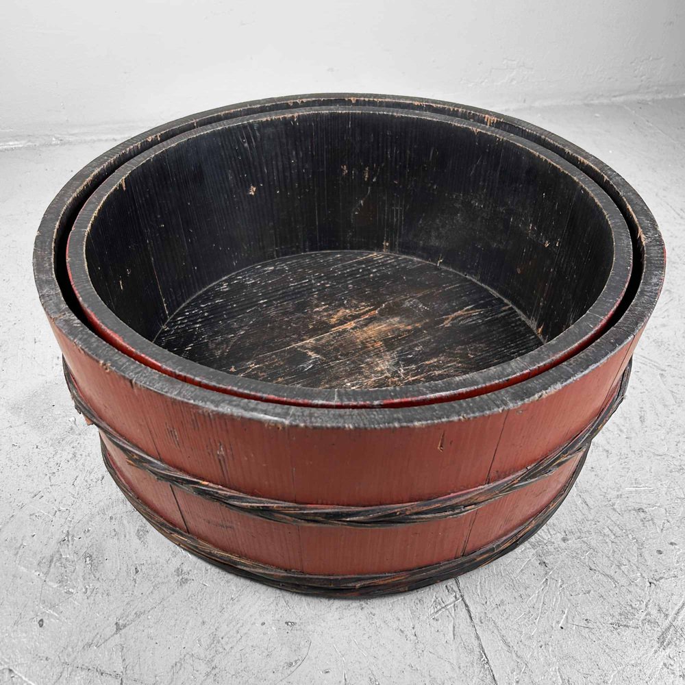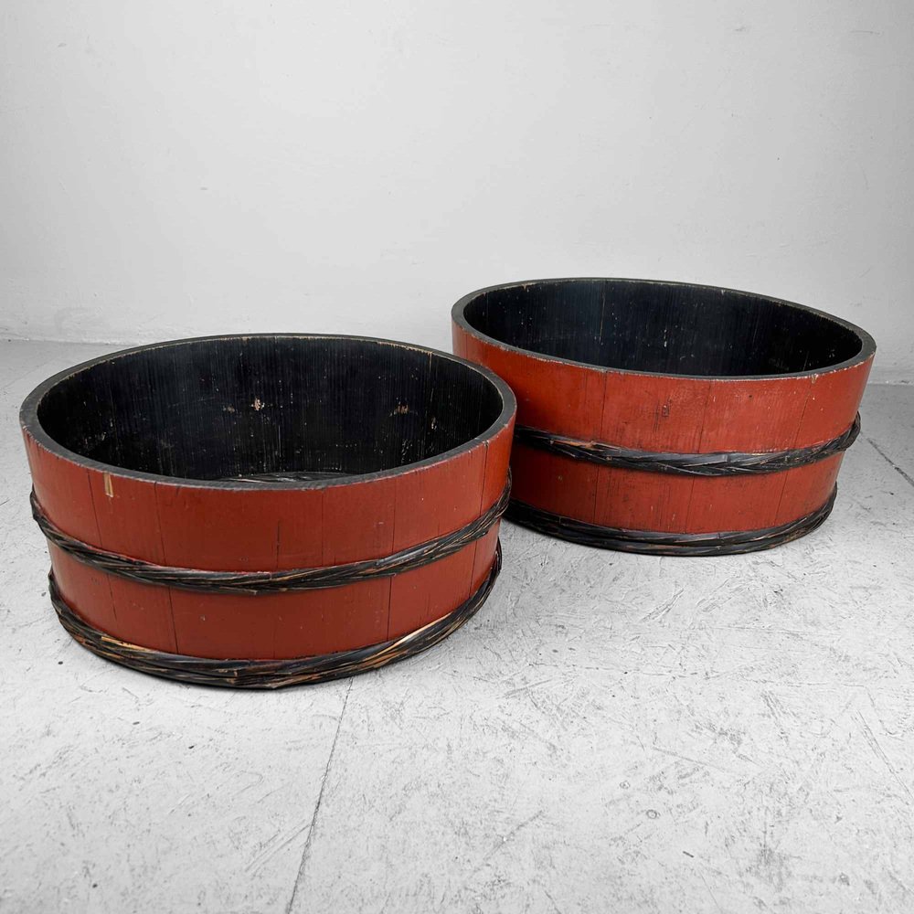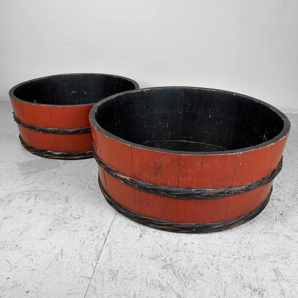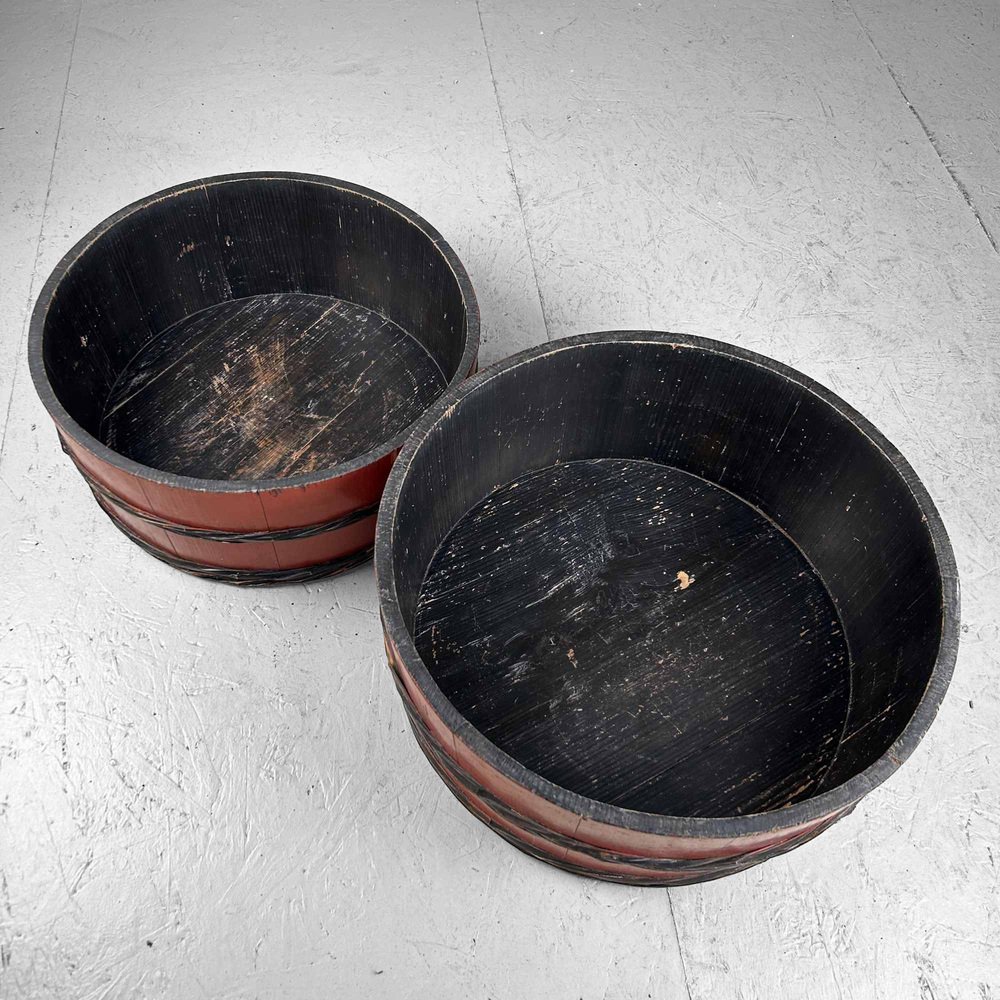 Japanese Lacquered Wooden Tubs, 1920s, Set of 2