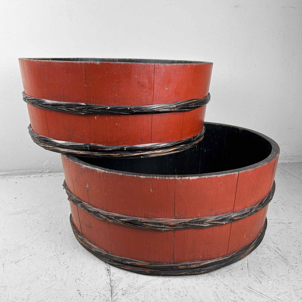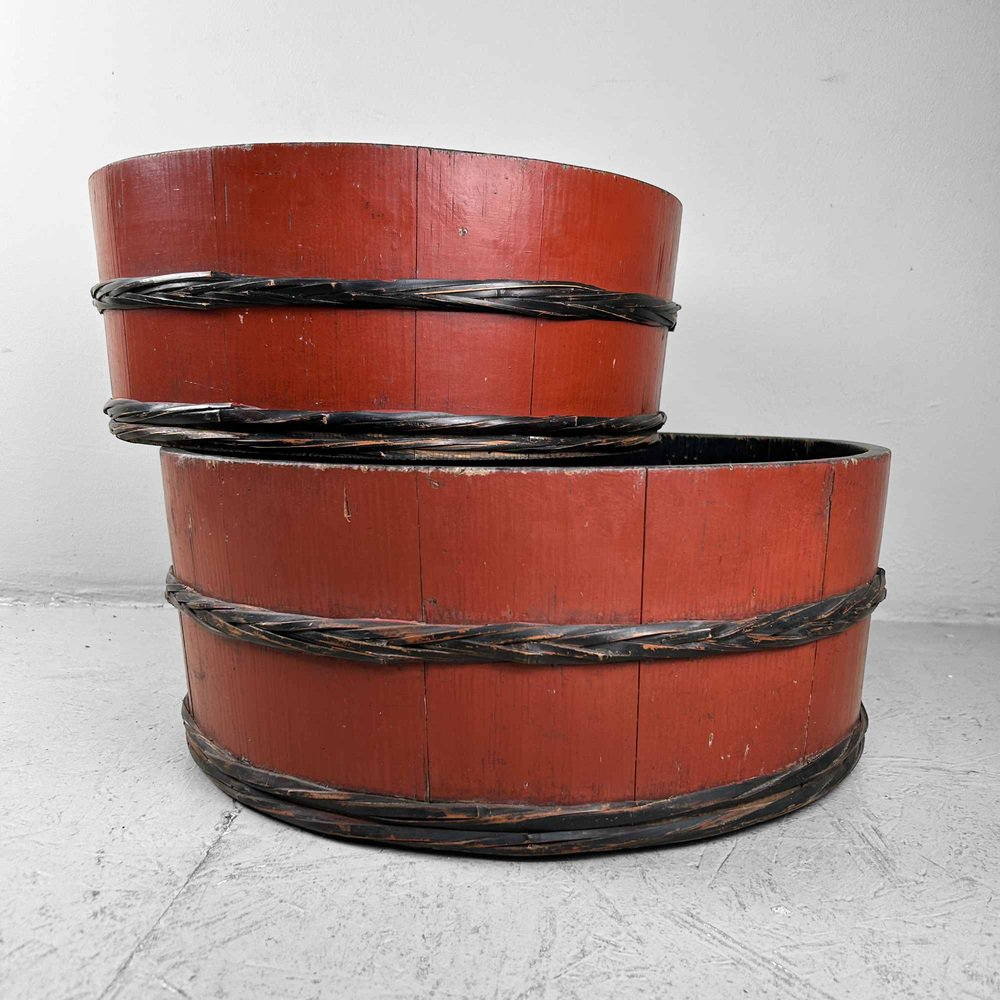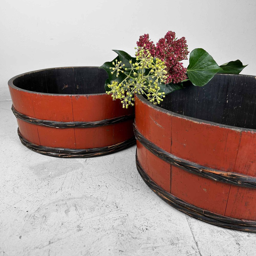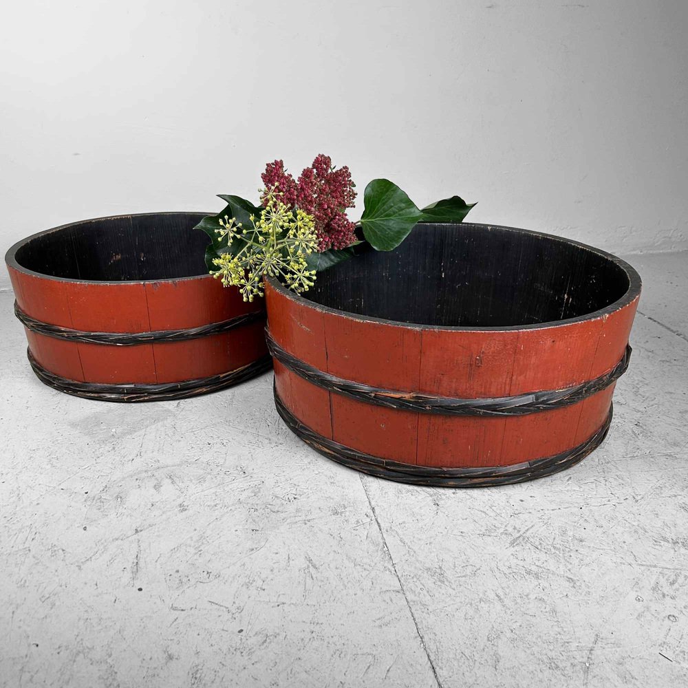 Japanese Lacquered Wooden Tubs, 1920s, Set of 2