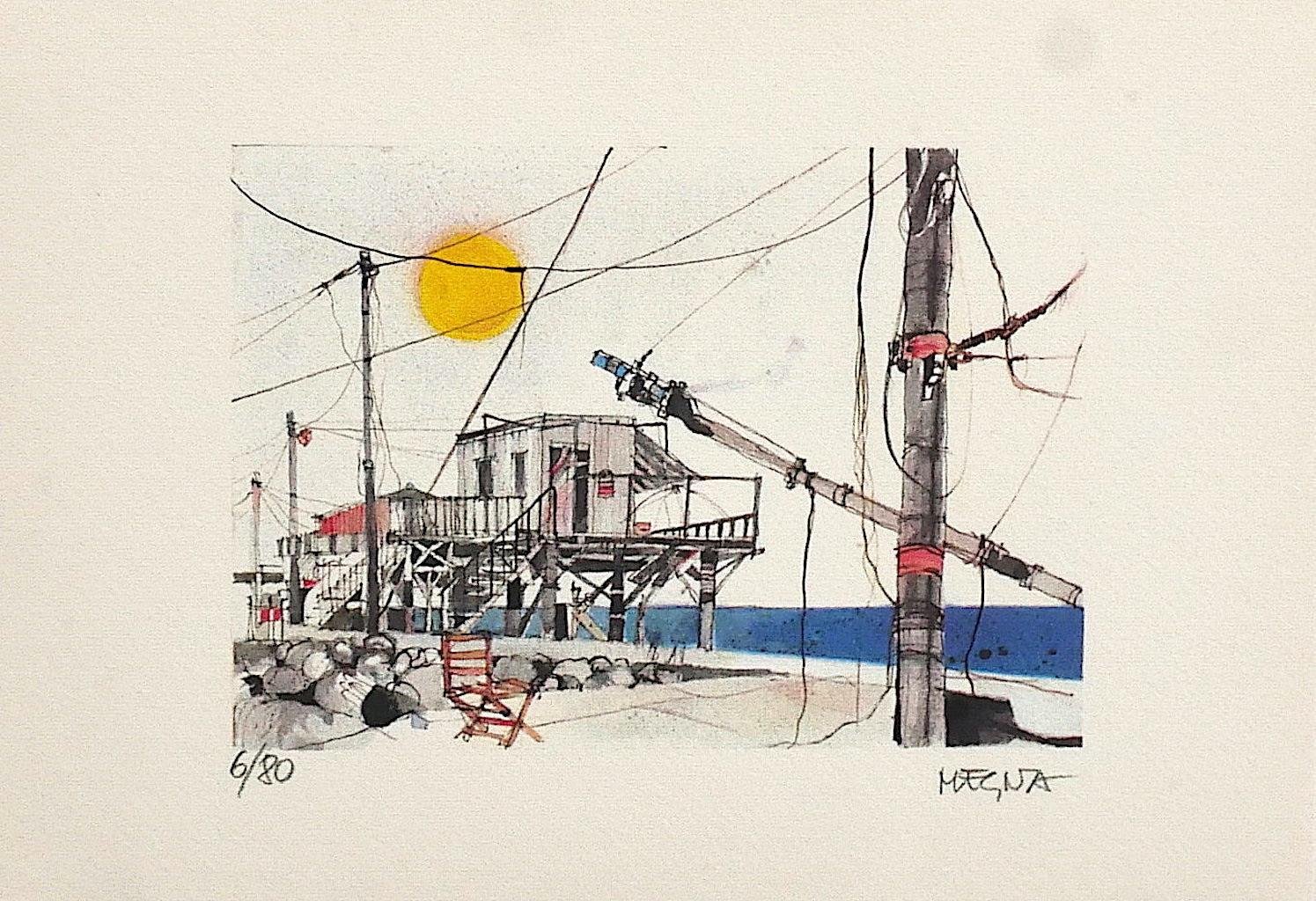 Joseph Megna, Networks In Fiumicino, Lithograph, 1970s
