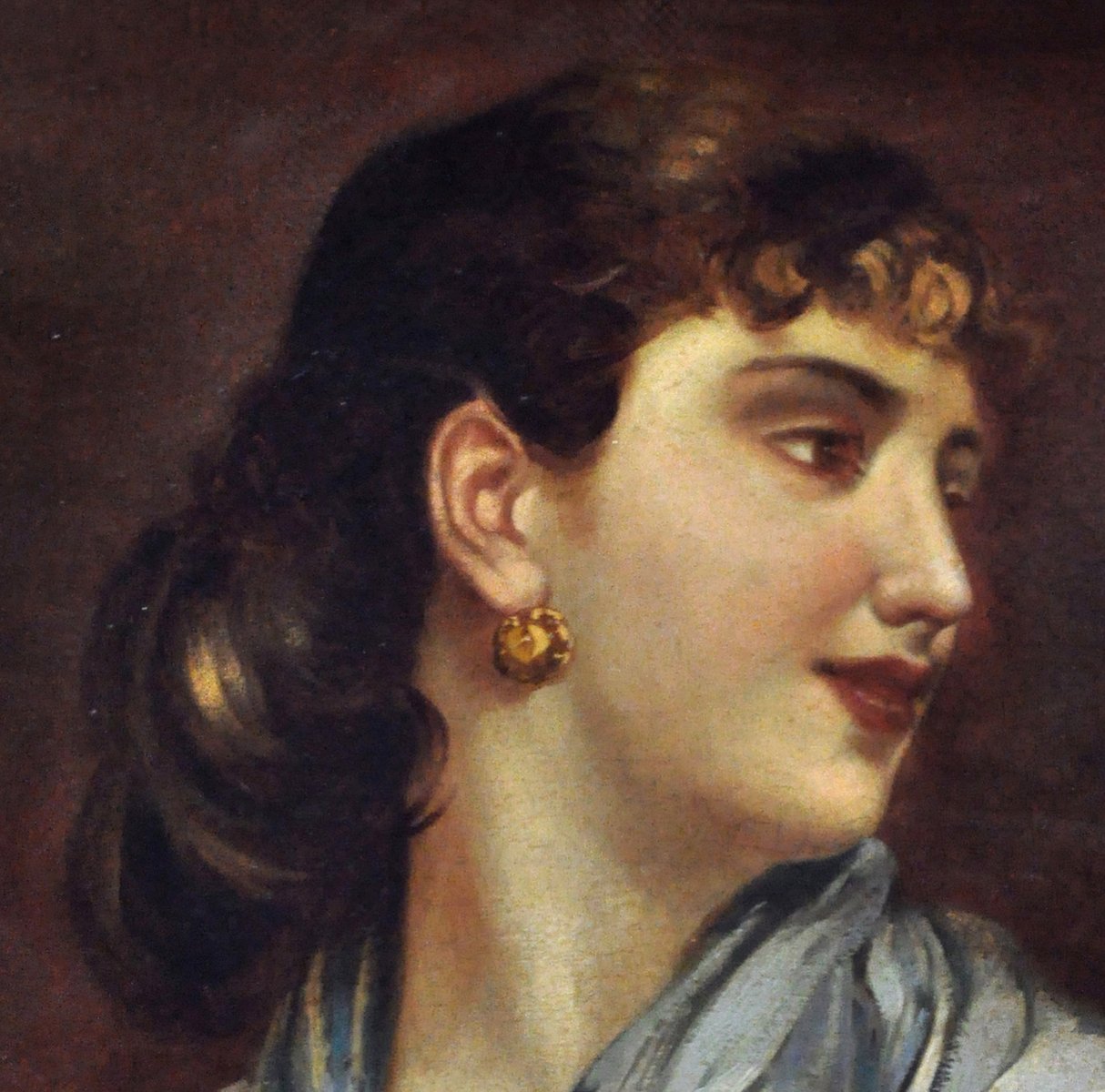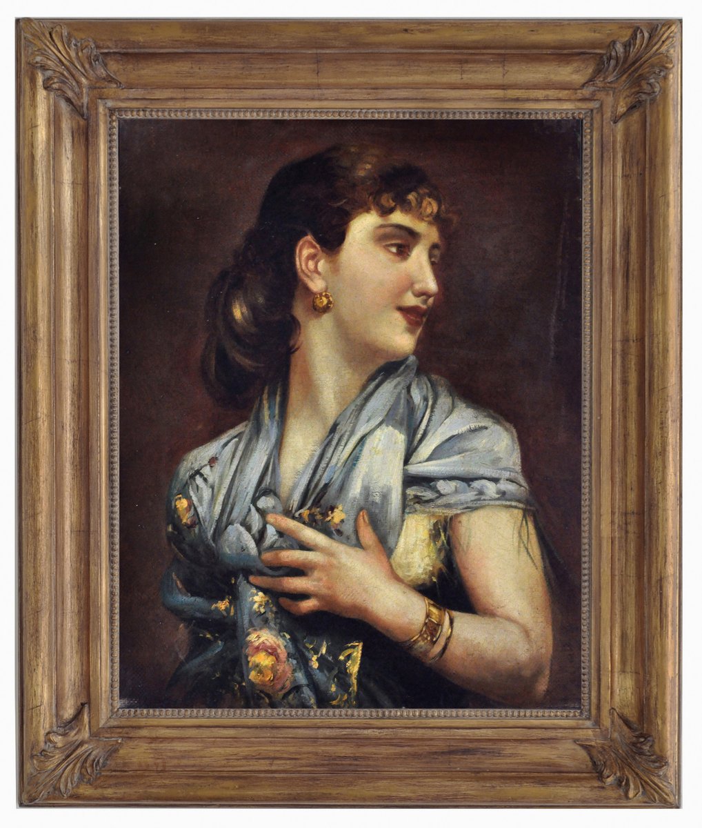 Lady with Blue Scarf, Neapolitan School, 2002, Oil on Canvas, Framed
