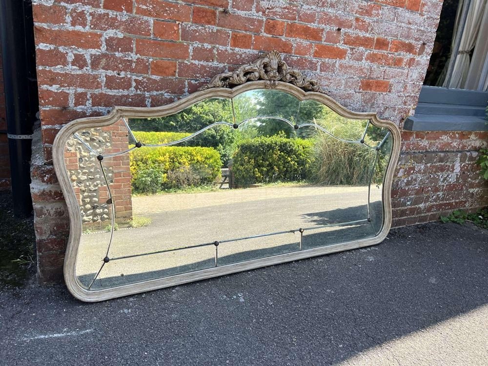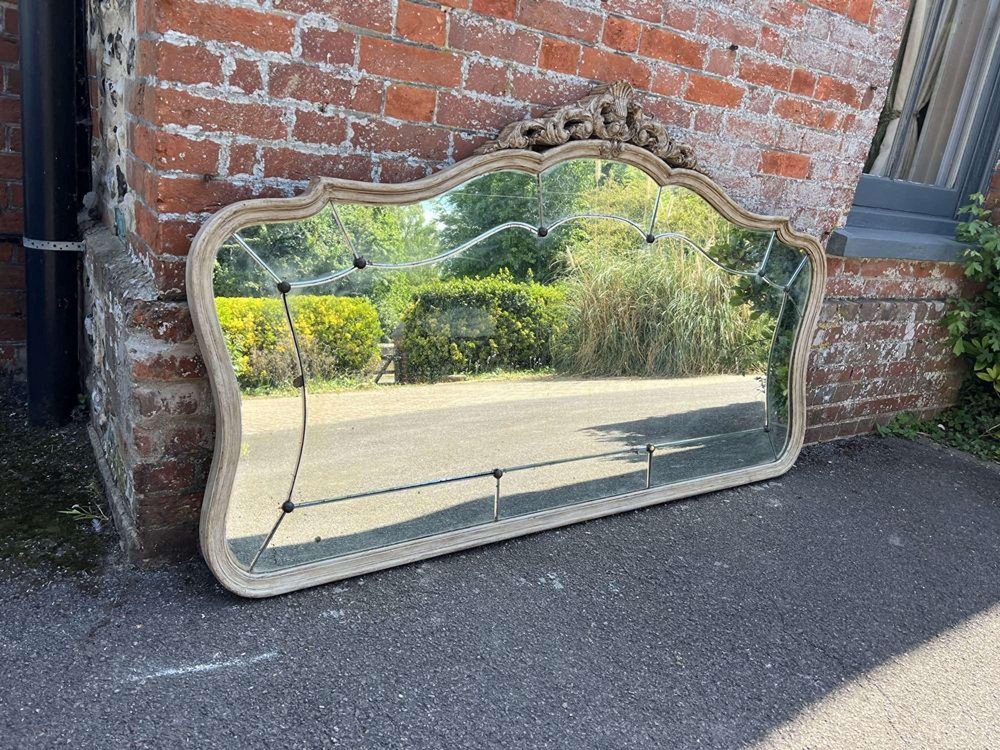 Large Antique 19th Century French Carved Wood Shaped Mirror