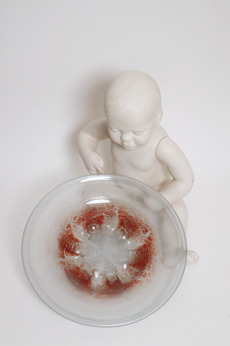 Large Bauhaus Art Deco Glass Bowl by Karl Wiedmann for WMF Ikora, 1930s