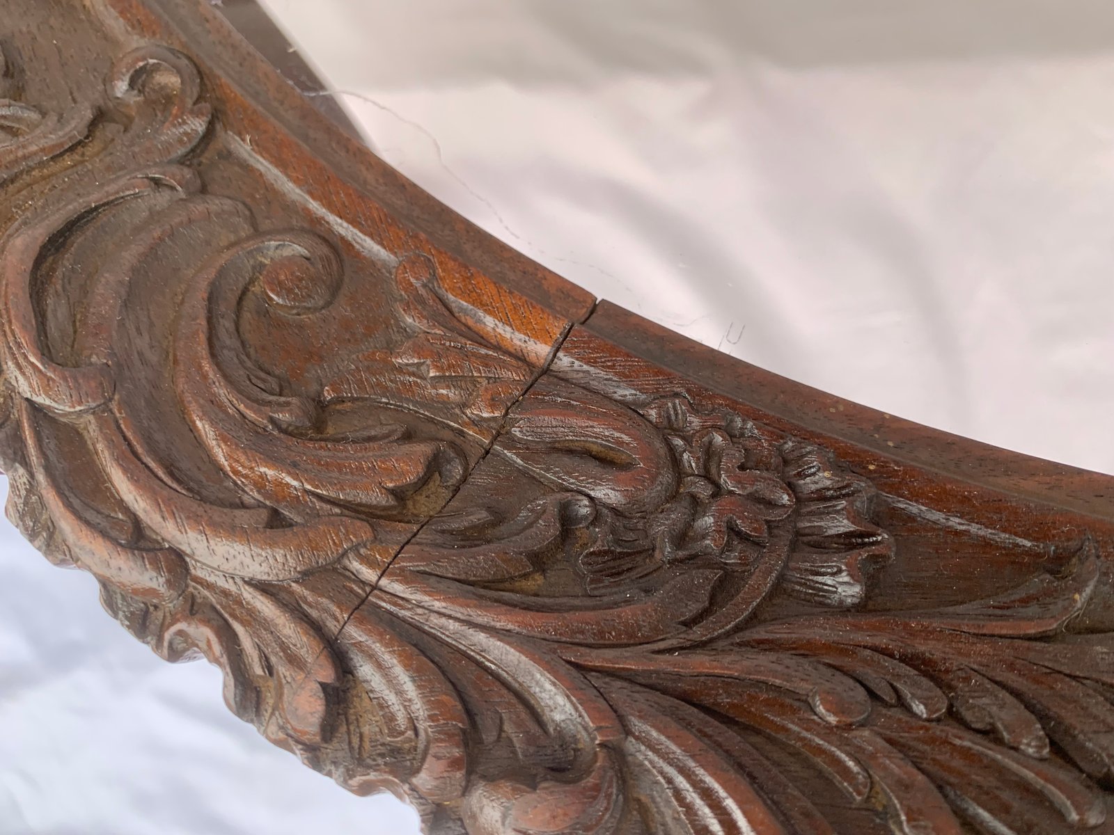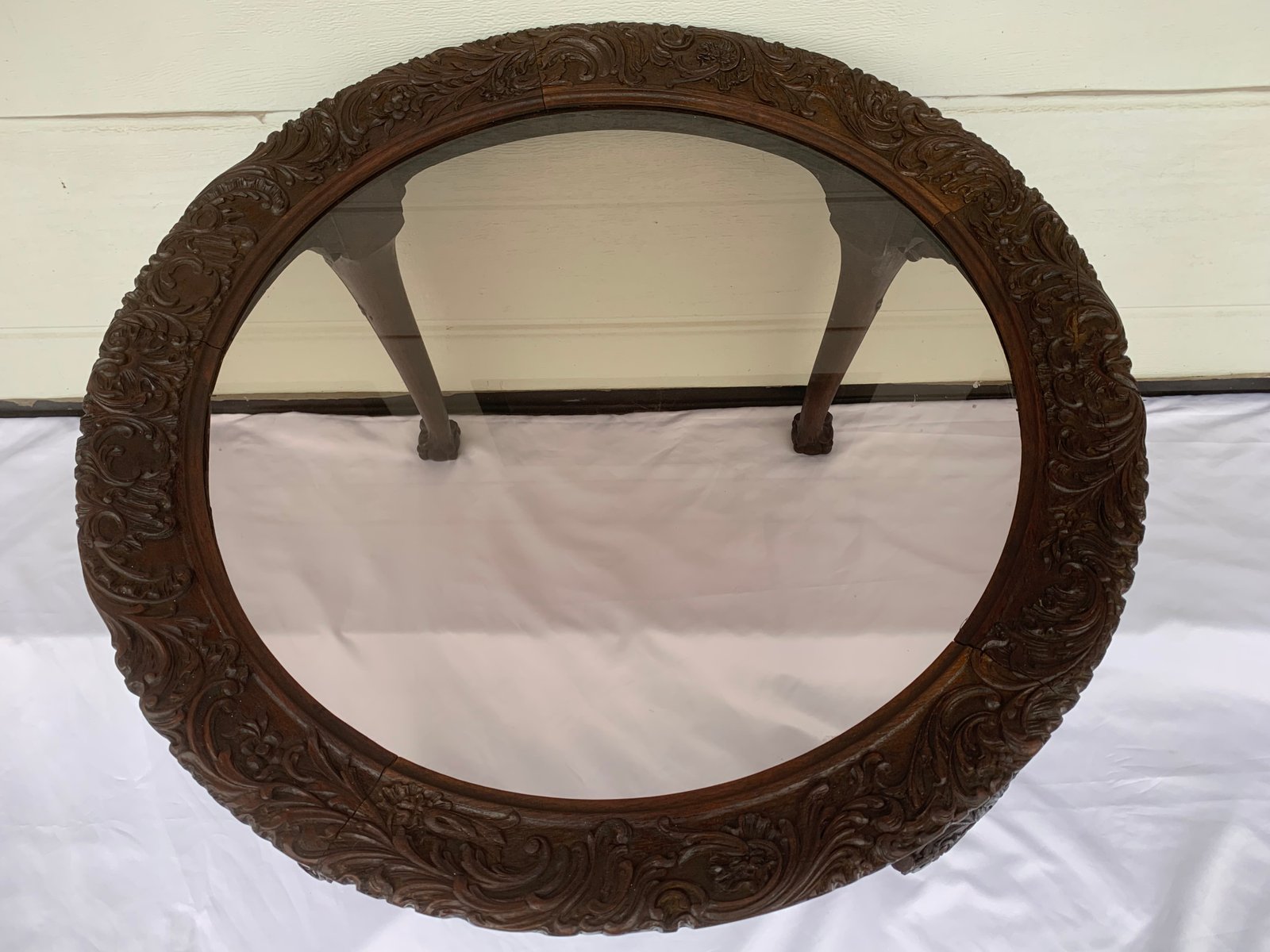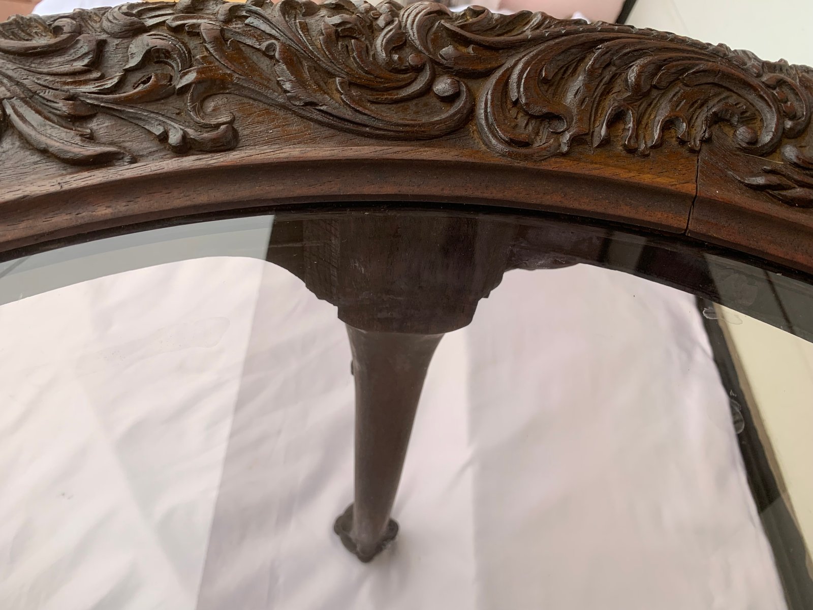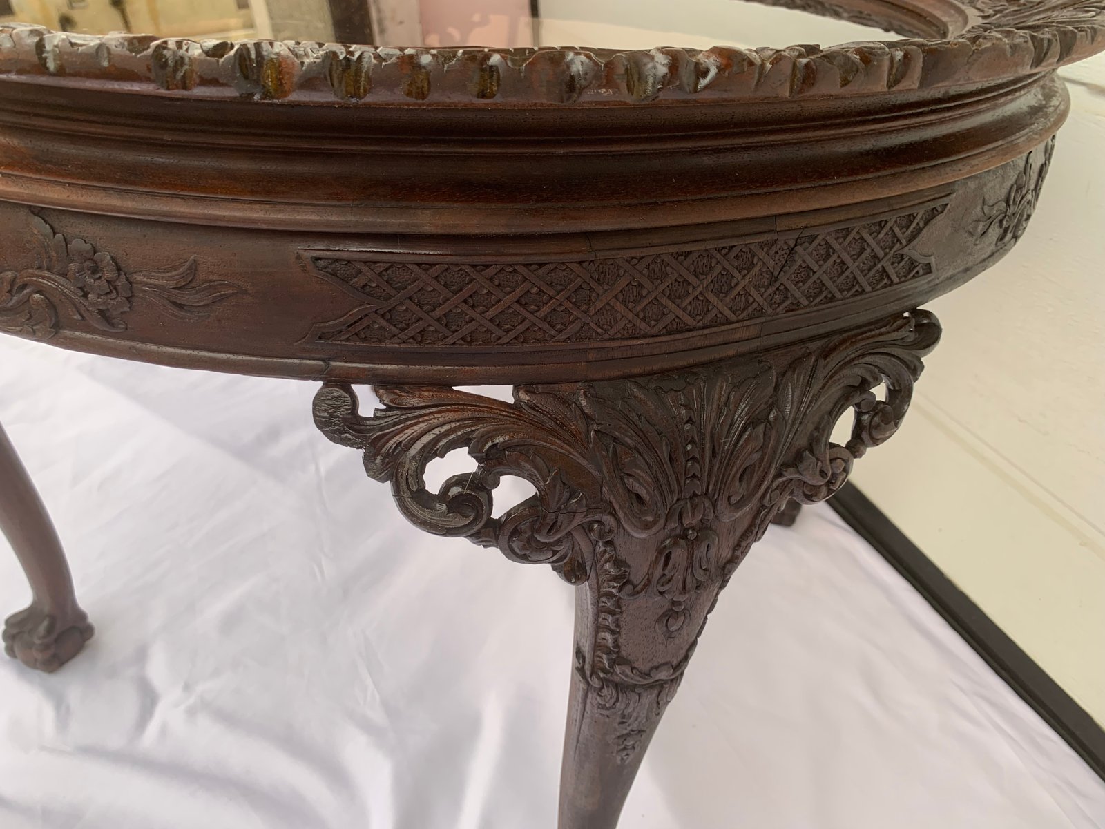 Large English Chippendale Style Walnut Coffee Table with Glass Top, 1940s