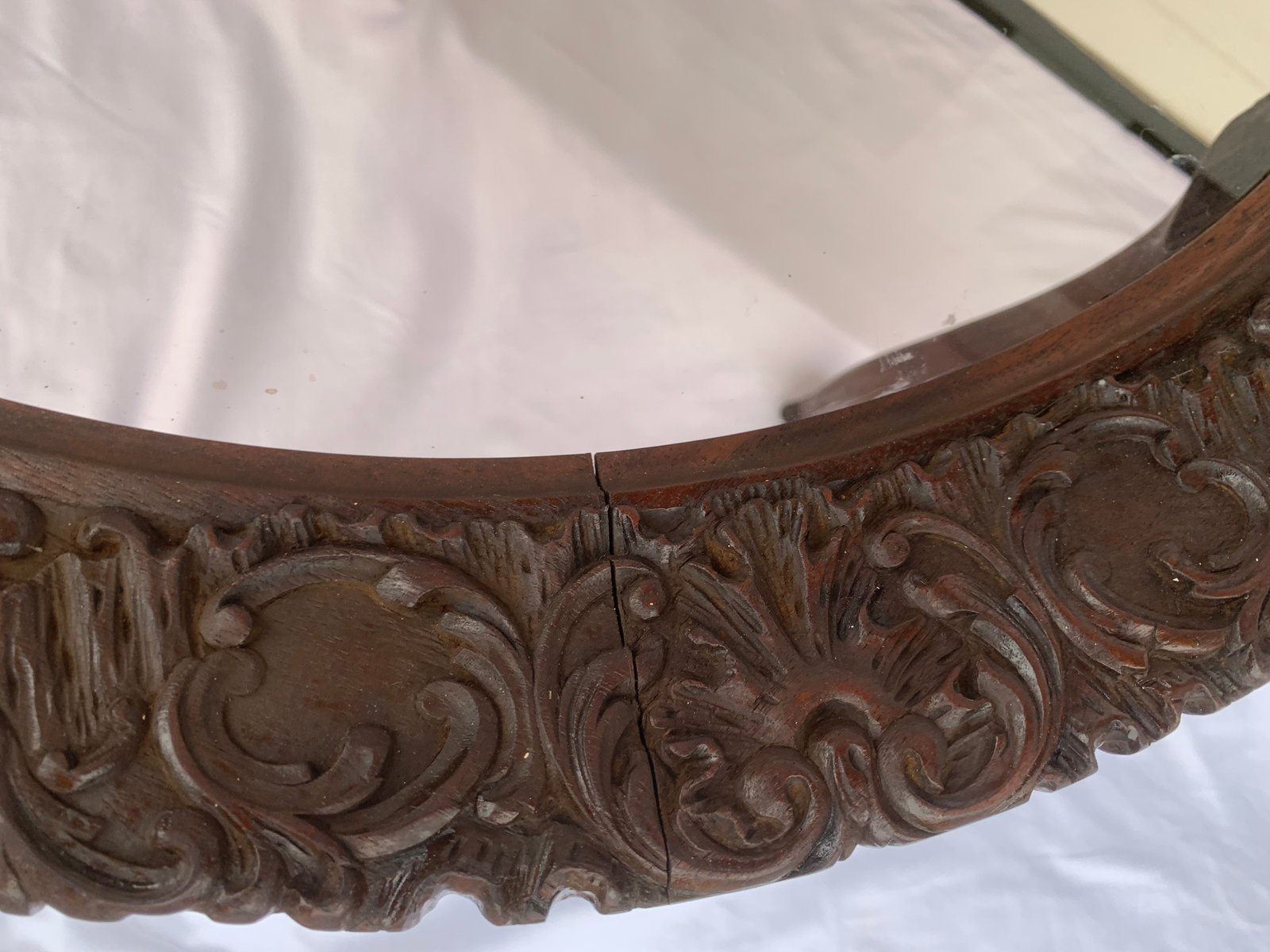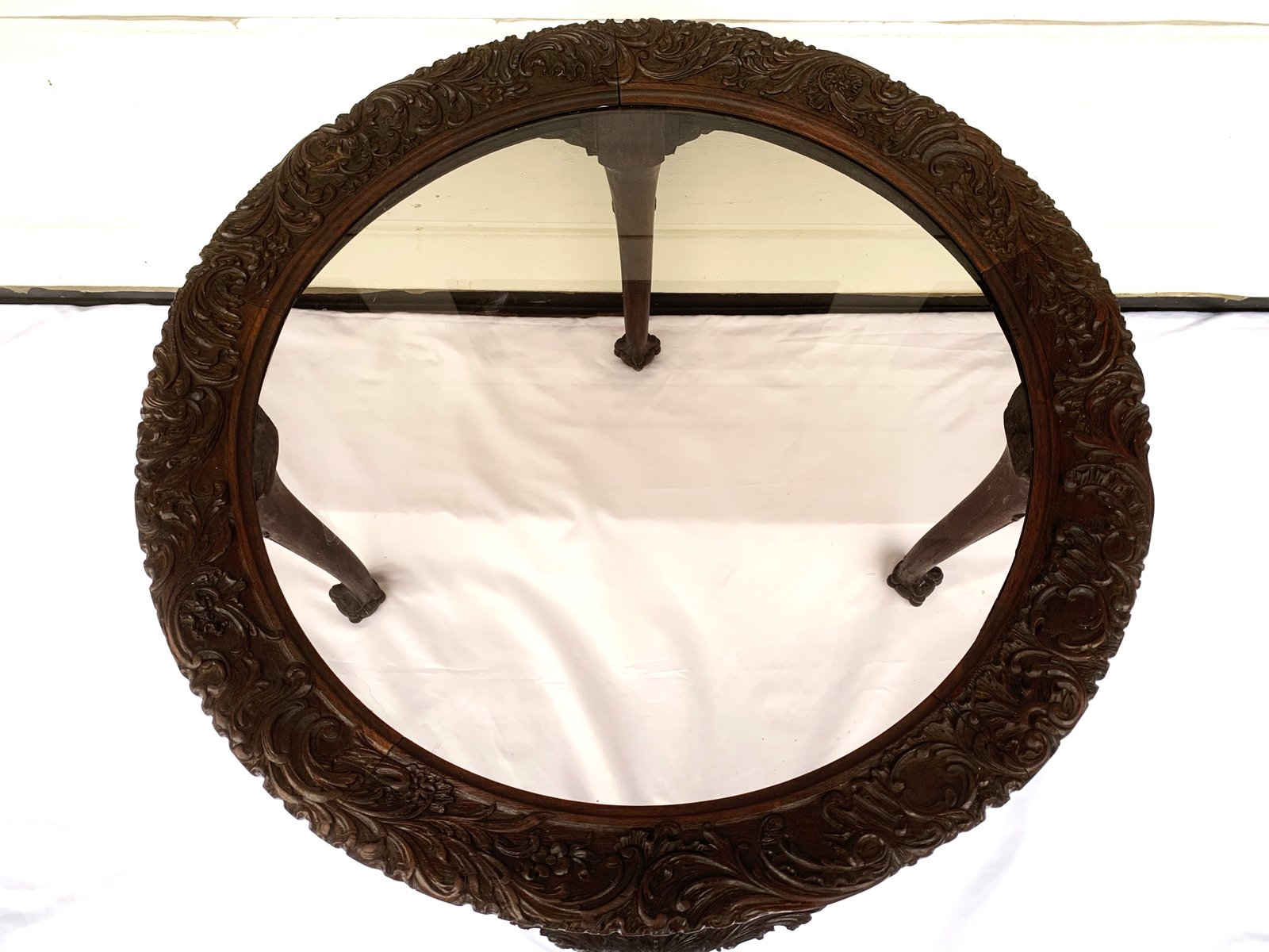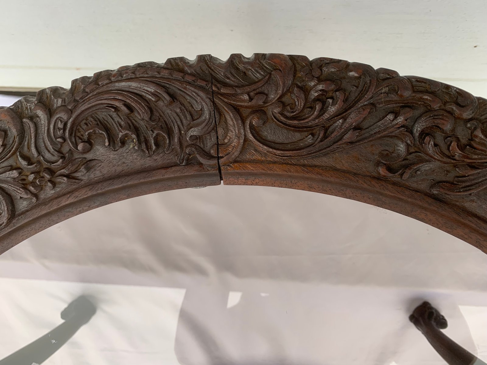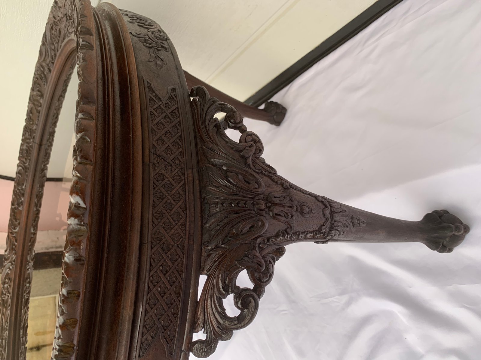 Large English Chippendale Style Walnut Coffee Table with Glass Top, 1940s