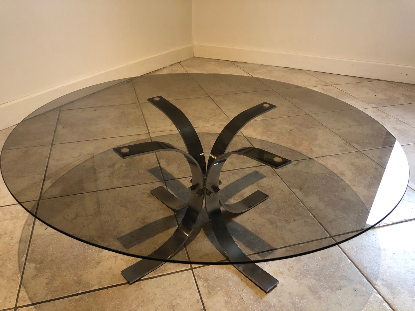 Large Vintage Smoked Glass and Chrome Coffee Table, 1970s