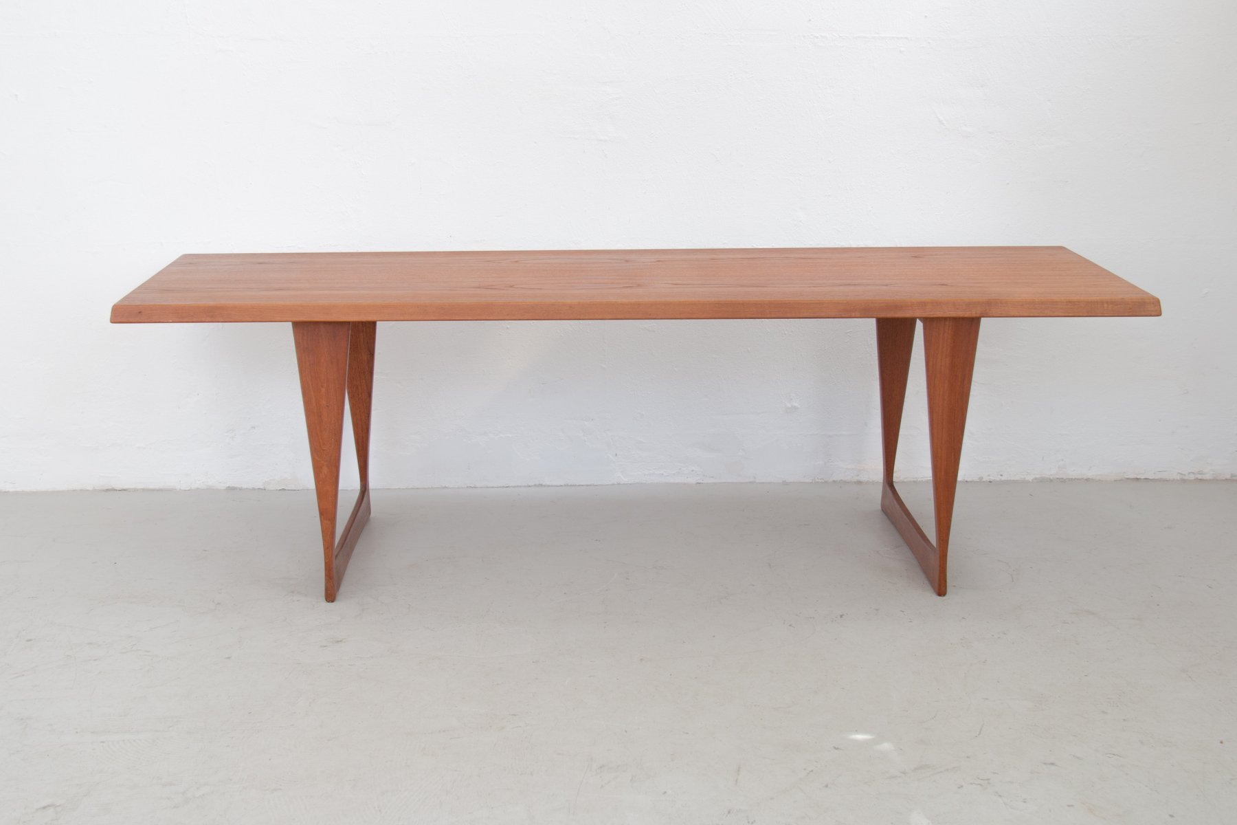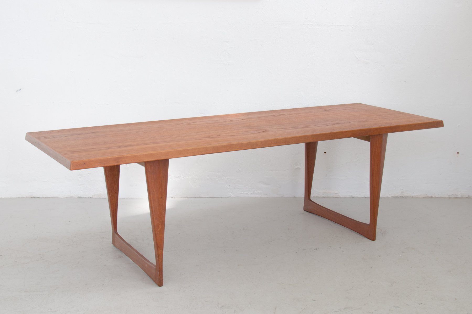 Large Vintage Teak Coffee Table with Skid Feet