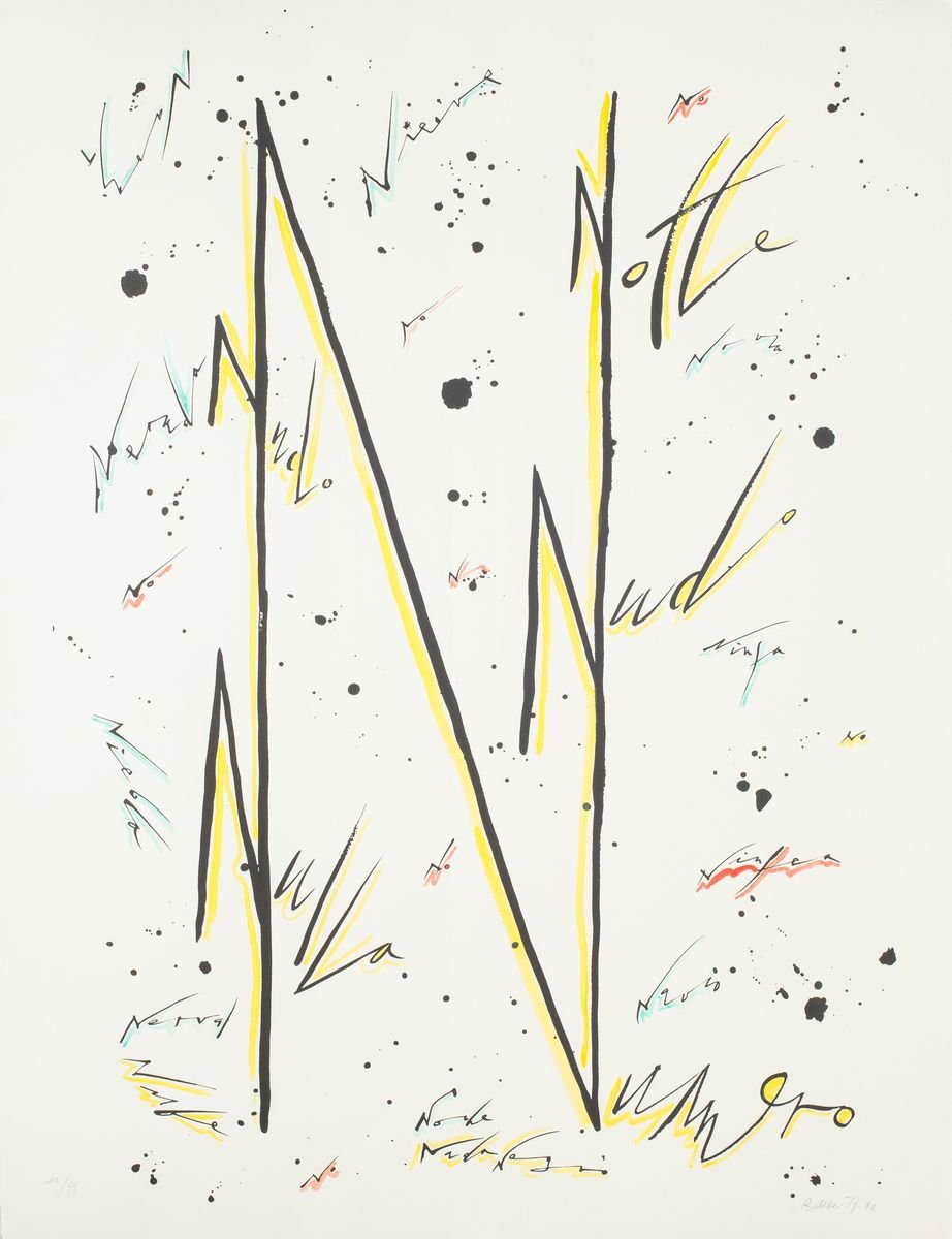 Letter N Yellow - Hand-Colored Lithograph by Raphael Alberti - 1972 1972