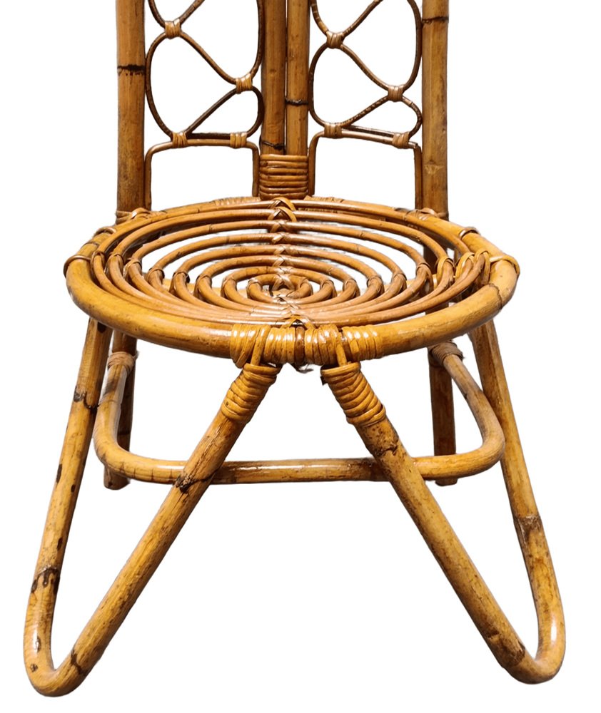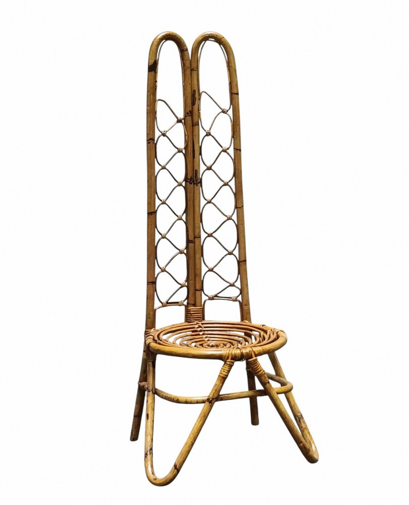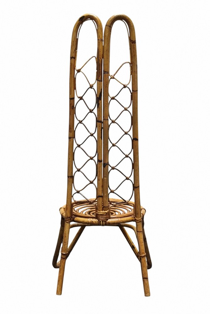 Low Chair with Curved Bamboo Double High Backrest, Italy, 1960s