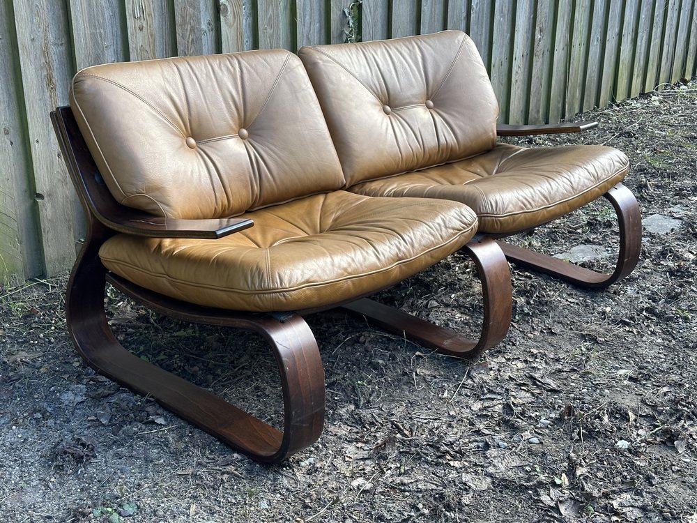 Mid-Century Danish Space Age Sofa in Leather and Rosewood, 1970s