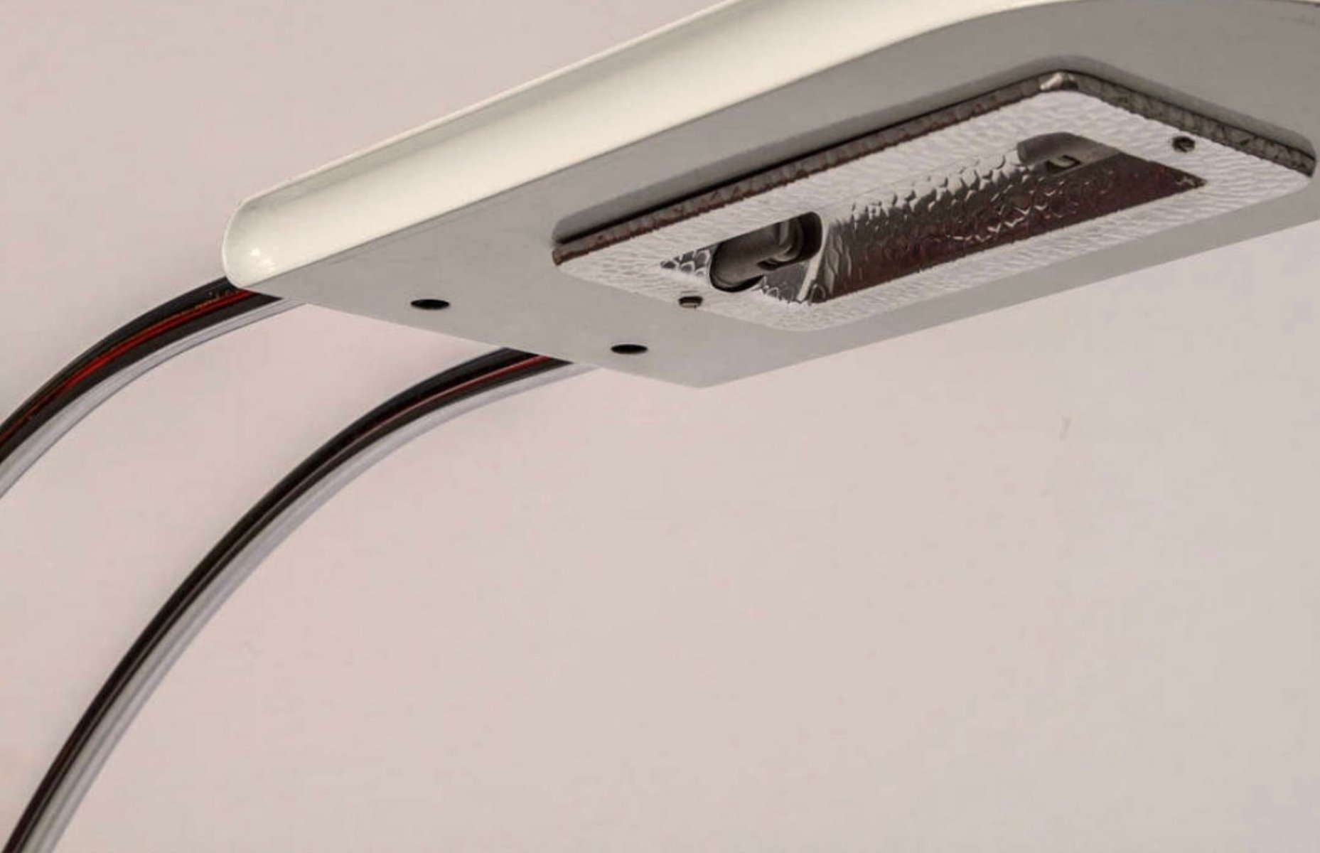 Gecchelin, in particular, was the most prolific contributor to Skipper’s lighting output. Concurrent to stints designing for Italy’s most progressive lighting manufacturers—Guzzini, Oluce, Venini, and Gino Sarfatti’s Arteluce—Gecchelin produced an array of minimalist lamps (table, wall, floor, desk, ceiling) for the company, often crafted in premium materials like marble and lacquered metal. A specific standout Skipper design includes Gecchelin’s Mezzeluna (1975), a high-voltage and quite tall floor lamp in Cararra marble and white lacquered metal. Beyond Gecchelin, Skipper’s lighting portfolio includes work from Claudio Sallochi, whose Riflessione Floor Lamp (ca. 1960s) was manufactured by the company in the 1970s and is now fetching high valuations on the vintage market.