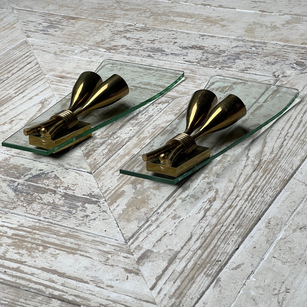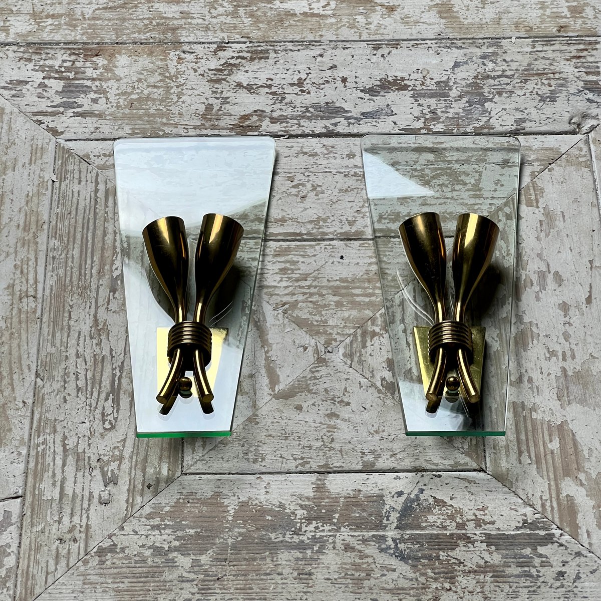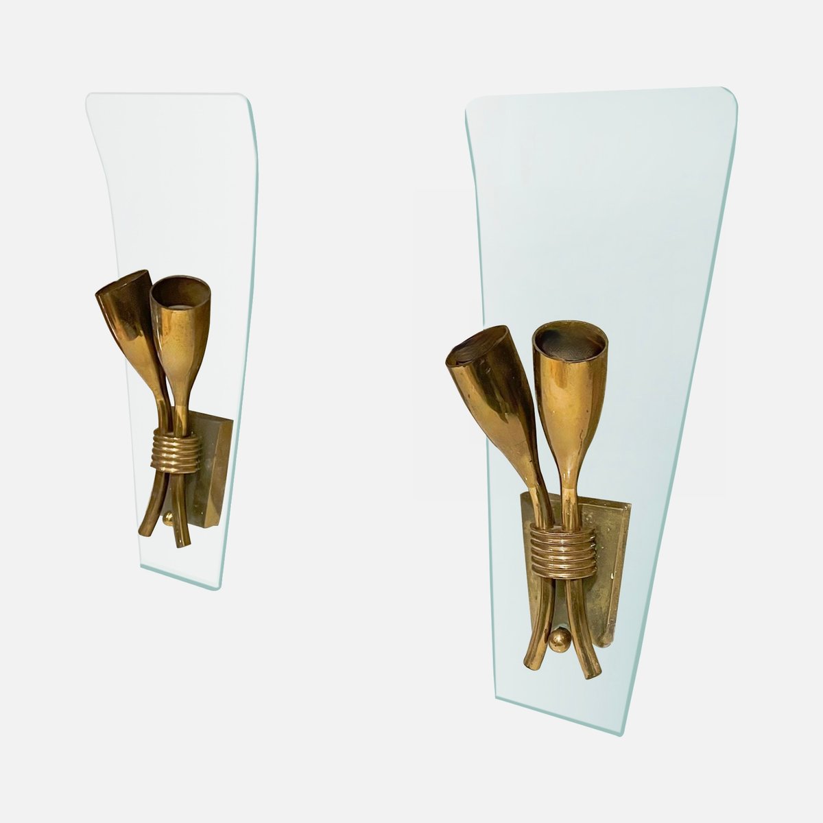 Mid-Century Italian Modern Curved Glass Wall Light Sconces, 1950s, Set of 2