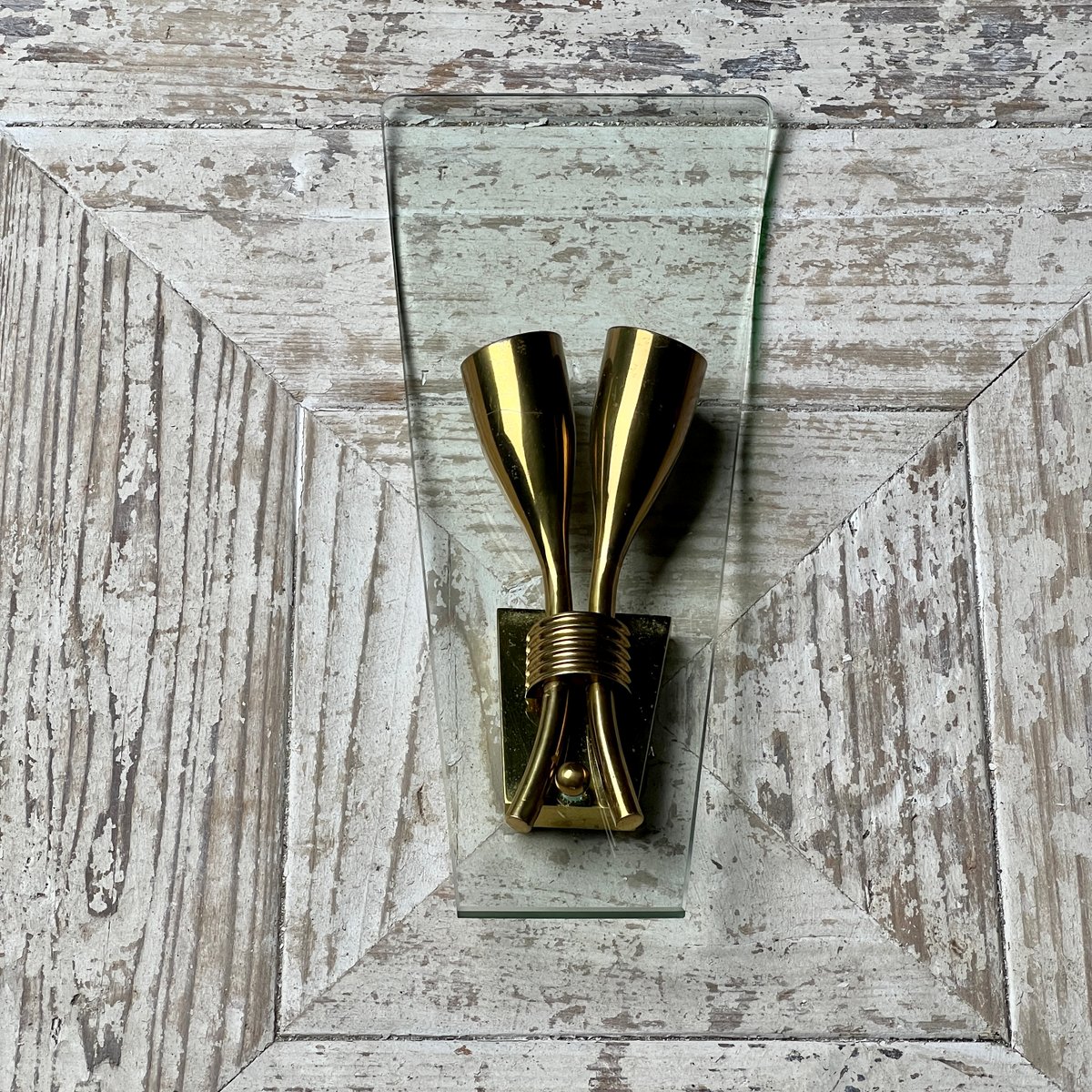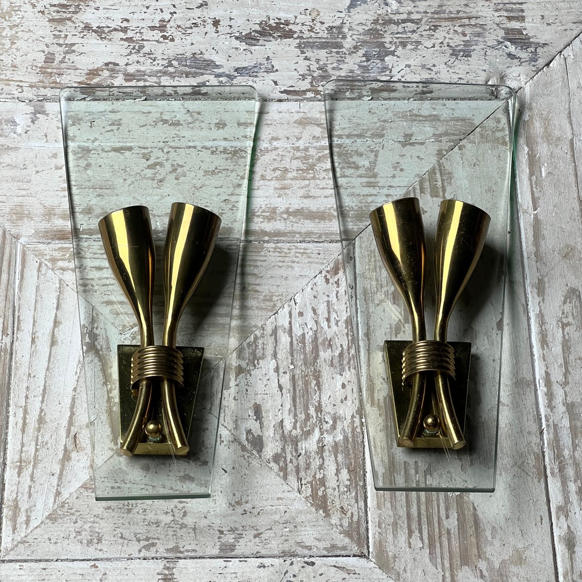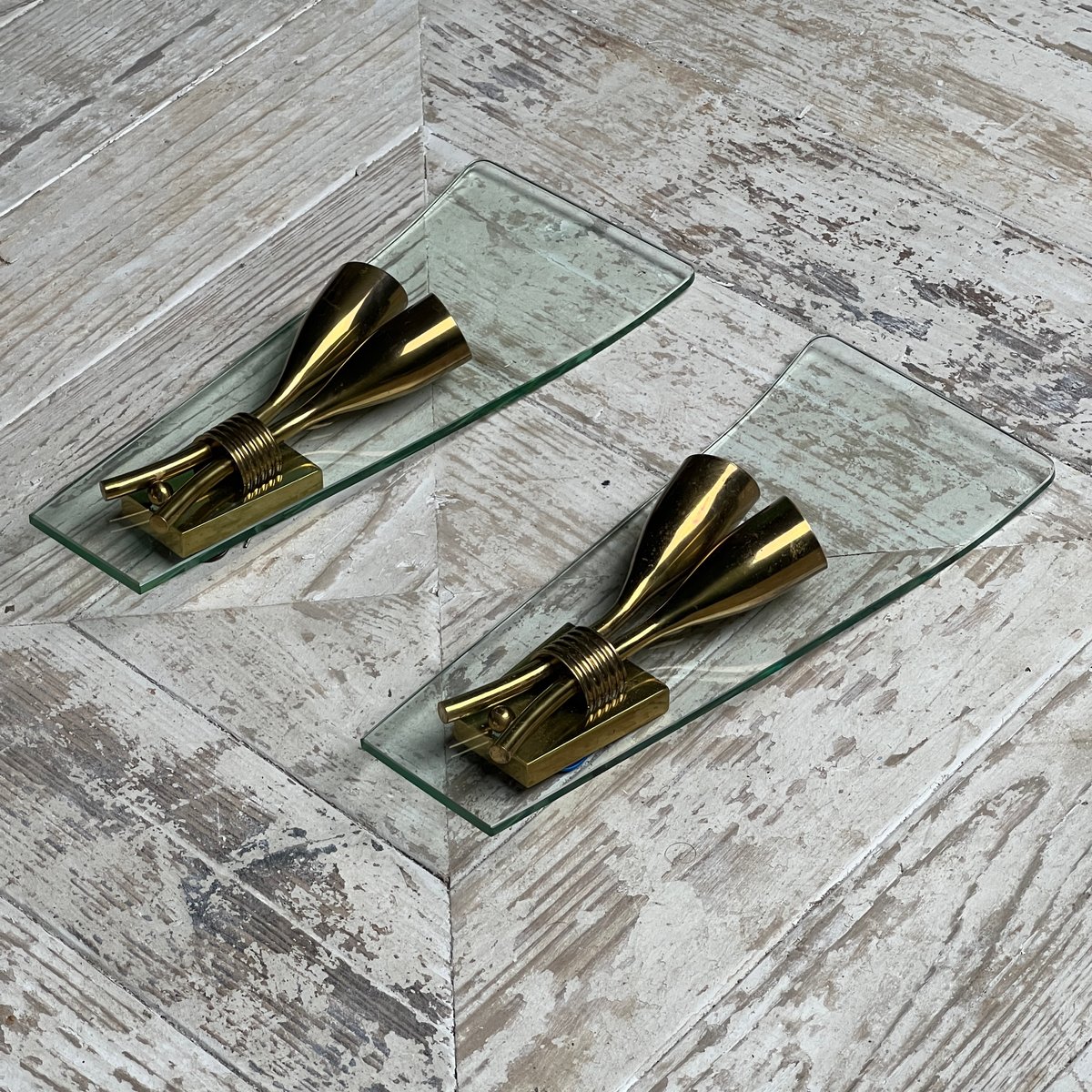 Mid-Century Italian Modern Curved Glass Wall Light Sconces, 1950s, Set of 2