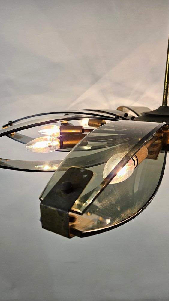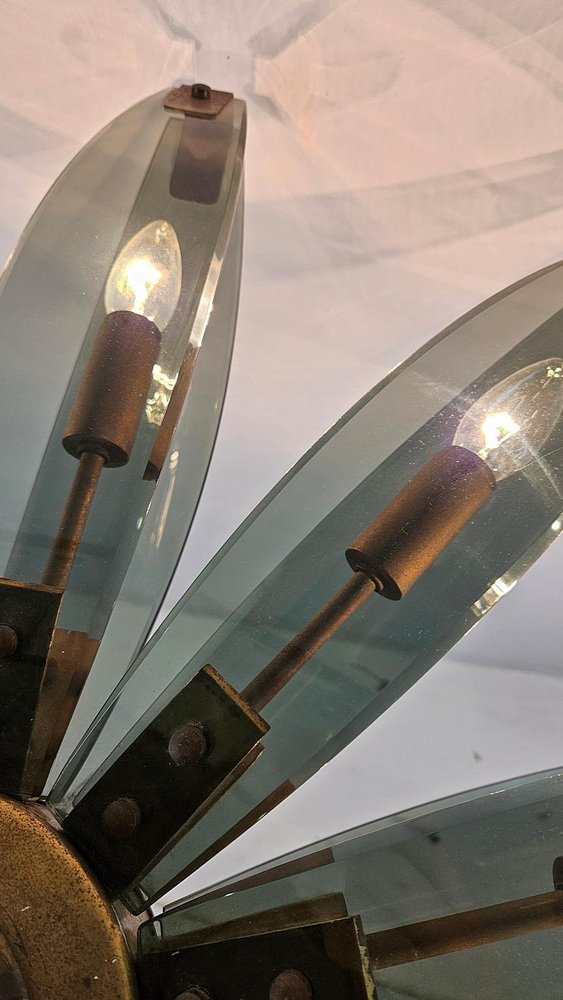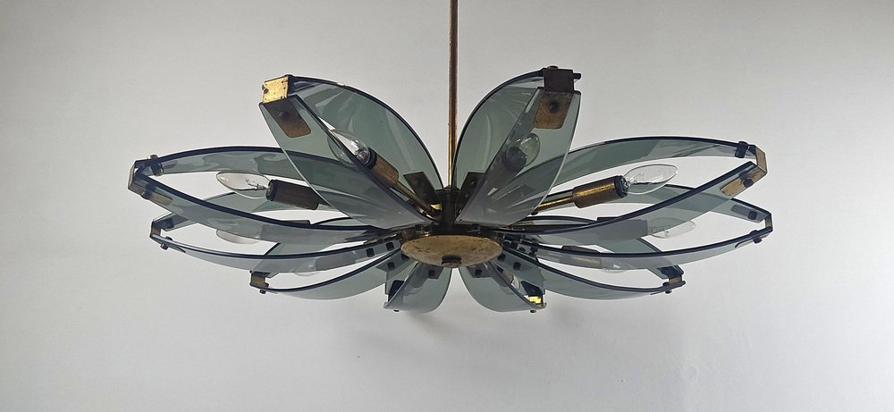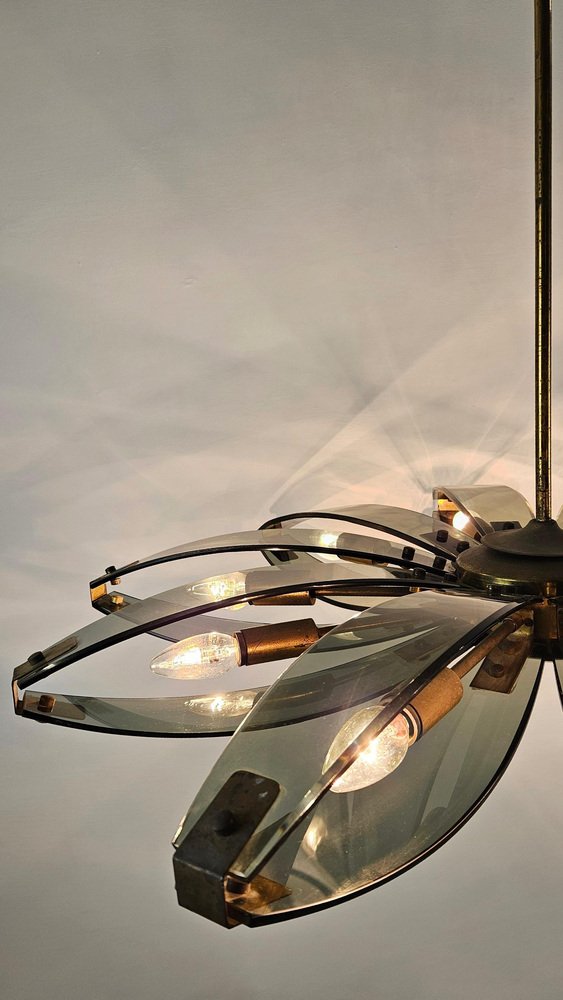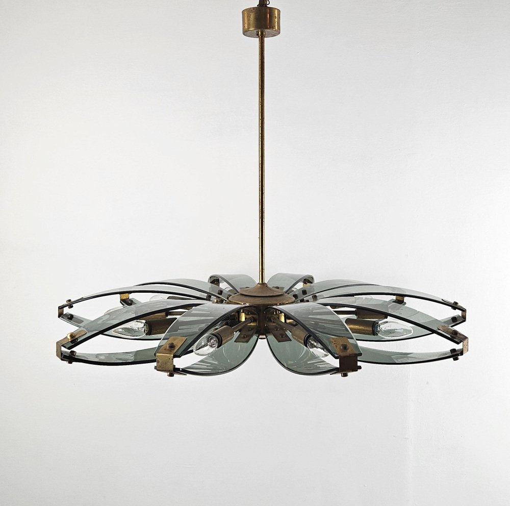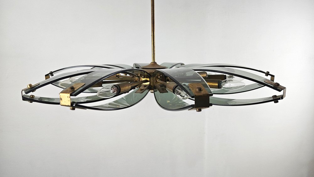 Mid-Century Modern Brass and Glass Chandelier attributed to Fontana Arte, Italy, 1960