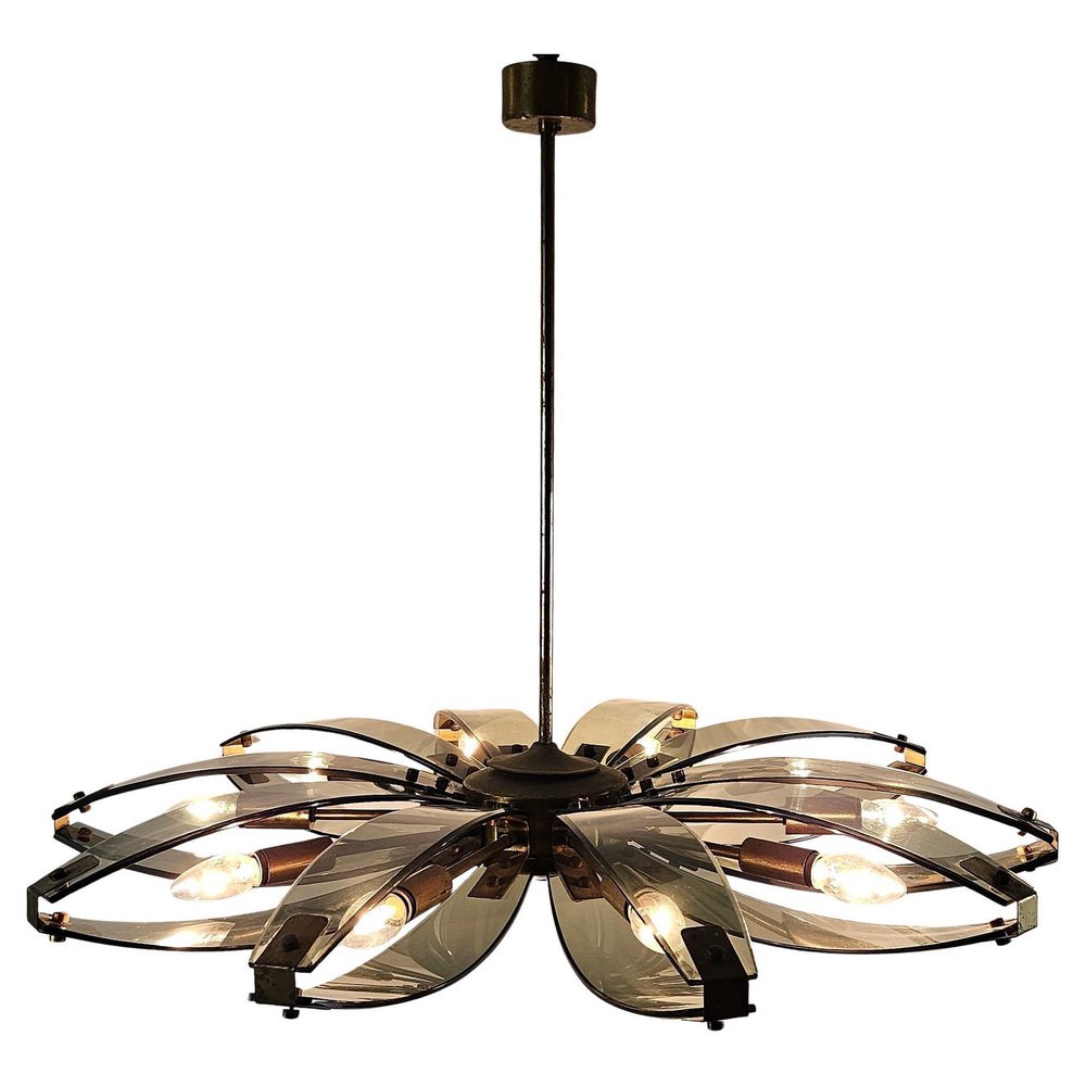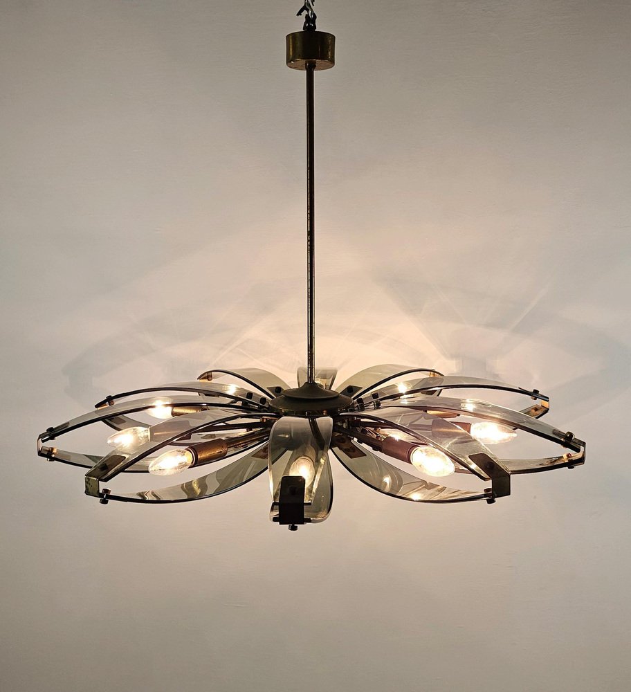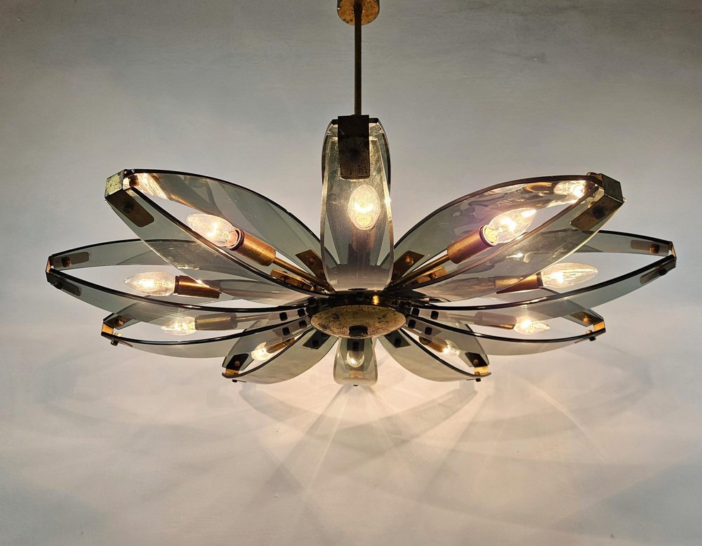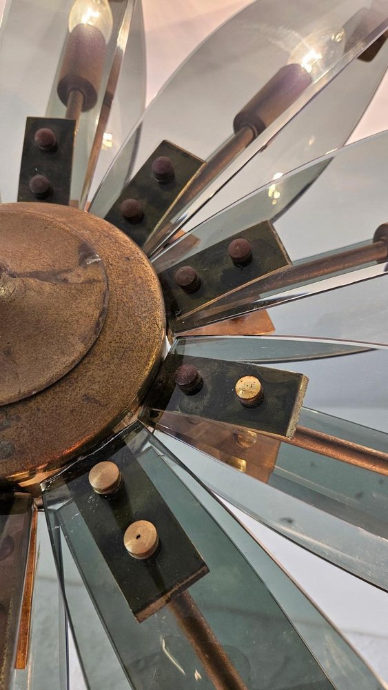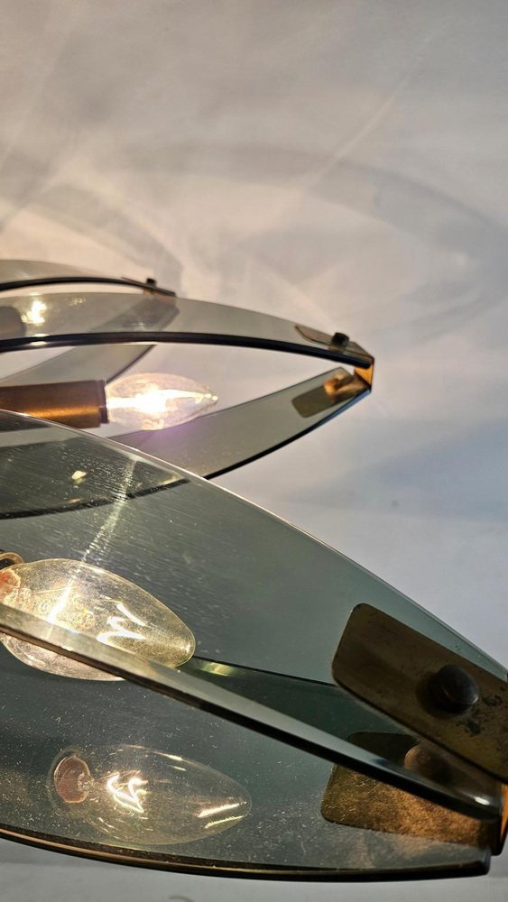 Mid-Century Modern Brass and Glass Chandelier attributed to Fontana Arte, Italy, 1960
