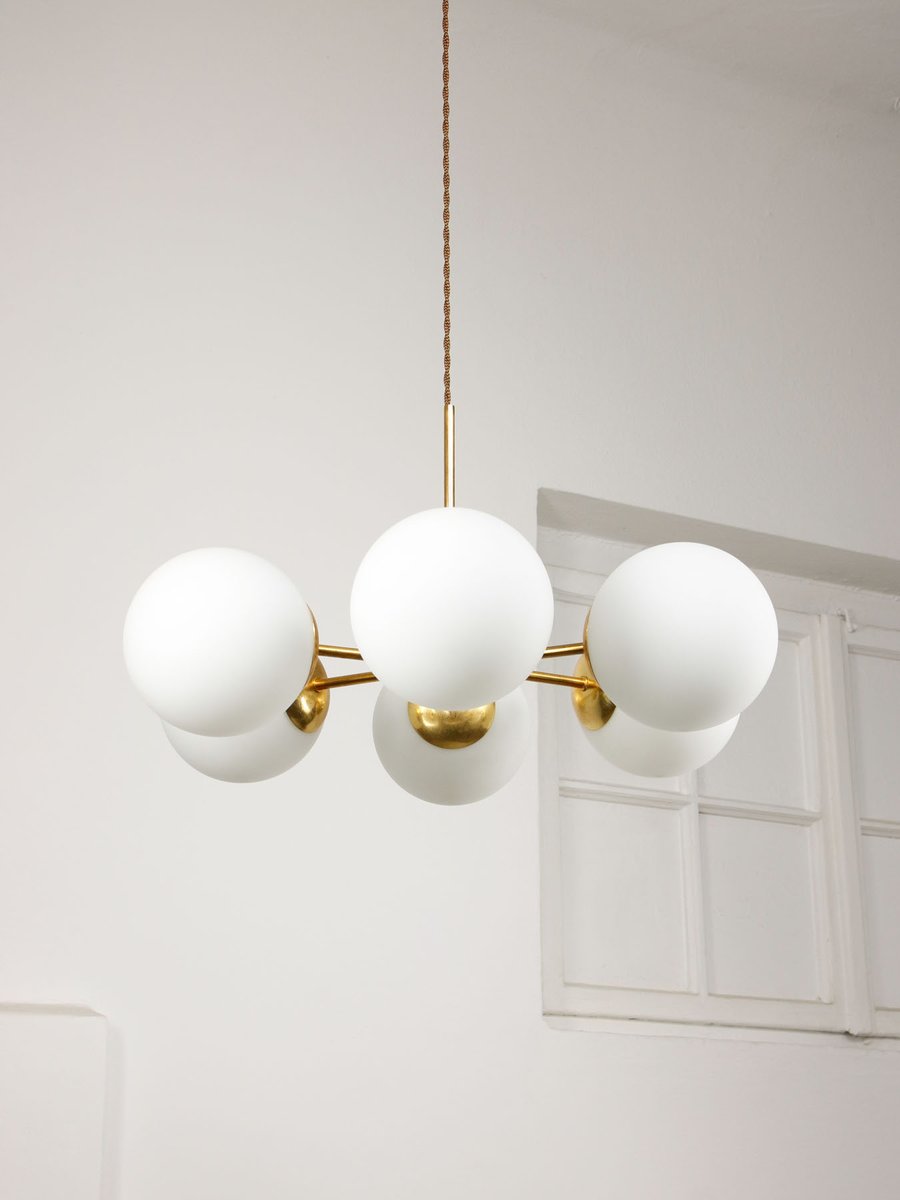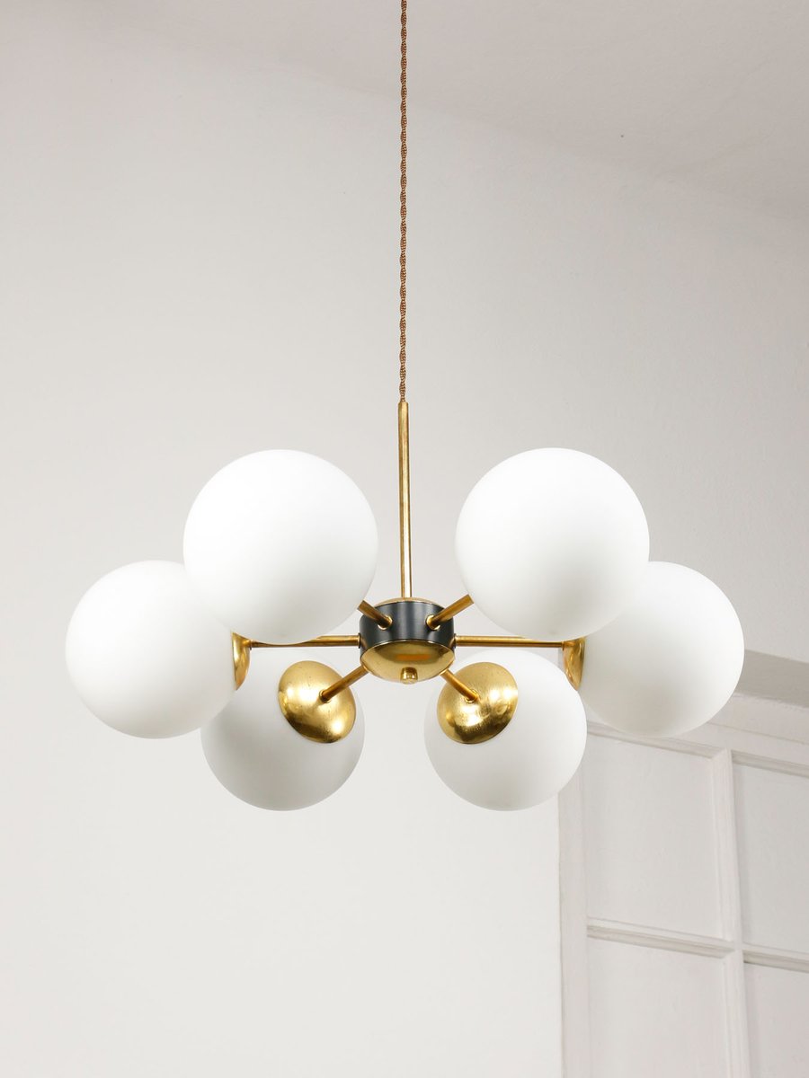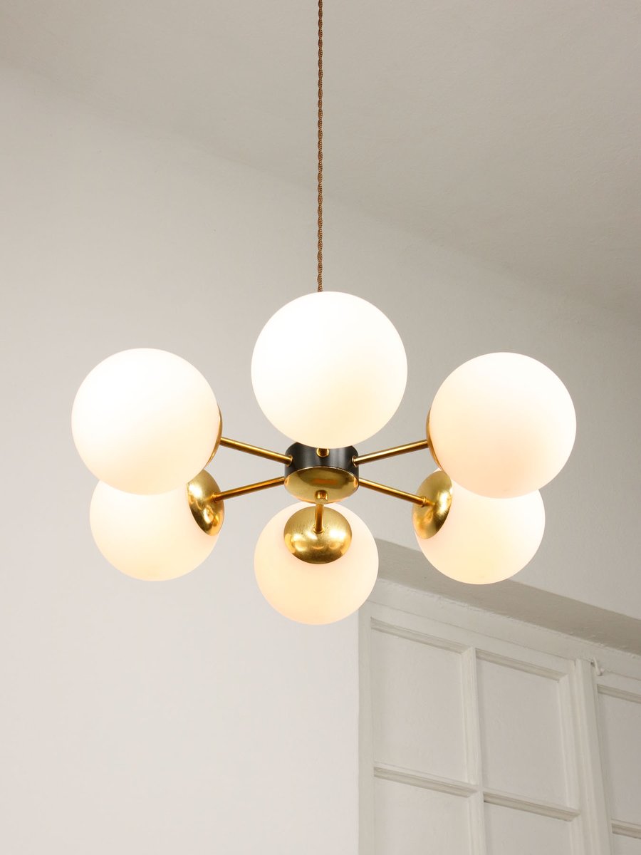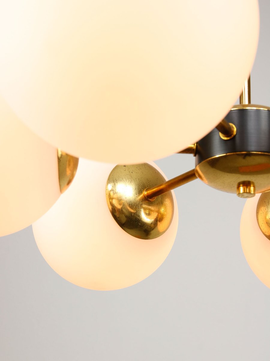 Mid-Century Modern Italian Six-Arm Sputnik Chandelier with Opaline Shades, 1960s