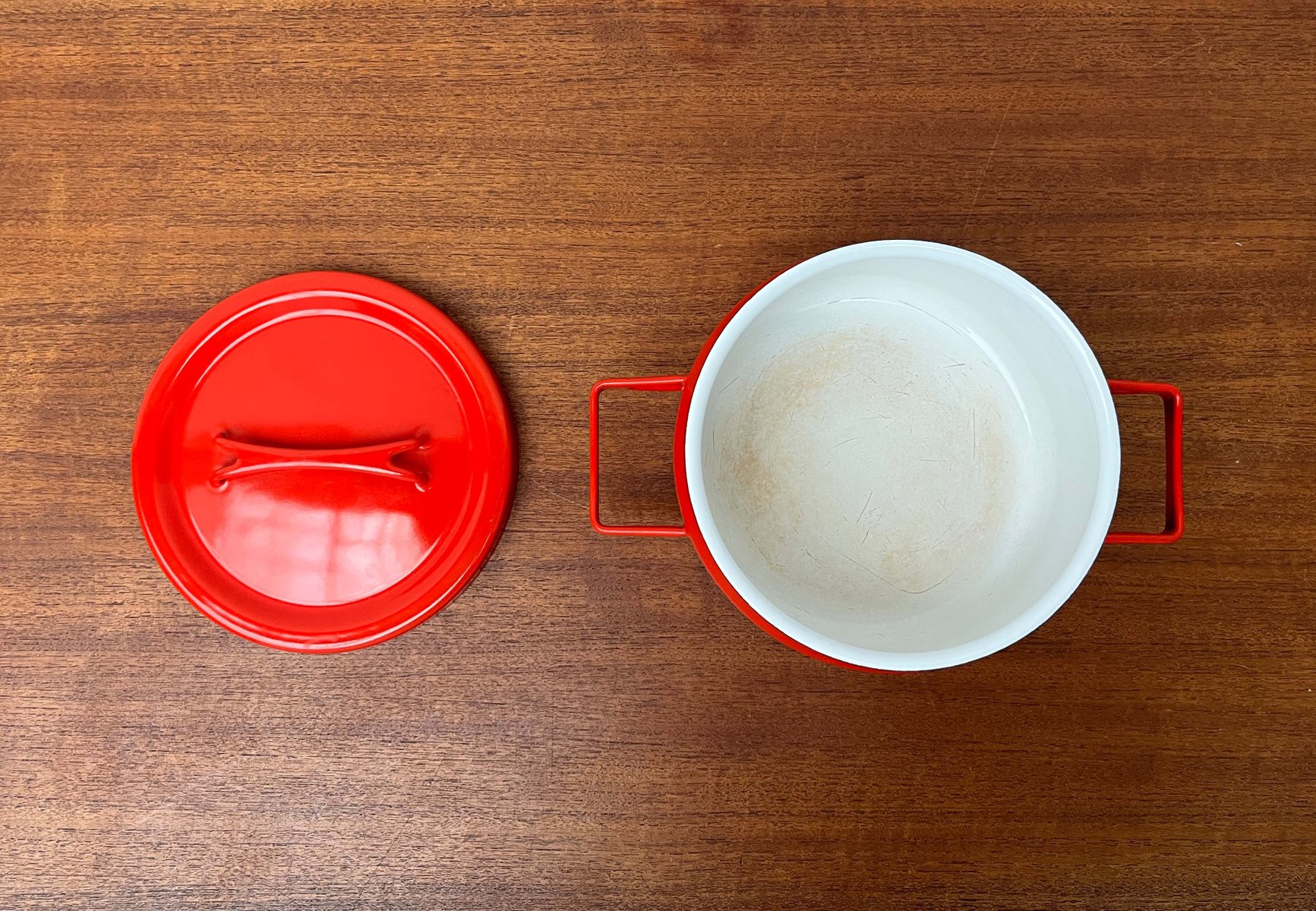 Mid-Century Modern Red Enamel Pot by Seppo Mallat for Finel, 1960s