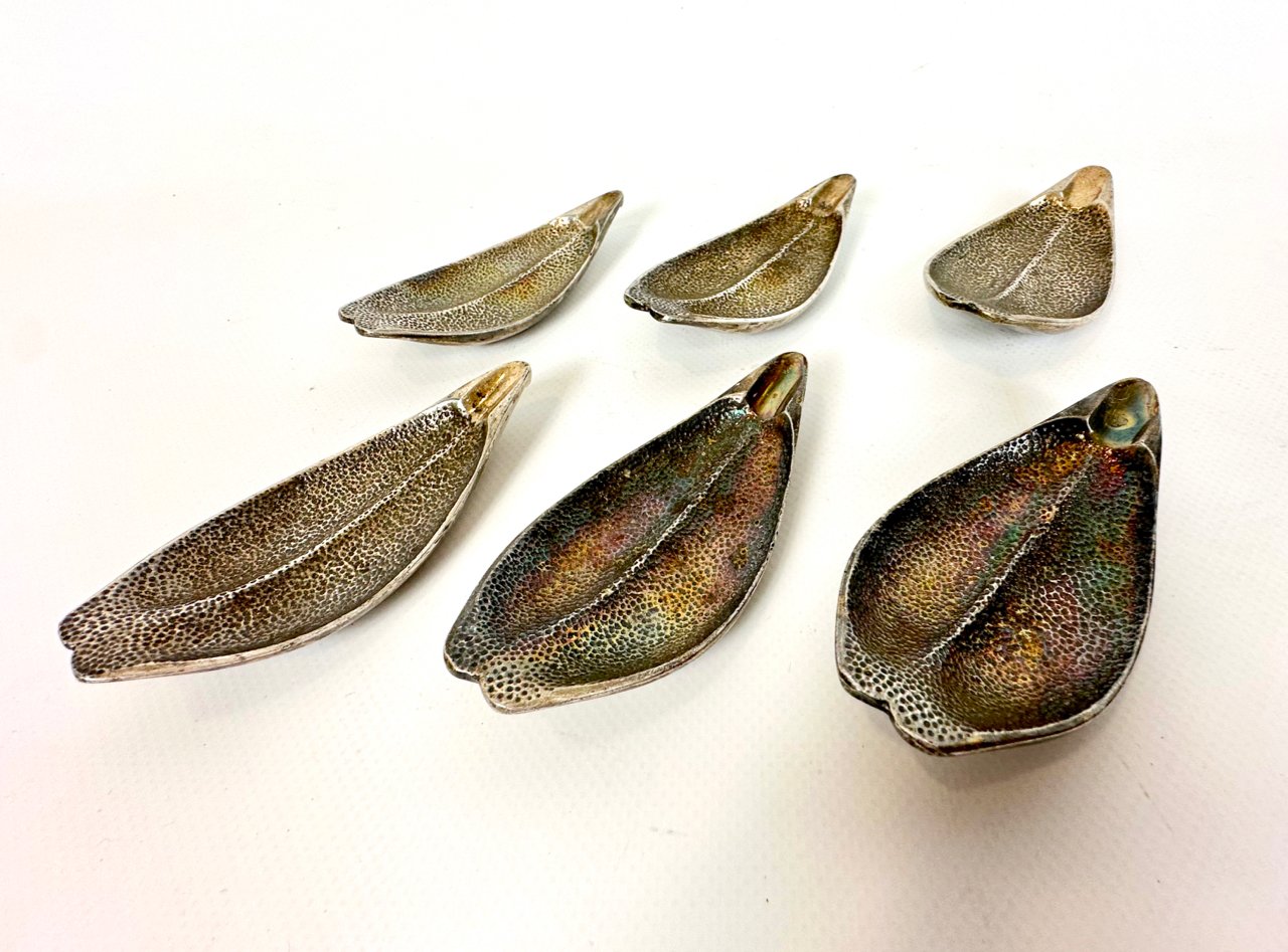 Mid-Century Modern Silver-Plated Card Ashtrays, 1950s, Set of 6