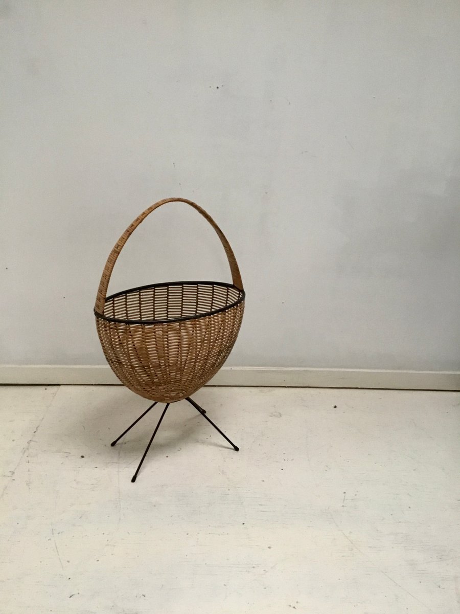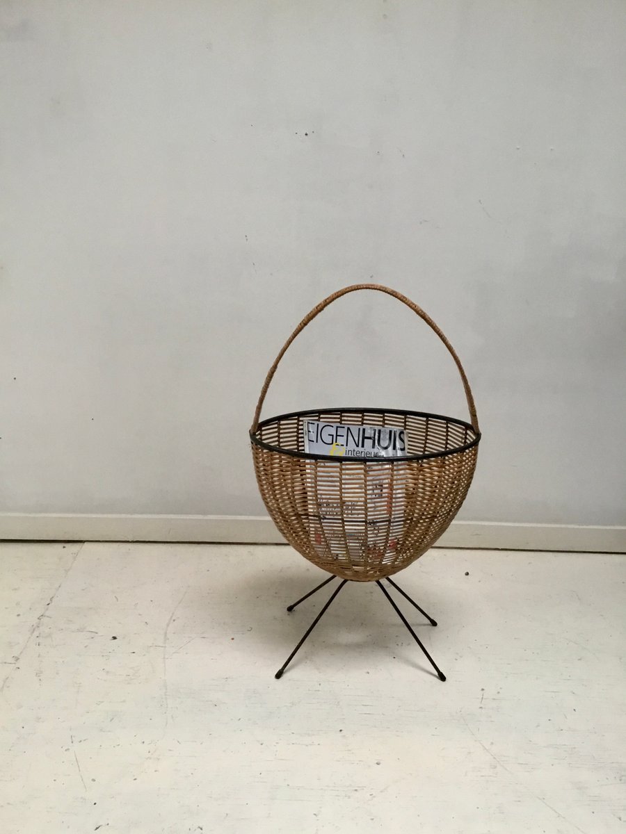 Mid-Century Rattan Newspaper Basket