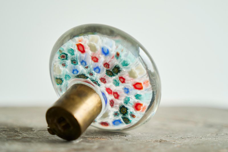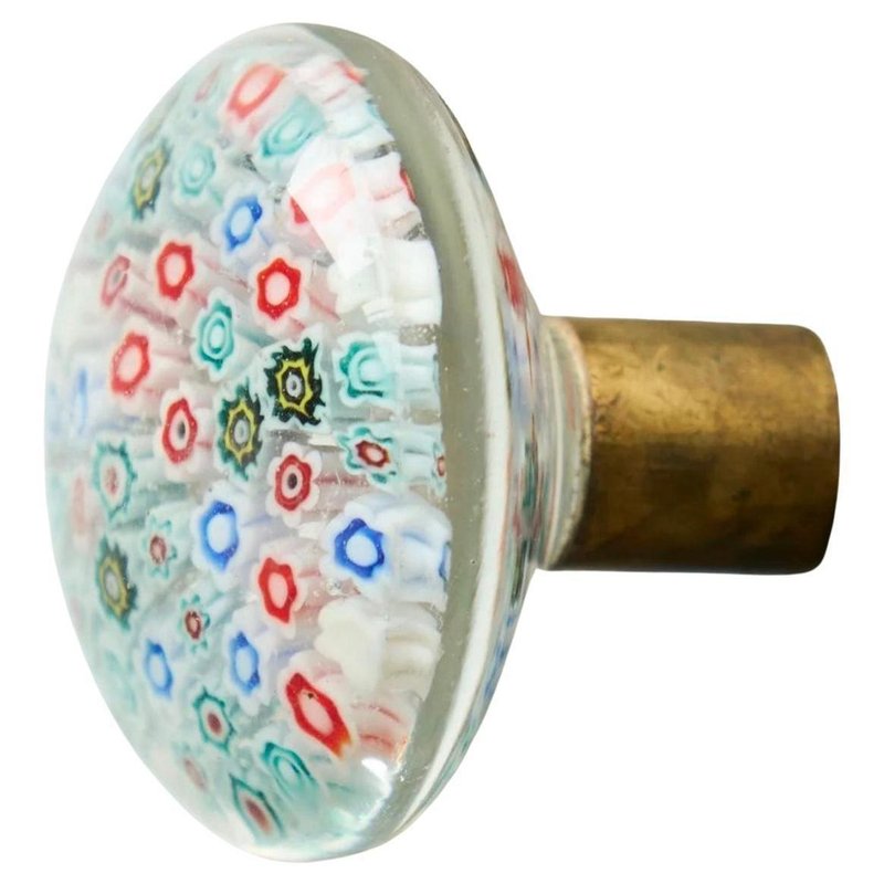Millefiori Doorknob in Murano Glass and Patinated Brass, Italy, 1960s