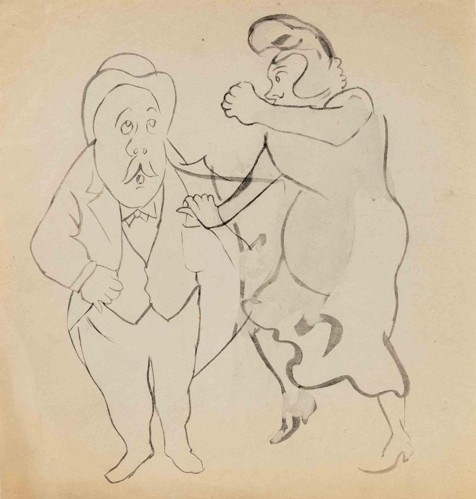 Mino Maccari, Spouses' Quarrels, Drawing on Paper, 1960s