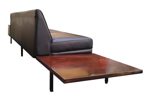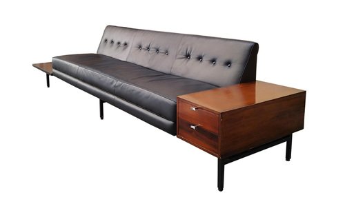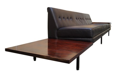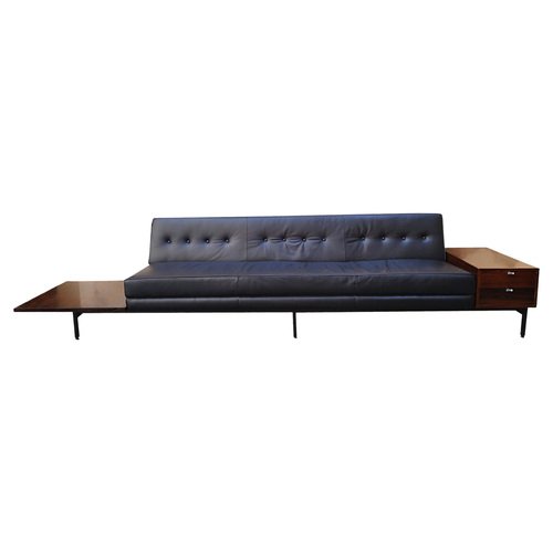 In 1935, Nelson became associate editor of Architecture Forum and Fortune magazines, for whom he continued to work through the 1940s. His writing drew the attention of D.J. DePree, president of Michigan-based furniture manufacturer Herman Miller, and Nelson subsequently designed his first collection for the brand in 1945; in 1947, he became the company’s design director. There he designed hundreds of furniture pieces and recruited rising design talents including Isamu Noguchi and Charles and Ray Eames, among others.