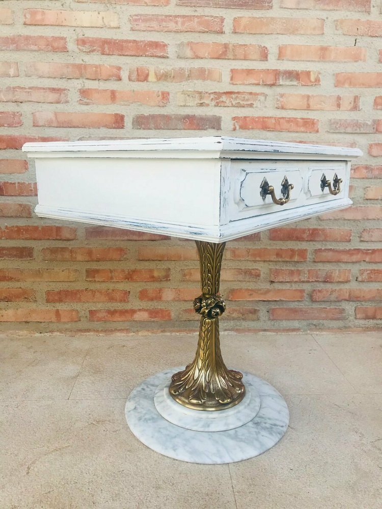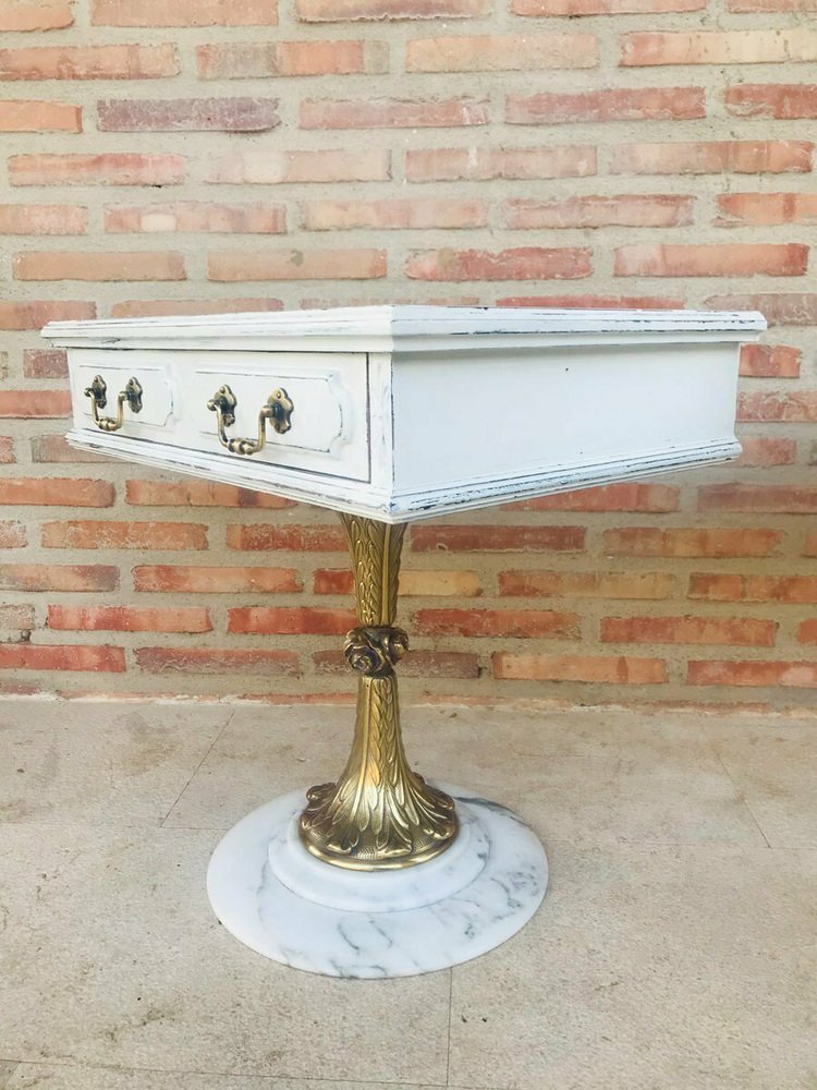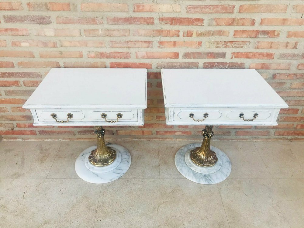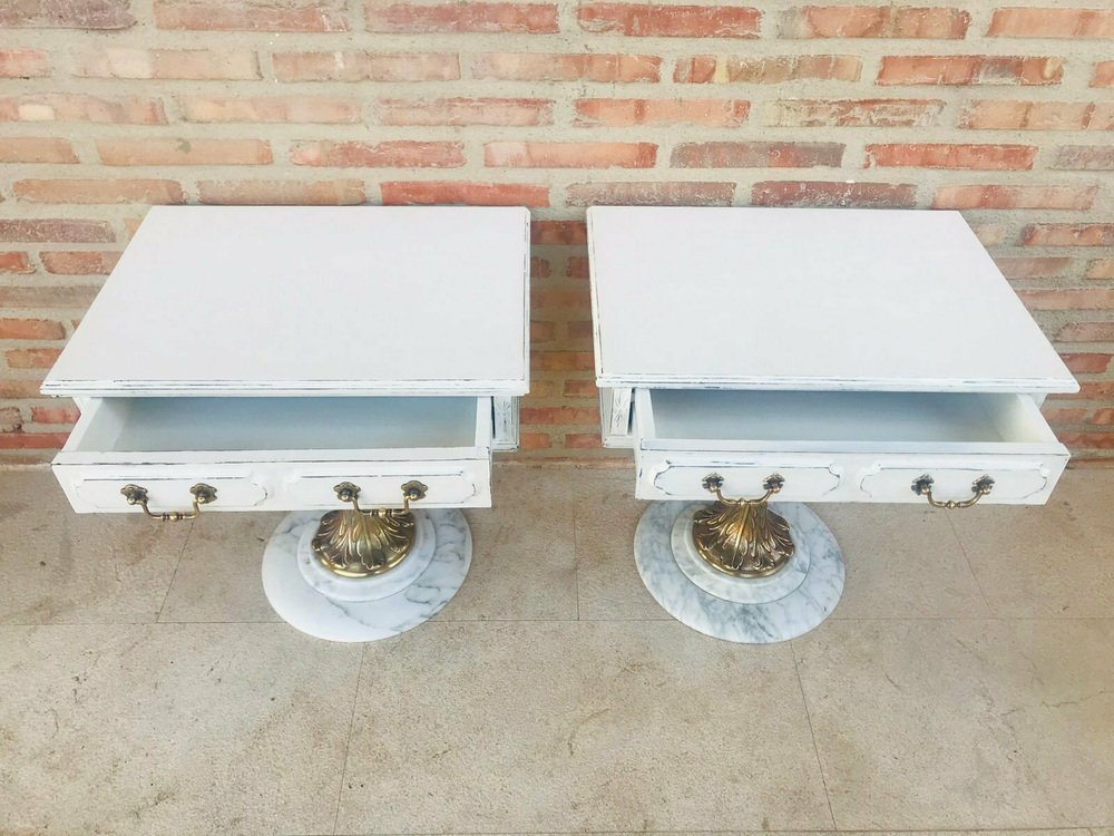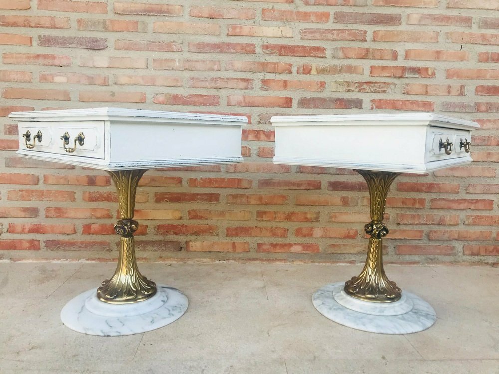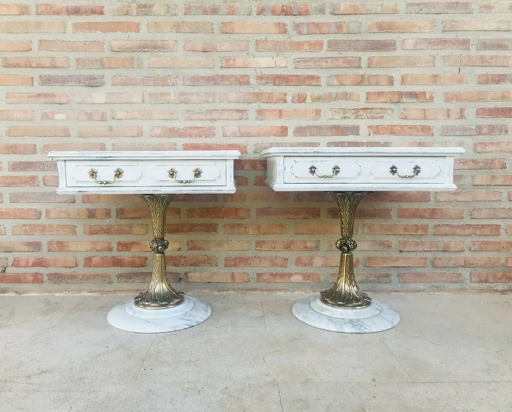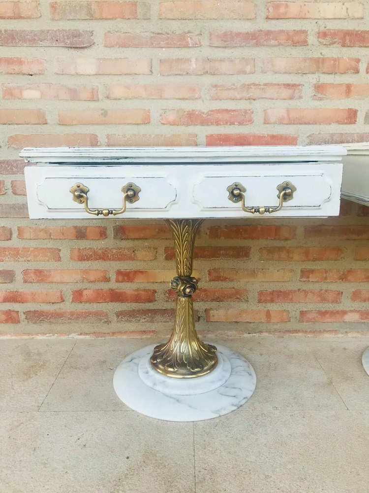 Neoclassical Side Tables with Drawers and Marble Bases, 1950, Set of 2