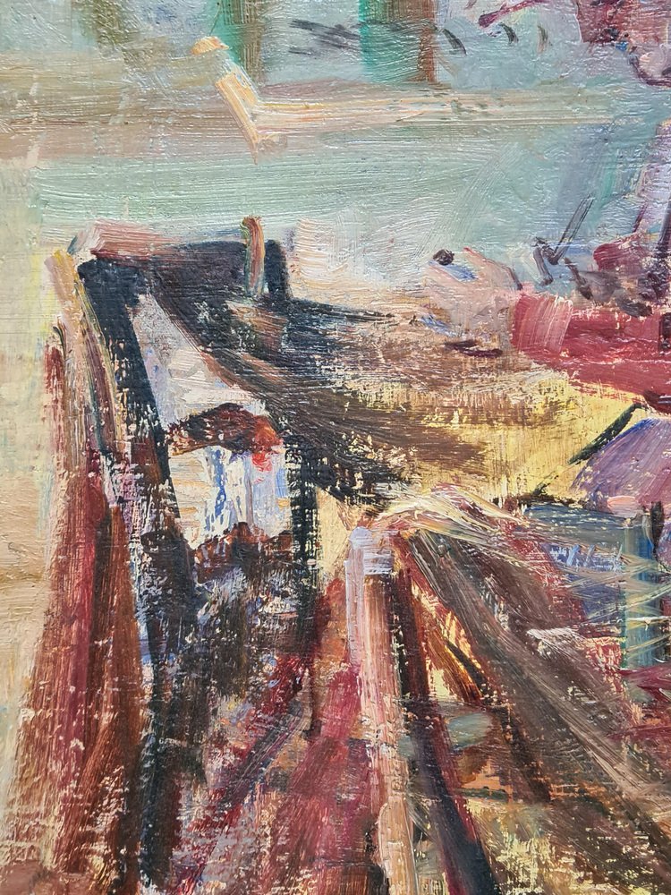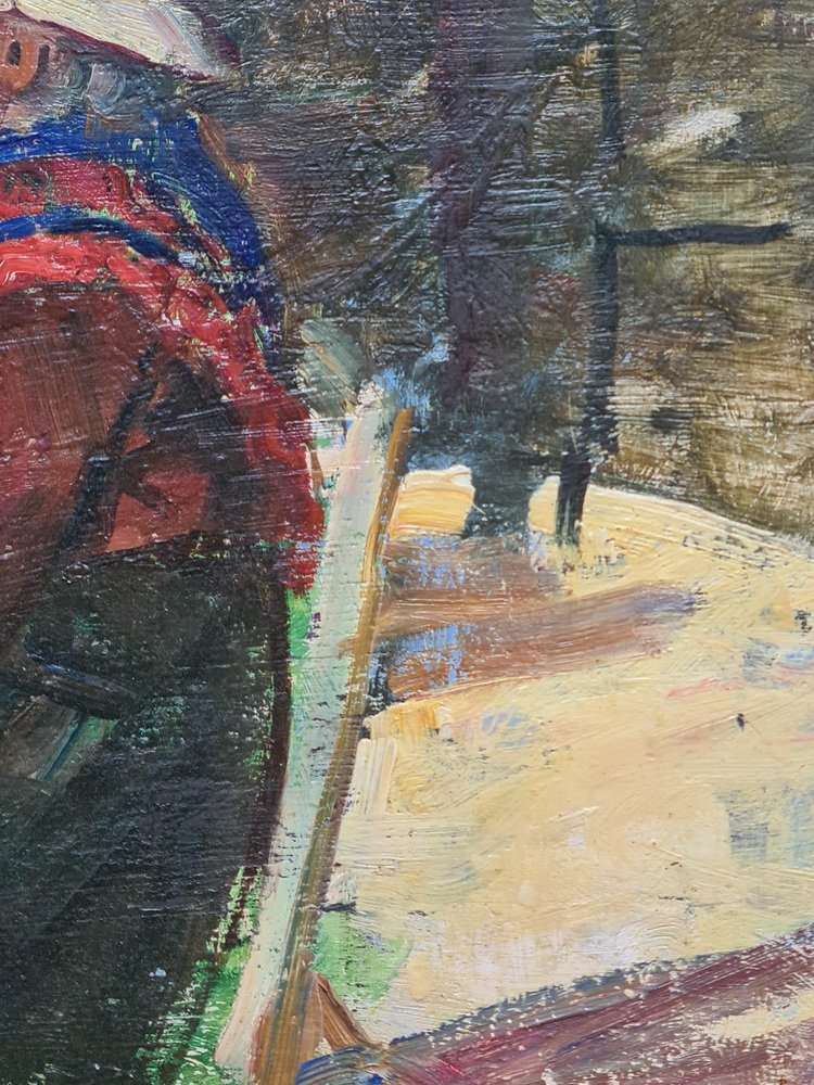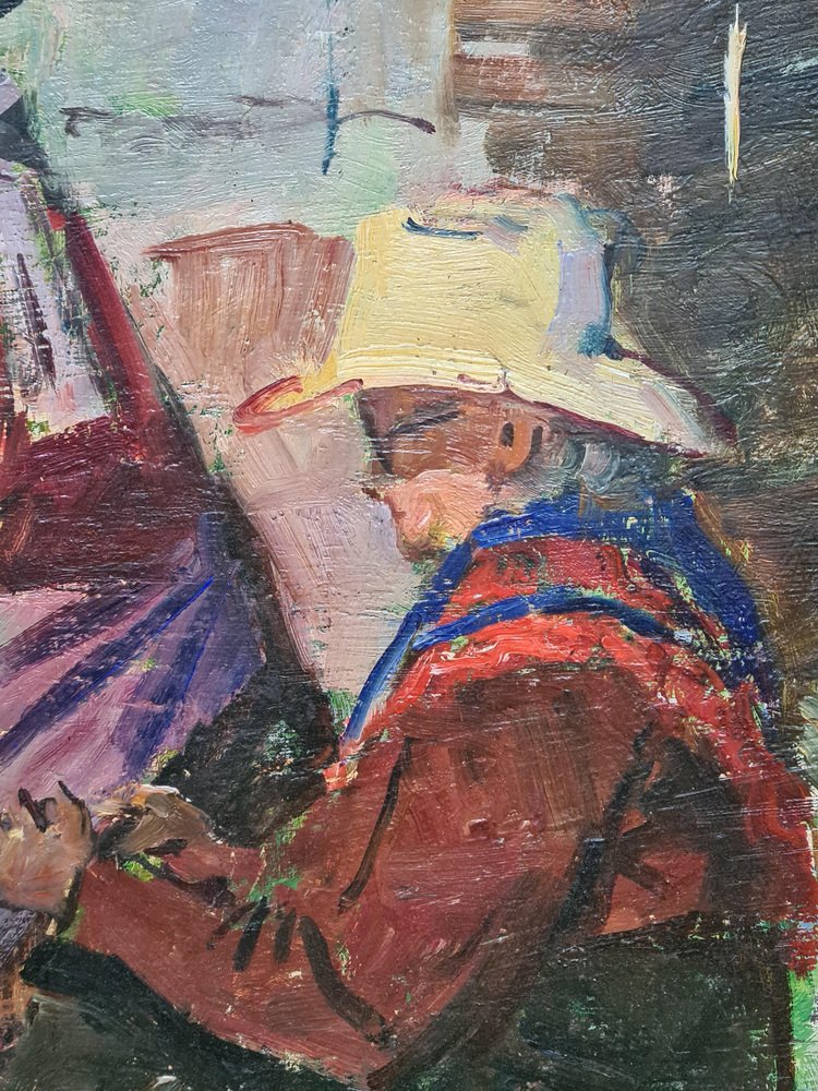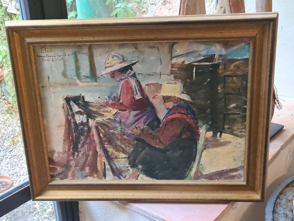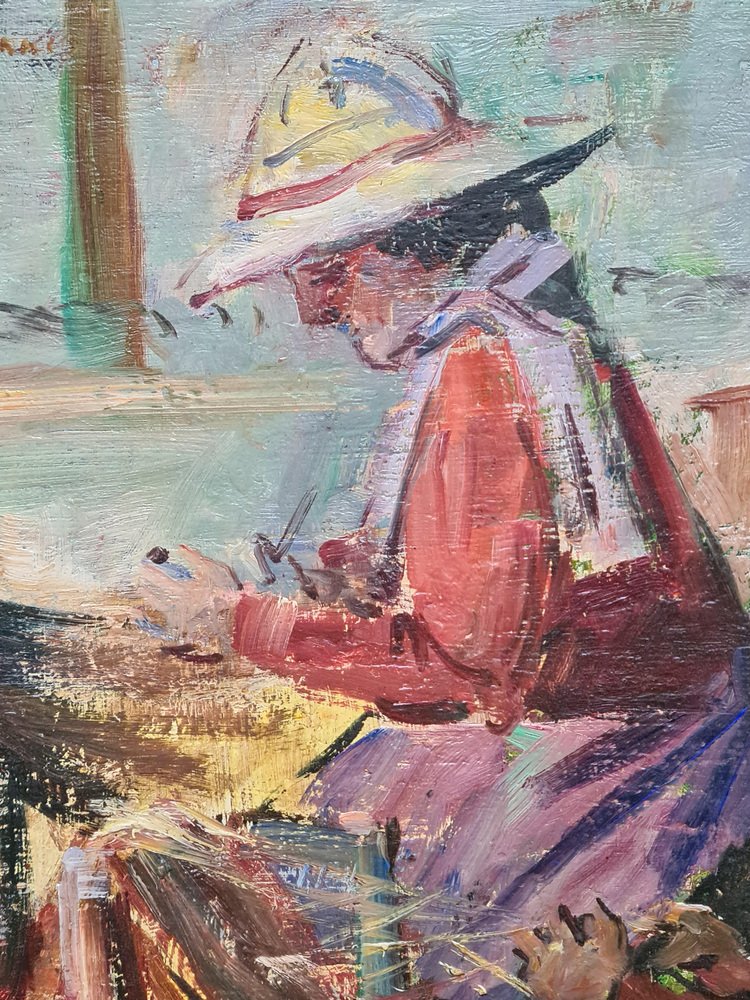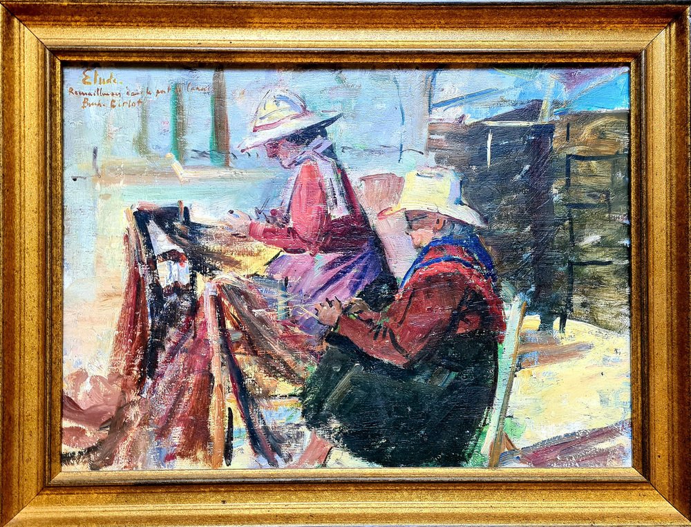 Nguyen Van Binh-Cirlot, Mending the Fish Nets, 1960s, Oil on Board, Framed