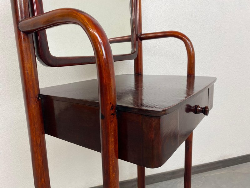 Architect-designer Josef Hoffmann was born in 1870 in Prinitz, Moravia (now Brtnice, the Czech Republic). He studied architecture at the Senior State Commercial and Technical School in Brünn (now Brno, Czech Republic). After a year of practice in Würzburg, Germany, he moved to Vienna, the city where he would remain for the rest of his life. He enrolled in the Academy of Fine Arts there, and, between 1892 and 1895, studied under both Karl von Hasenauer and Otto Wagner. From 1896 to 1897, he worked in Wagner’s Vienna studio. He also became one of the founding members of the Vienna Secession, a group of artists (including Gustav Klimt, Carl Moll, and others) who favored a modern, experimental approach to the arts. Hoffman’s contributions to several Secession exhibition installations, all influenced by the Art Nouveau-Jugendstil style, helped establish his name. In 1899, he was appointed a professor at Vienna’s Kunstgewerbeschule, a position he held until his retirement in 1936. He taught in the school’s architecture, metalwork, enamel, and applied art departments.