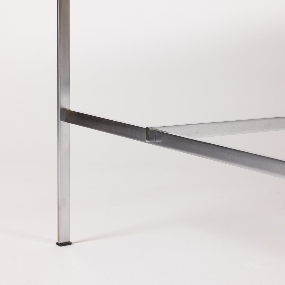 Kastholm and Fabricius favored a functionalist approach and a minimalist aesthetic, always aimed at simplicity and timelessness. Their lounge chairs and sofas were made almost exclusively in leather and steel—in contrast to many of their contemporaries, who preferred to work with wood. Before the duo parted ways in the late 1960s, they designed numerous pieces for Kill, including important designs like the Scimitar Chair (1962); Bo-562 Sofa and Bo-562 Chair (1963); Scimitar Table (1964); X Chair (1968), which bears a striking resemblance to Mies van der Rohe’s Barcelona Chair (1947); and FK 710 Skater Chair (1968). Both the FK 6725 "Tulip" Chair (1965)—which was the first winner of the Germany’s Gute Form prize in 1969—and the Grasshopper Chaise Lounge (1968) have become modernist icons.
