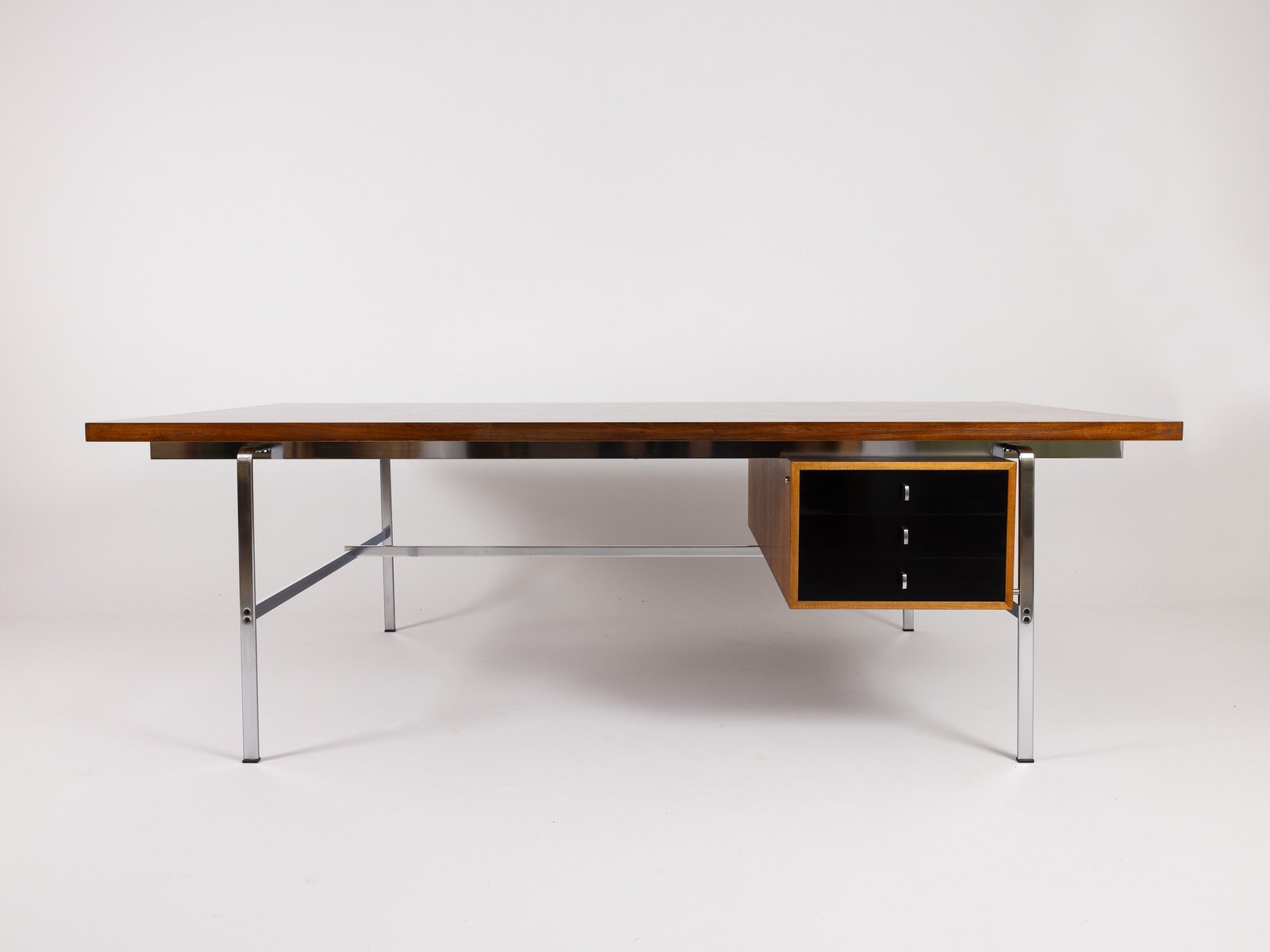 Sometime in the mid-20th century, Alfred Kill established Kill International in Stuttgart-Fellbach, Germany. It is conjectured that Kill added “International” to the firm’s name in imitation of his extremely successful and popular competitor, Knoll International. And like other companies in the market, such as Walter Knoll and Herman Miller, Kill began to develop collaborations with innovative designers who would create high-end, modernist furniture lines. In the early 1960s, he discovered the work of Kastholm (1931-2007) and Fabricius (1931-1984) at the Fredericia furniture fair. Not keen on having their furniture mass-produced, the duo finally agreed to work with Kill after he promised them total control over production and hefty salaries. This partnership would eventually secure a place for Kastholm and Fabricius, as well as Kill International, in design history.