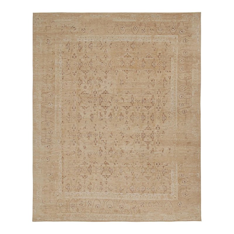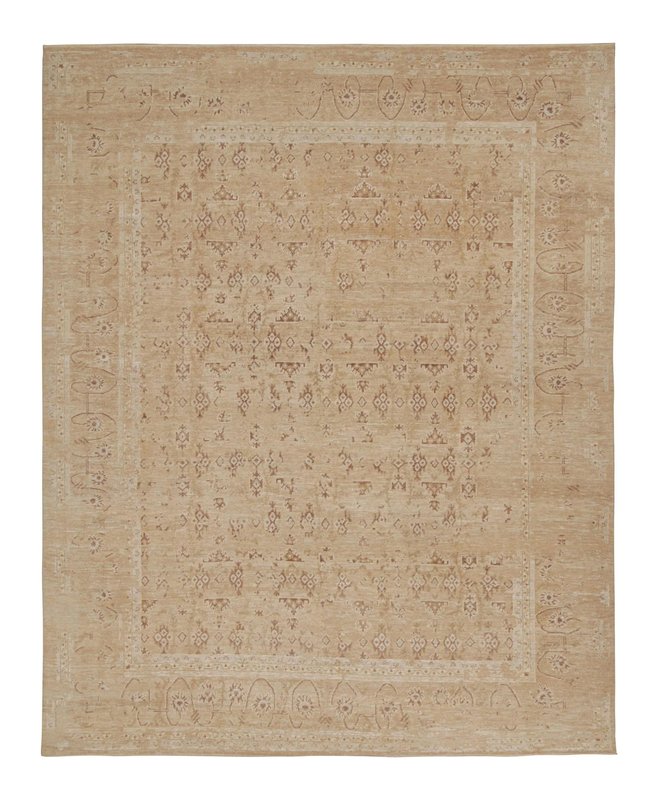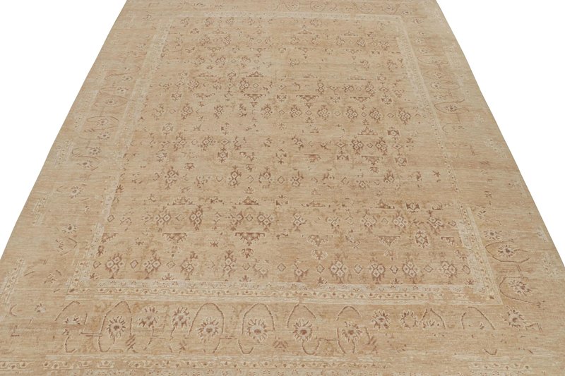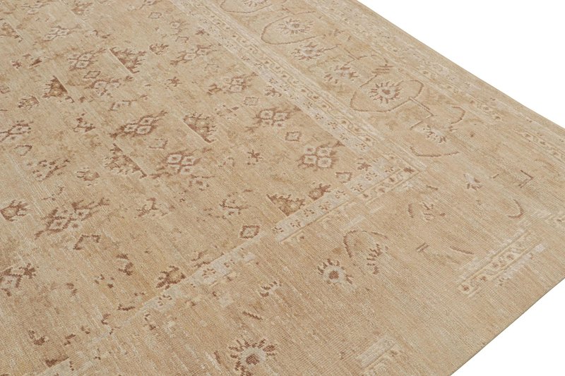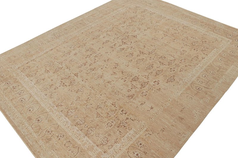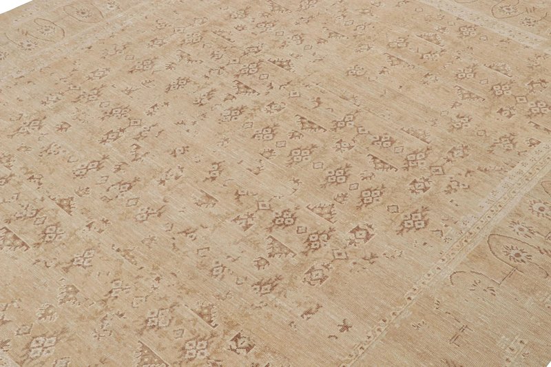 Oushak Style Rug in Taupe with Floral Patterns by Rug&Kilim
