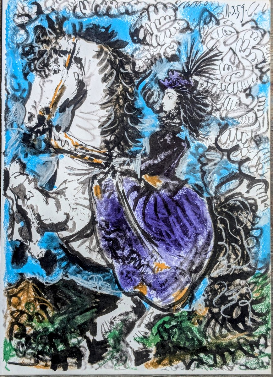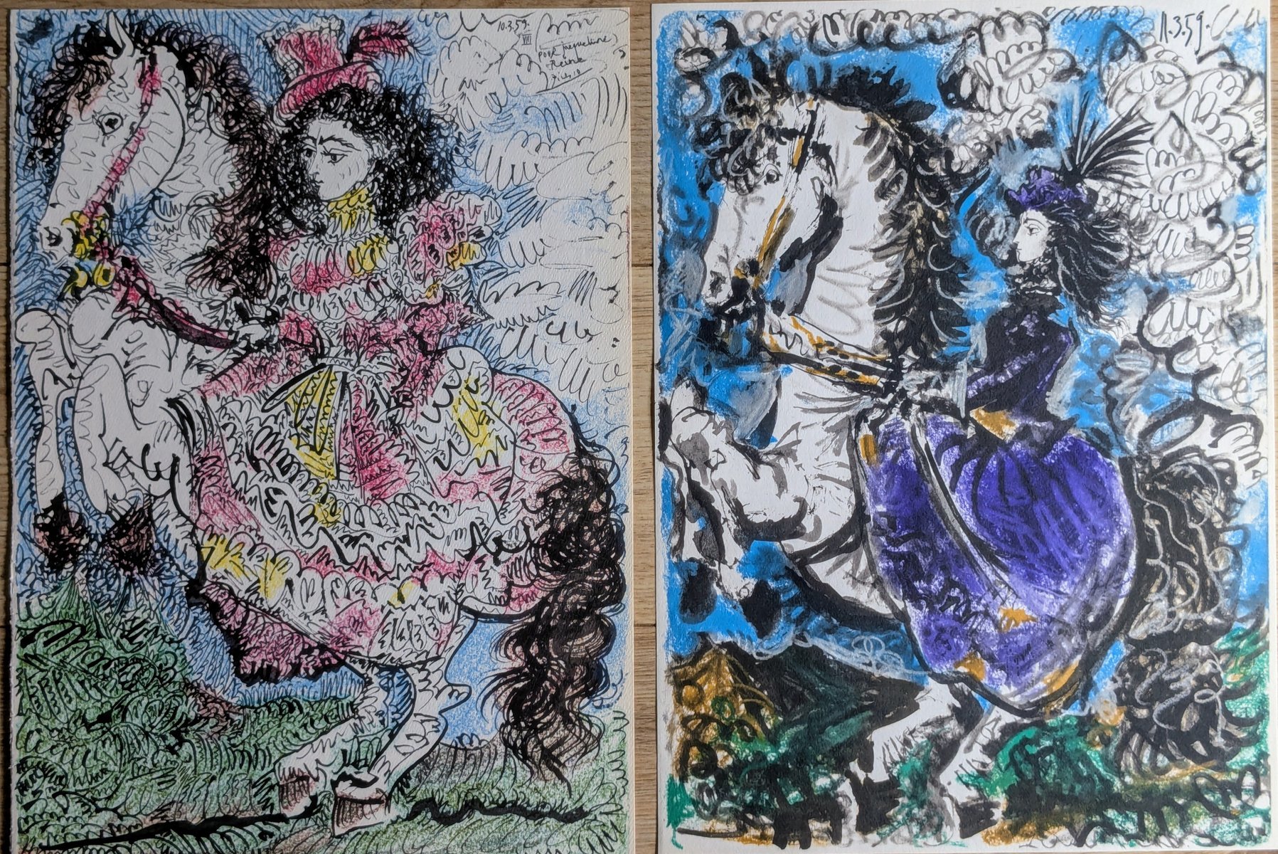Pablo Picasso, The Knight Girl (Jacqueline Riding), 1961, Original Signed Lithographs in Color, Set of 2