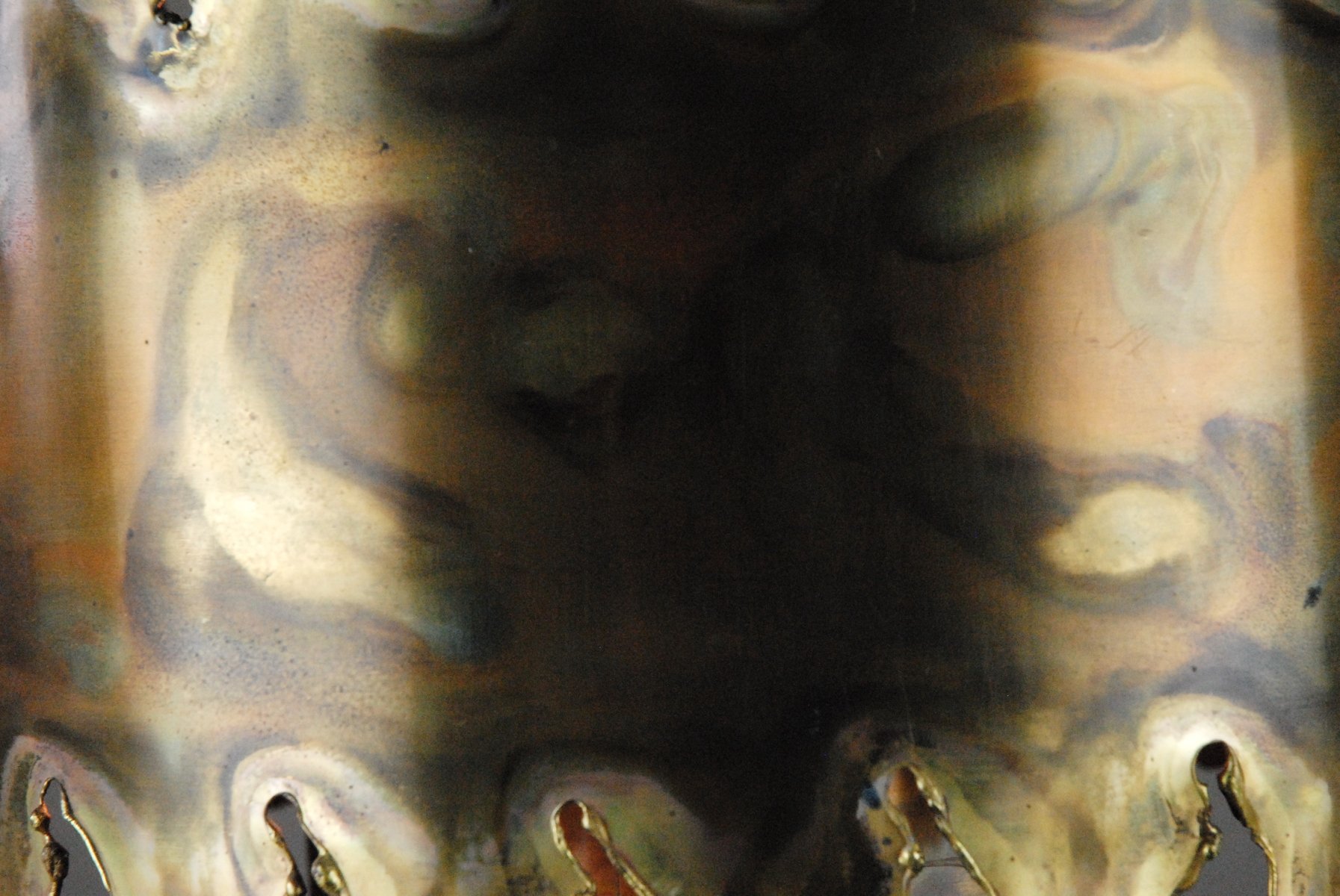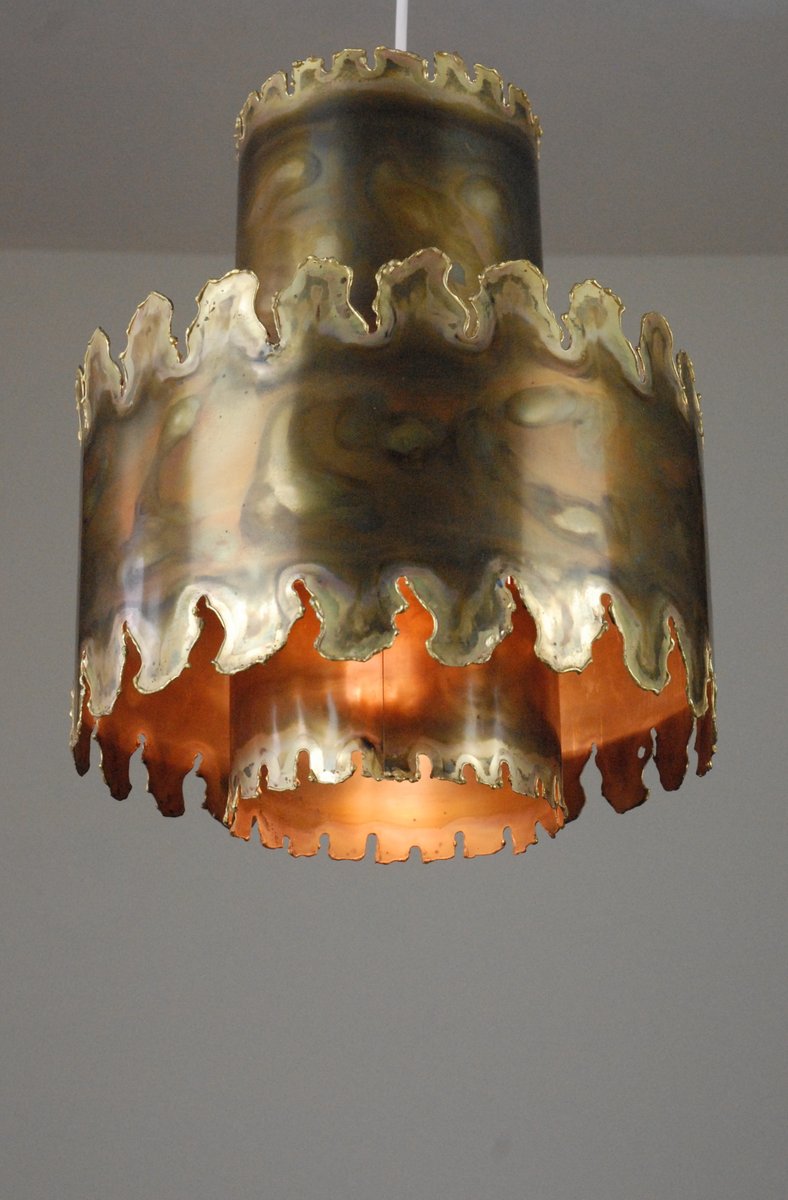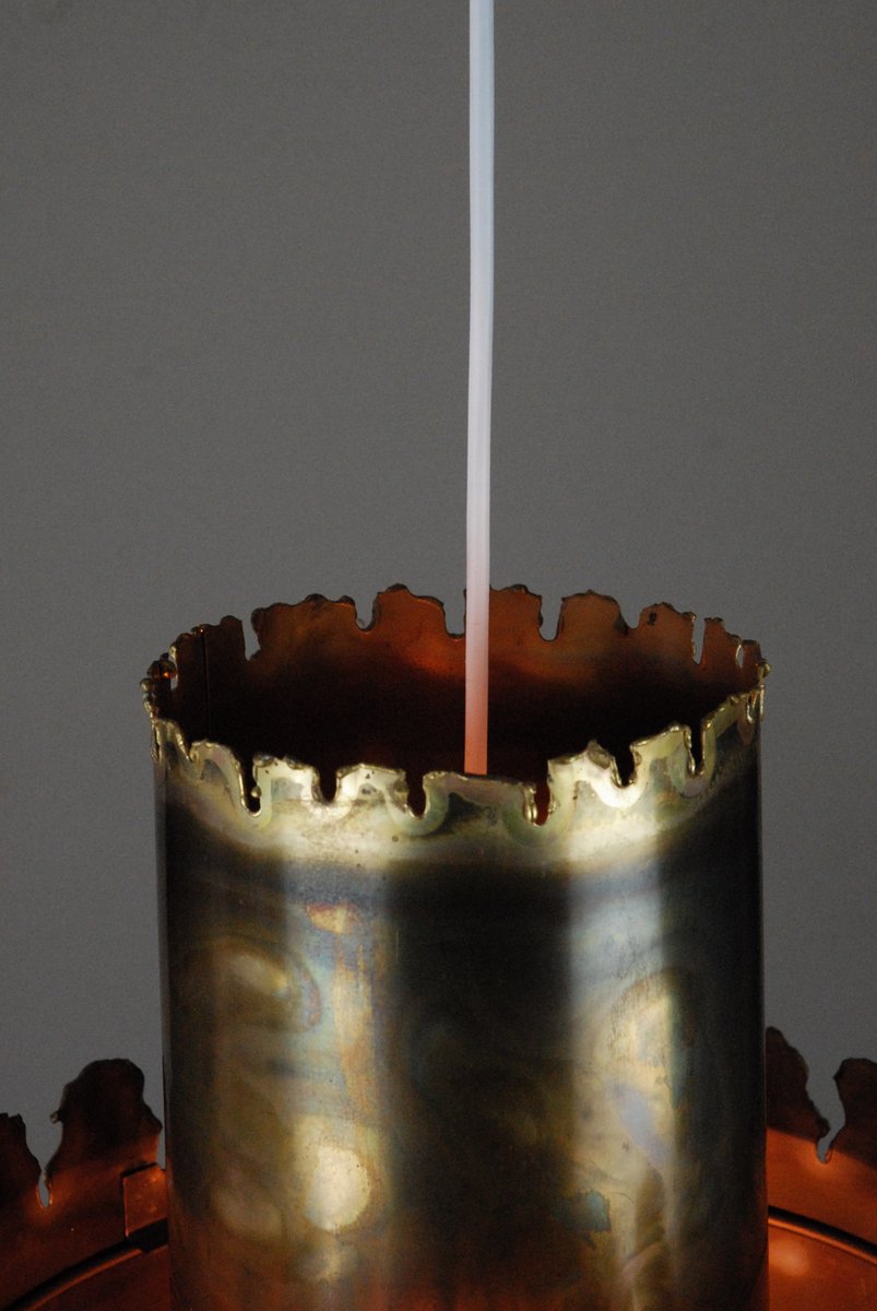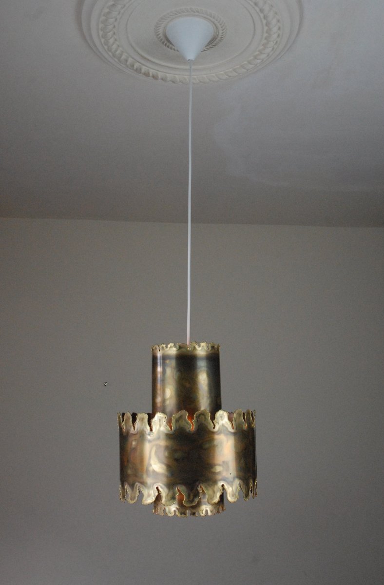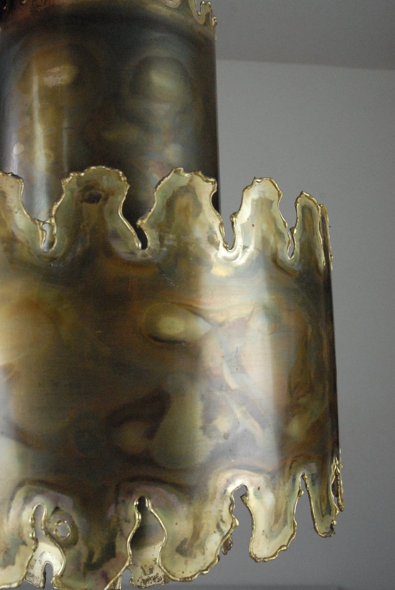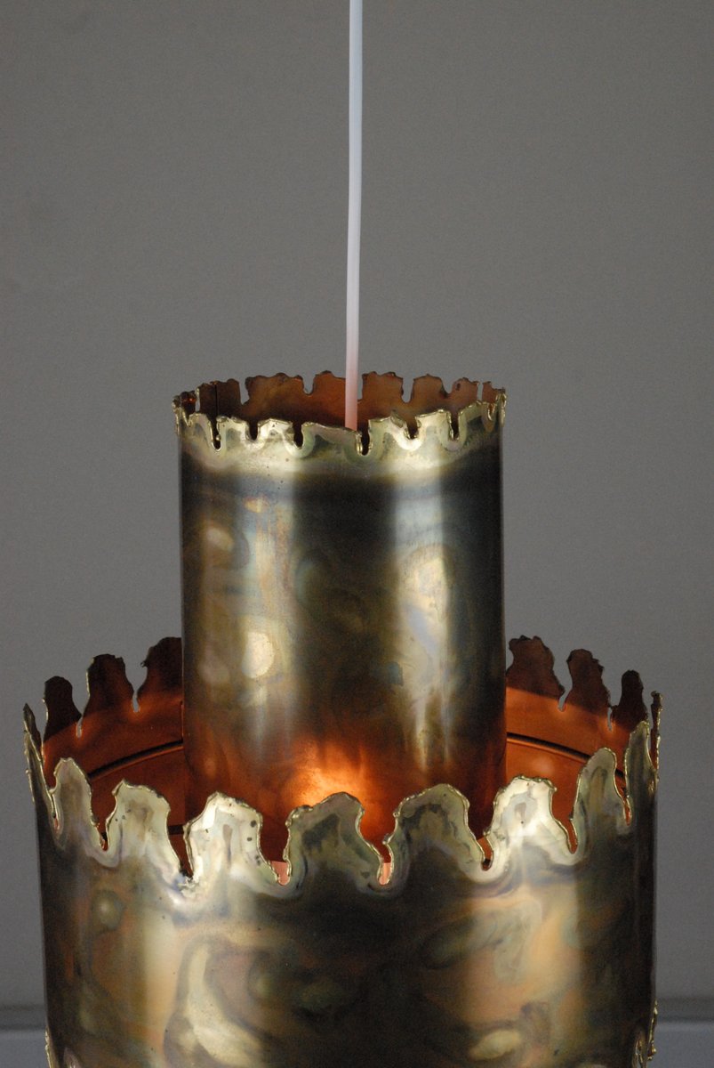 From the 1960s onwards, Holm Sørensen’s style changed utterly. His designs diverged from colorful, geometric table lamps and floor lamps, to pendants with unfinished brass and copper surfaces. These pendant lamps showcase Holm Sørensen’s interpretation of the Brutalist style, which was popular from the 1950s to the mid-70s. Originally coined by the Swedish architect Hans Asplund, the style was internationally espoused by many iconic designers, including Le Corbusier.
