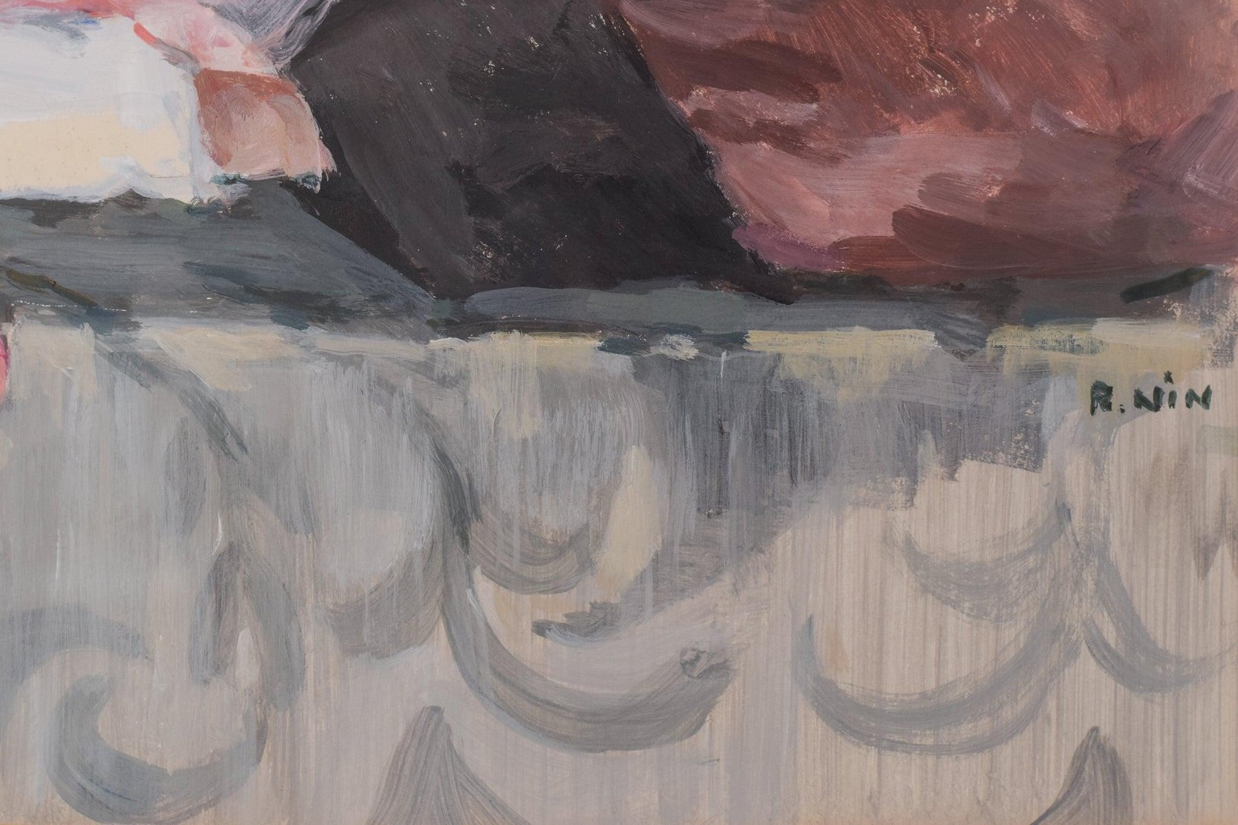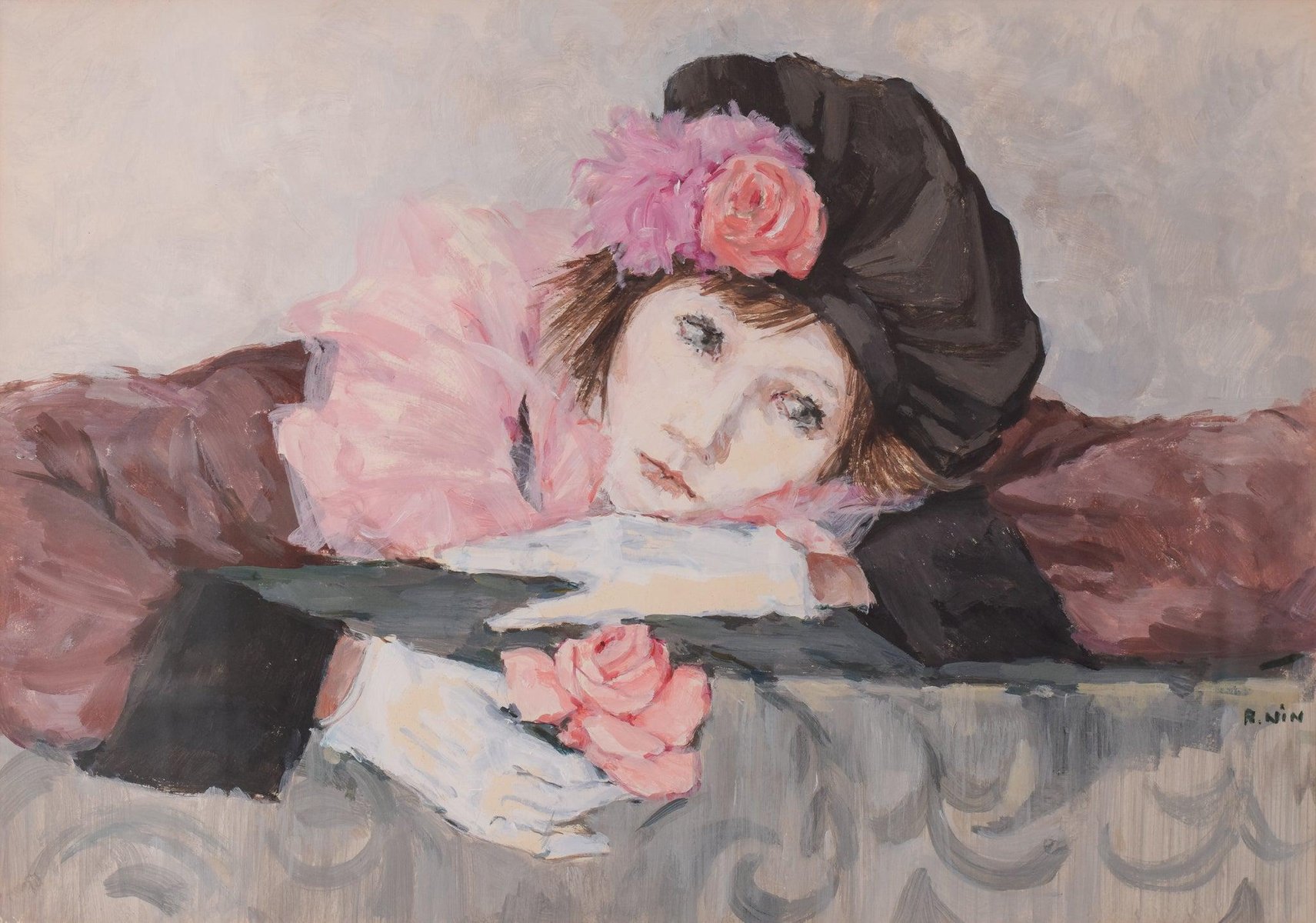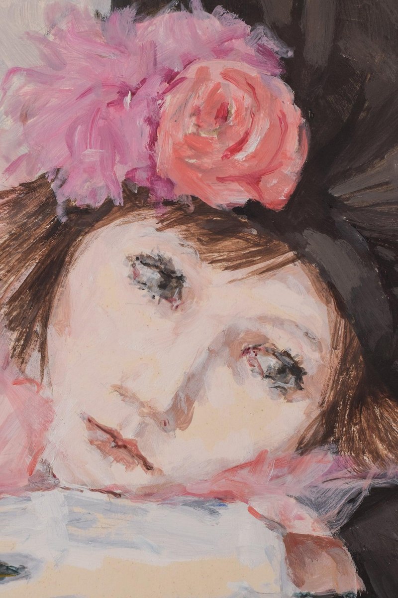 Portrait of a Lady with a Rose, 20th-Century, Watercolor on Paper, Framed
