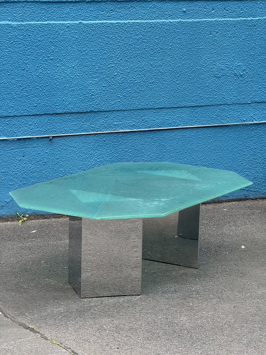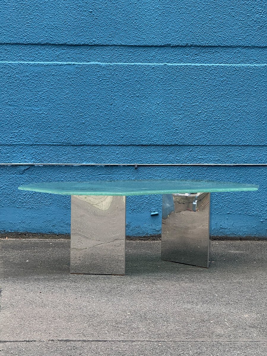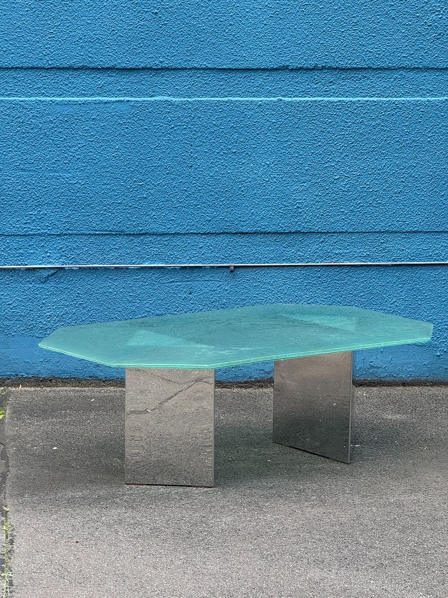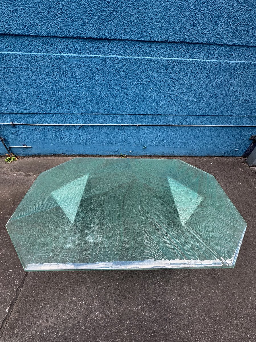 Postmodern Coffee Table with Textured Glass Top, 1980s