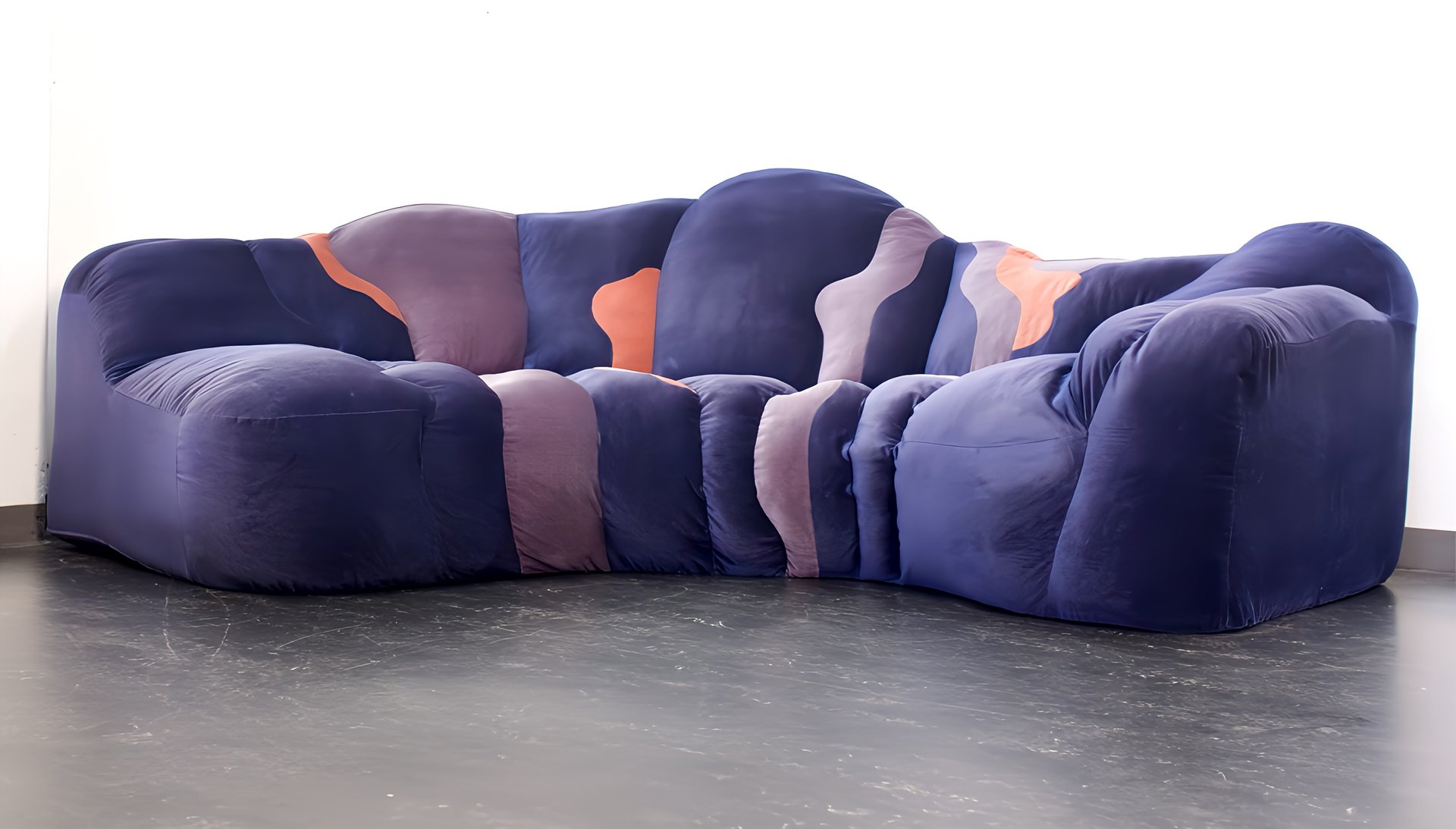 Postmodern Organic Polster Mit Pep Design Studio Sofa in Velour, Germany, 1980s