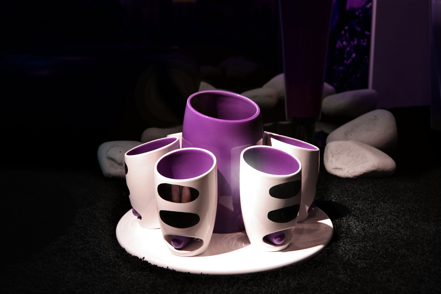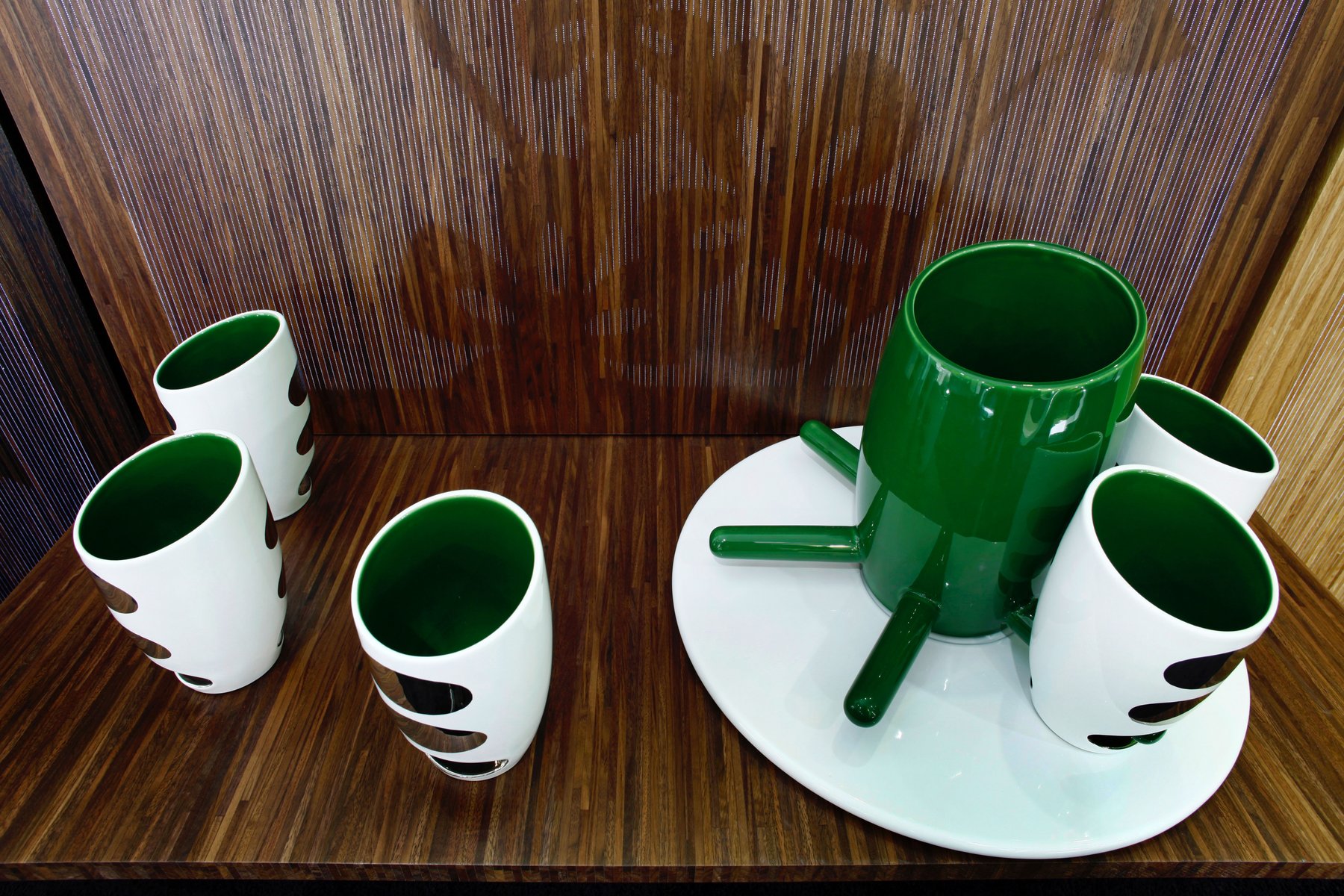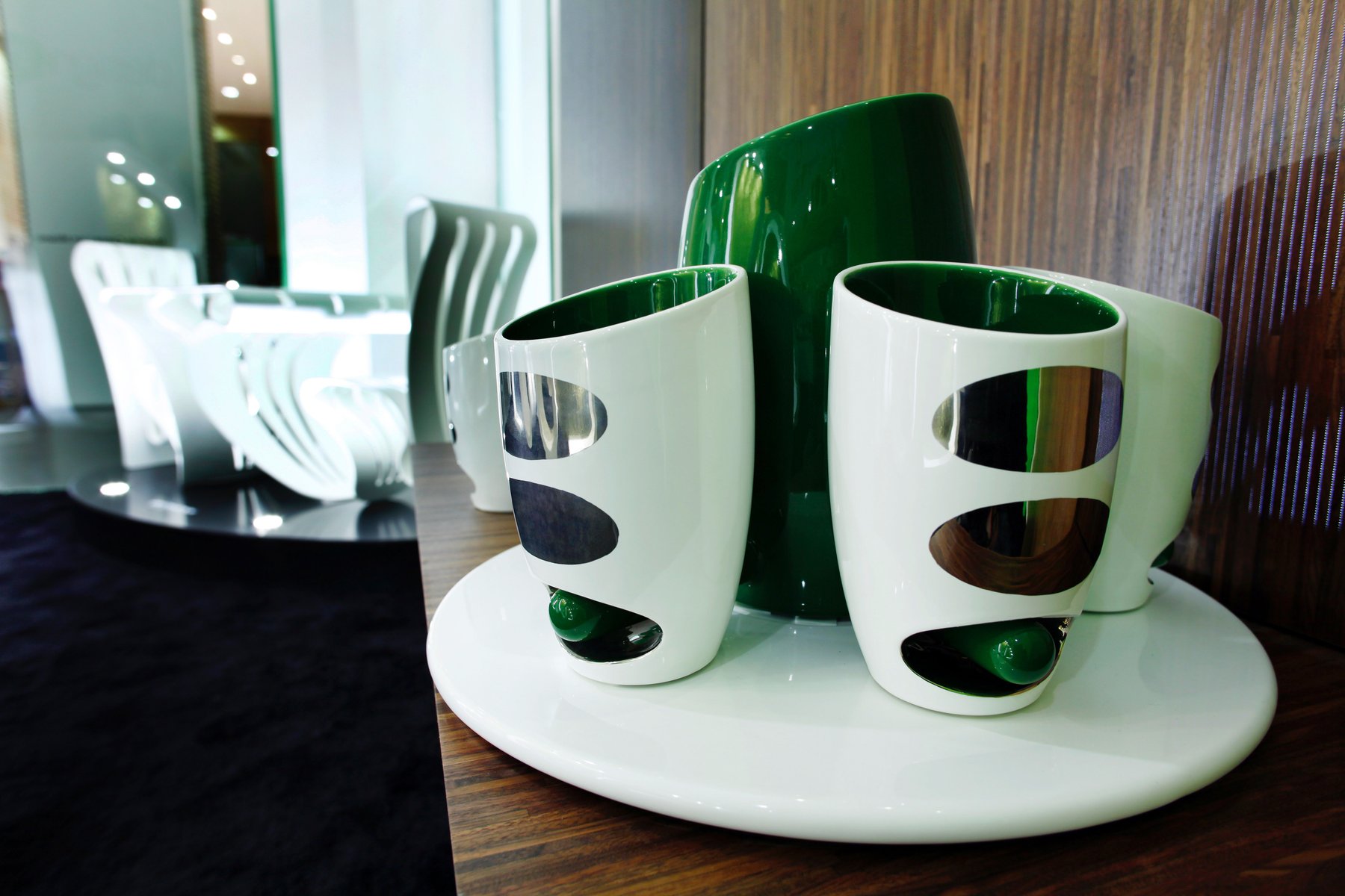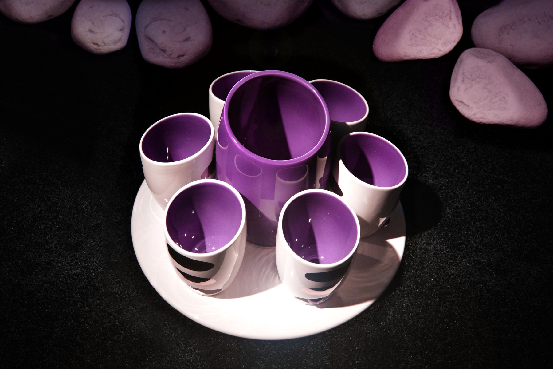 Pressure Collection Porcelain Cups with Bottle Tray by Giancarlo Zema for Bosa, Set of 6