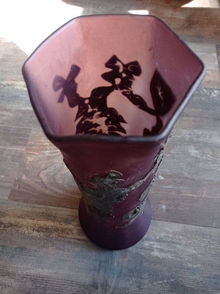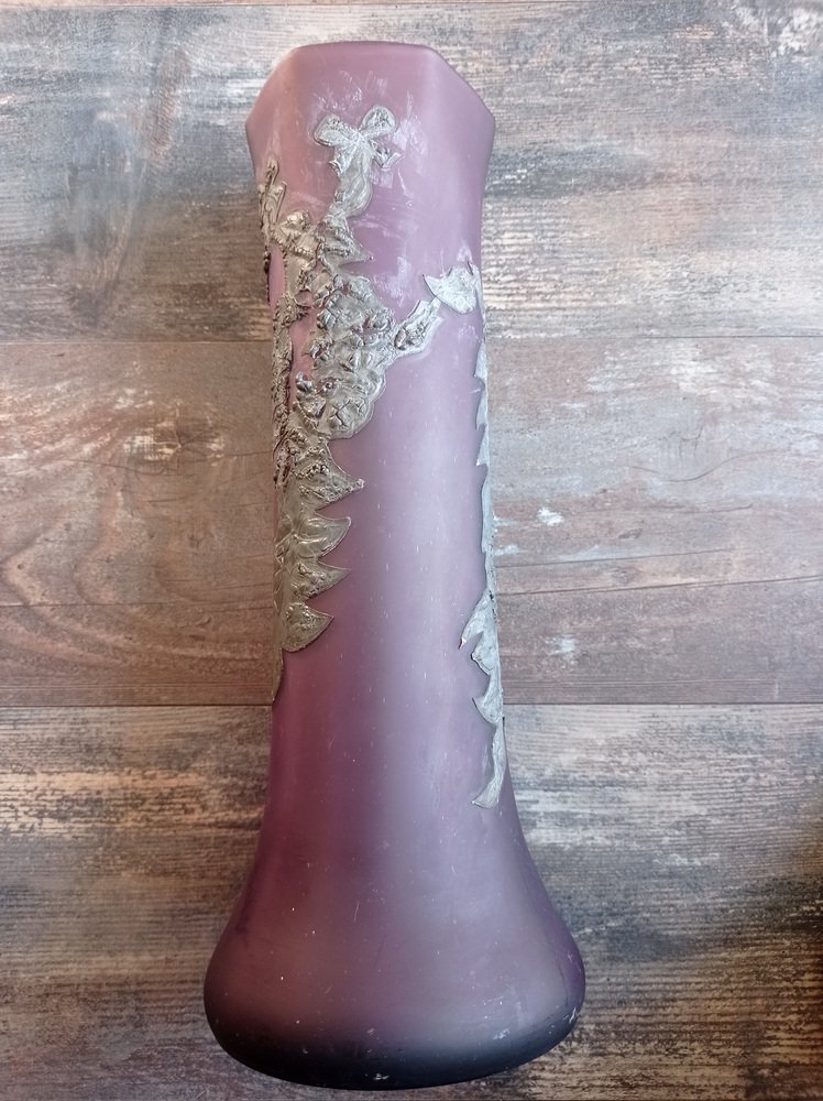 Purple Glass Vase with Etain Applied Decor, 1920s