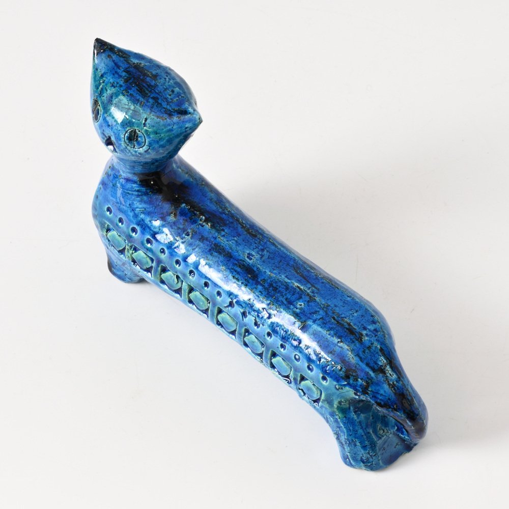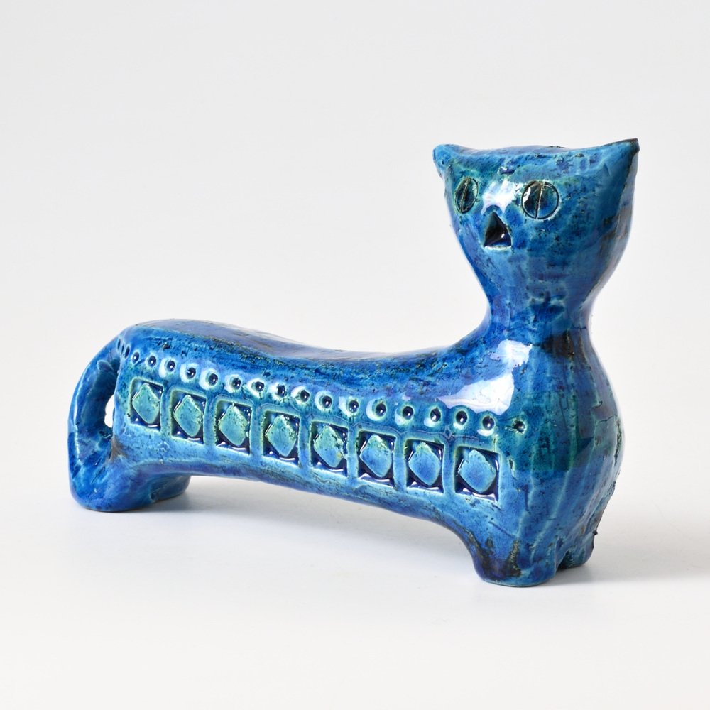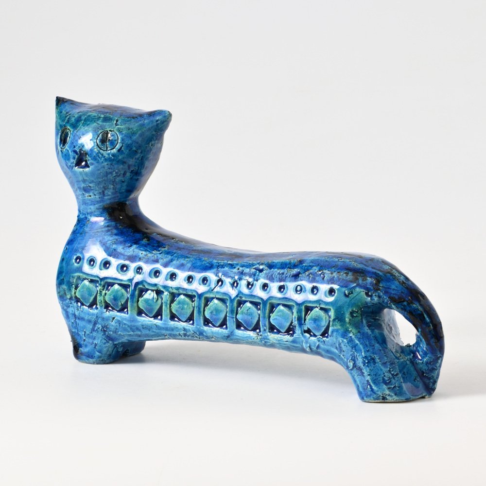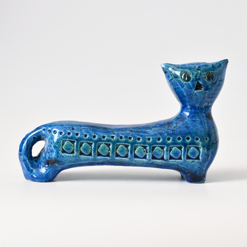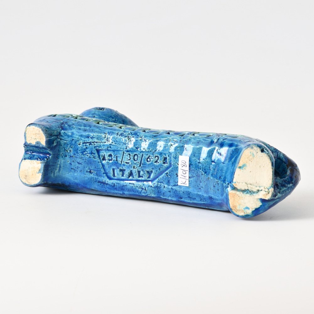 After World War II, master ceramist Aldo Londi (1911-2003) became the creative director of Bitossi Ceramiche, a position he held for more than fifty years. Londi—who was also from Montelupo—began apprenticing in ceramics at the age of eleven and brought to Bitossi a deep expertise in traditional ceramics production. He’s best known for his 1950s-era collection Rimini Blu (1955-1965). This iconic midcentury modern series contains over 150 designs, including bowls, vases, jugs and animal figurines, all glazed in a vibrant blue hue and embossed with abstract motifs and shapes. Londi created the first piece glazed in Persiano Blue, Ball Vase, in 1955. Shortly after in 1959, he began to create more pieces in the proprietary chromatic glaze. The collection holds historical importance because it helped to bring handcrafted and expressive works into the modernist design conversation in Italy. Though the blue was not the only color Bitossi favored, it has become closely associated with the brand’s identity. The collection is still in production today and widely collected by ceramics enthusiasts.