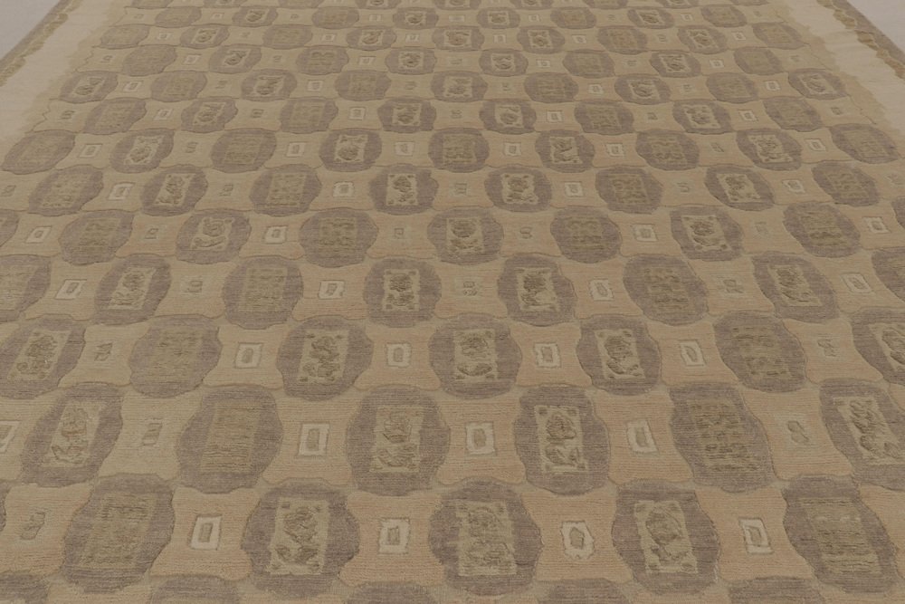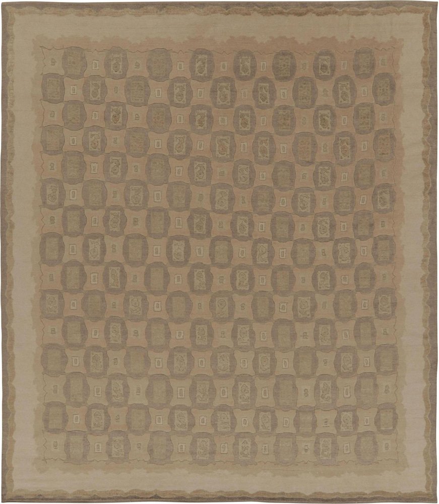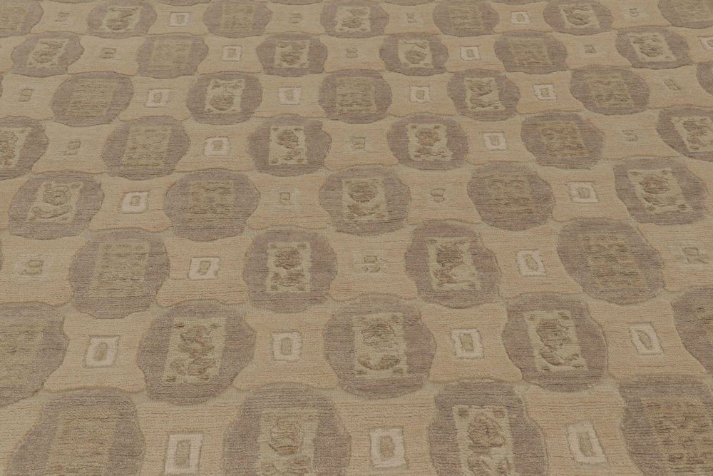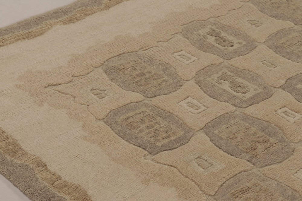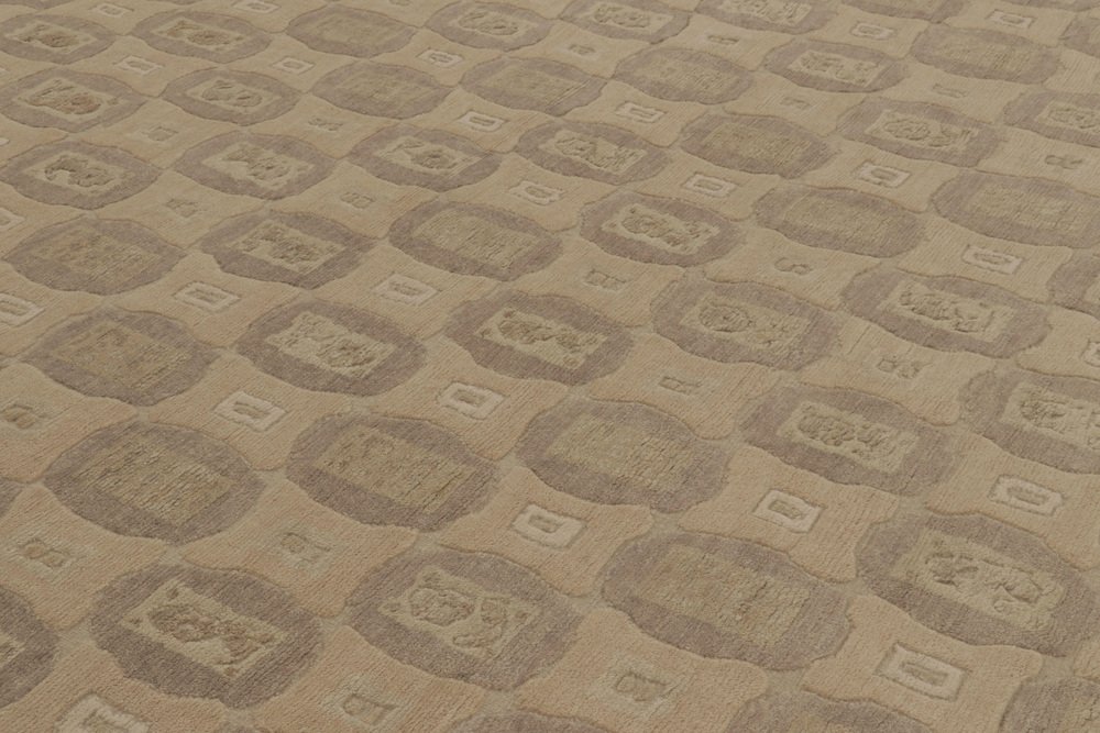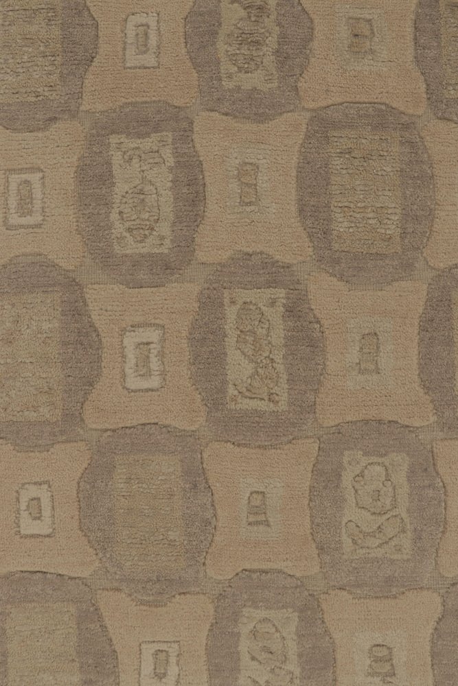 Rug in Beige-Brown with Geometric Patterns by Rug&Kilim