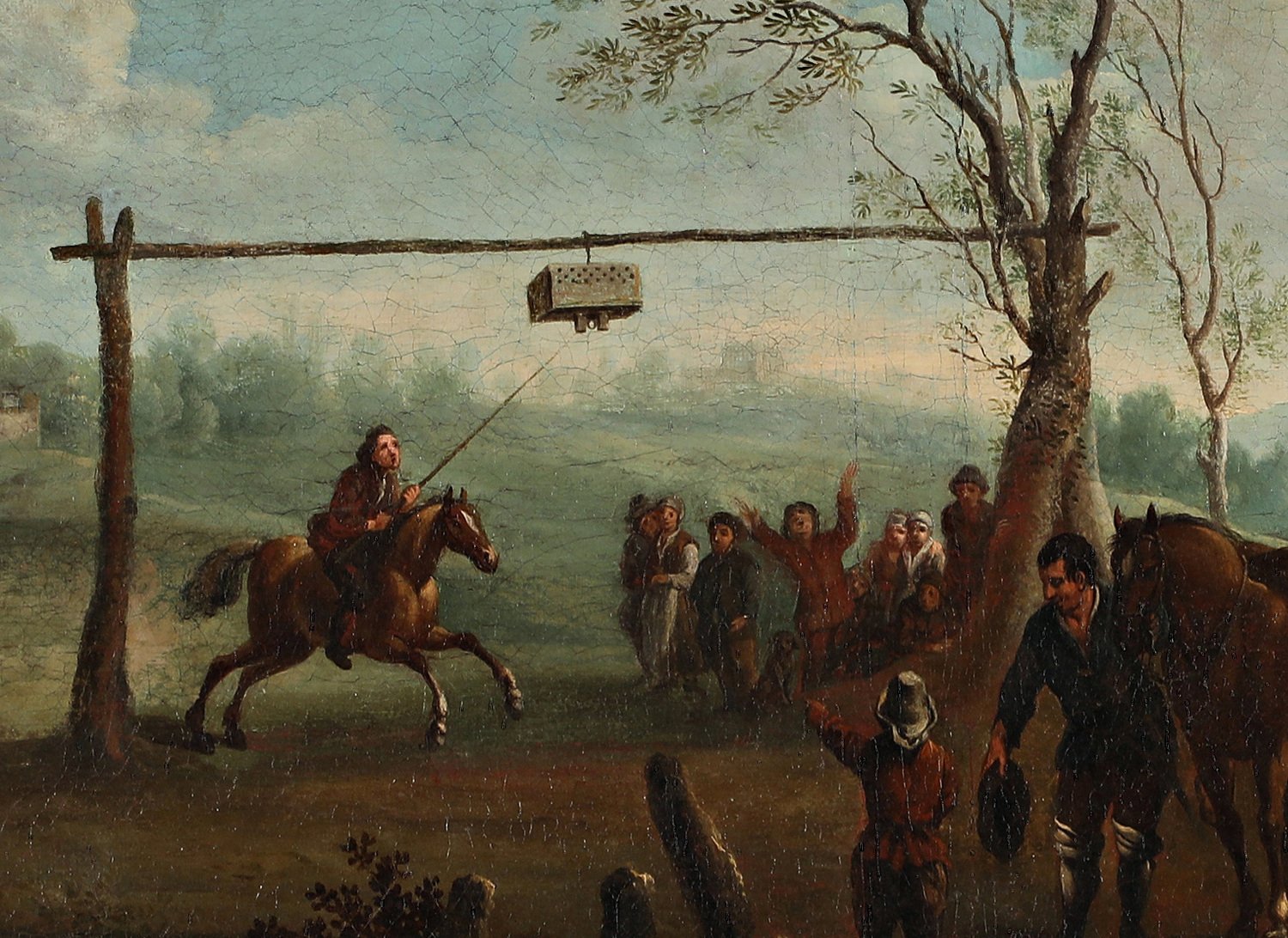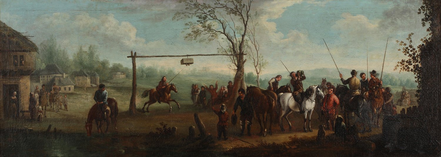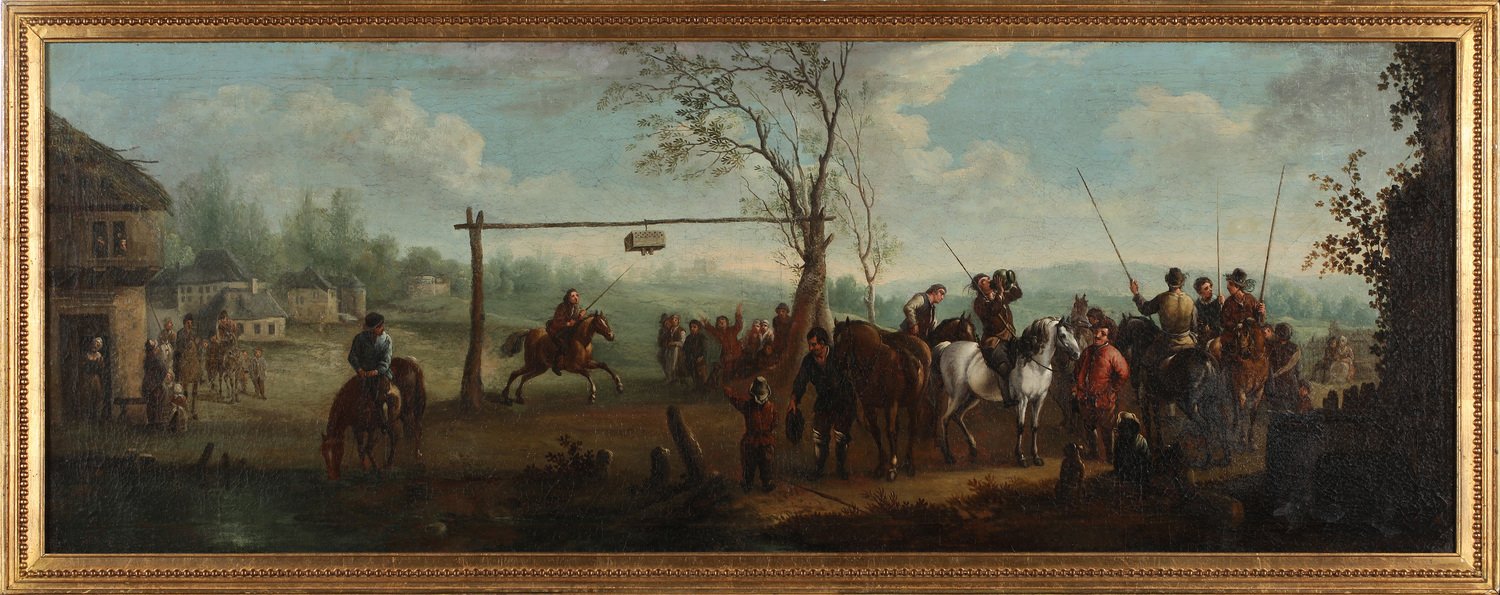 Running at the ring, very rare and large representation of the medieval horse game