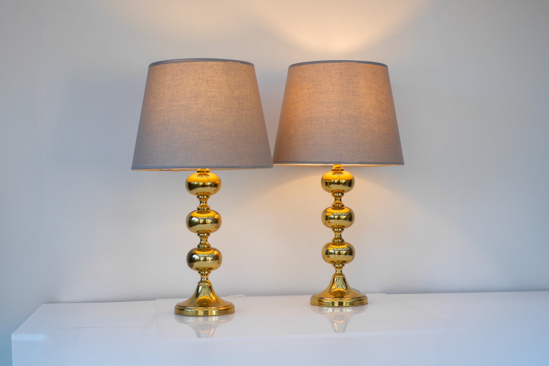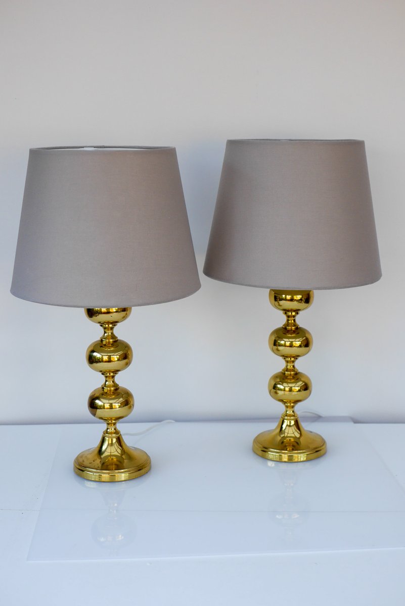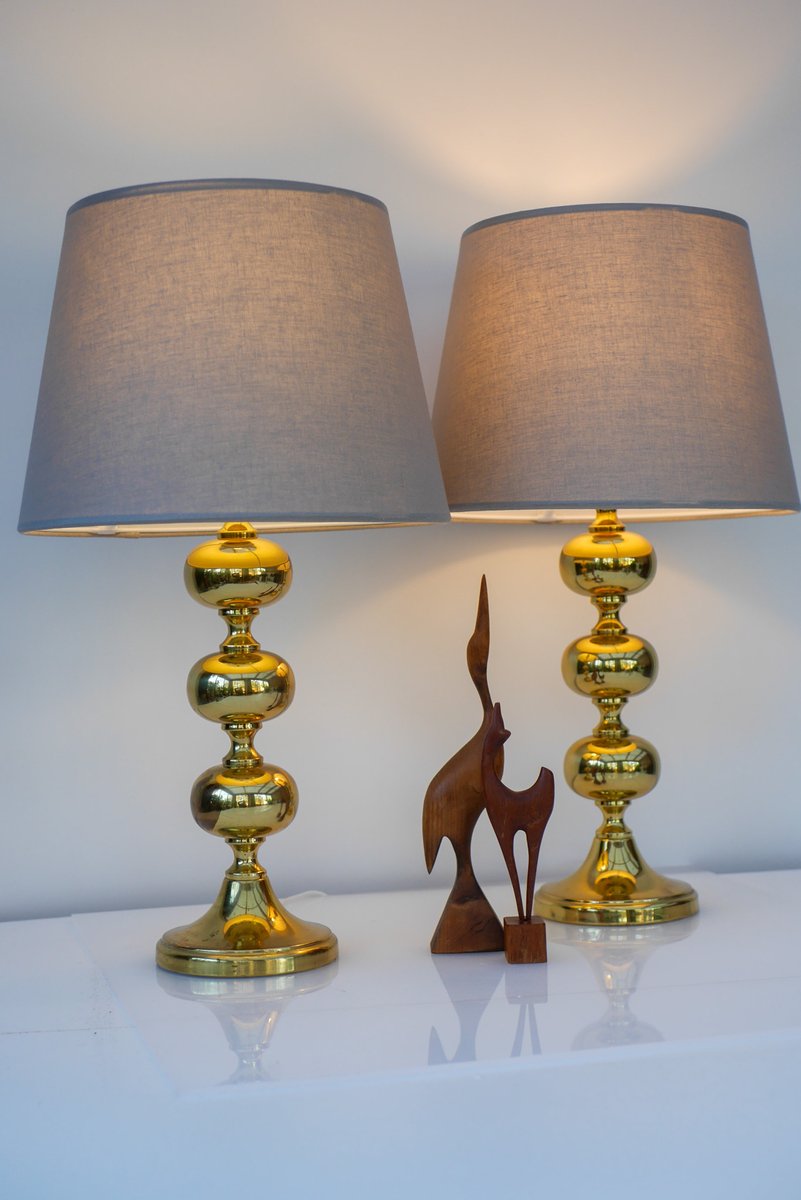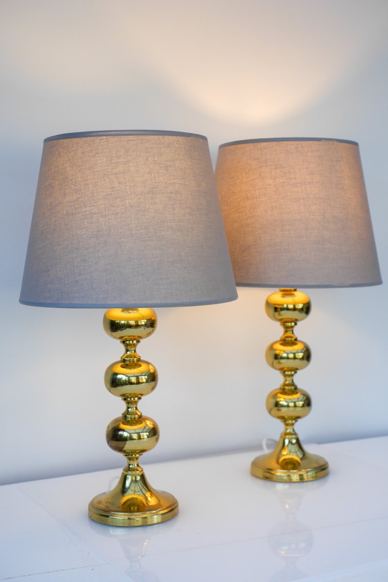 Scandinavian Modern Space Age Brass Table Lamps from Nafa, Sweden, 1970s, Set of 2