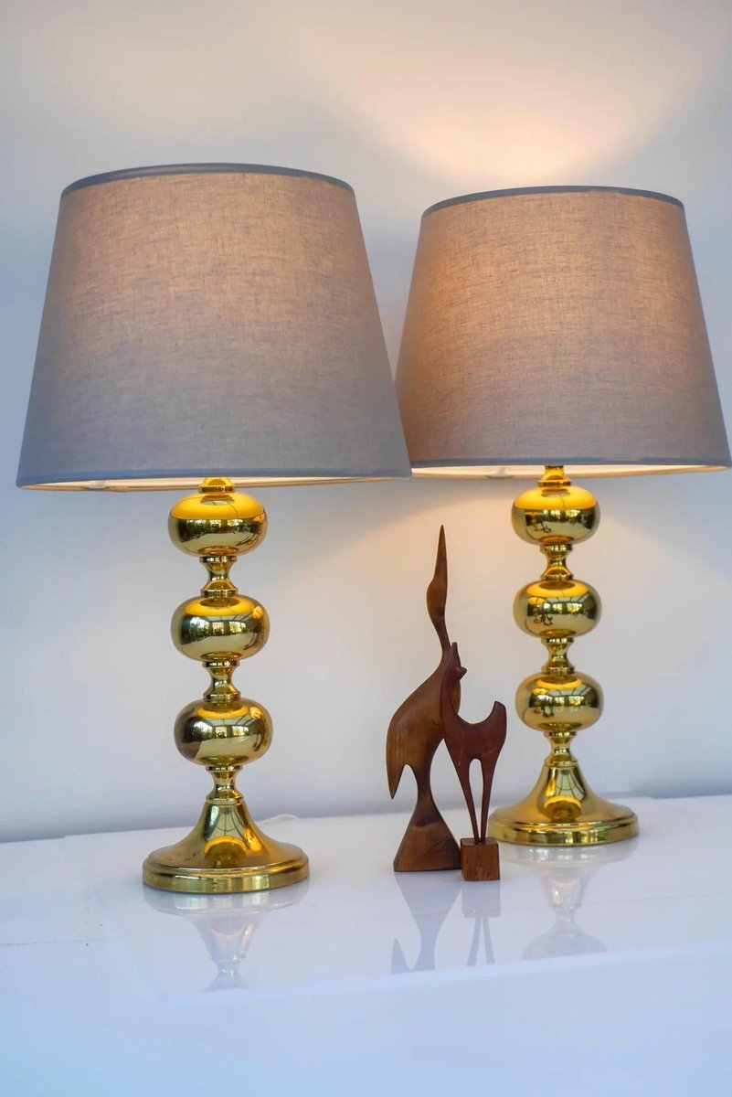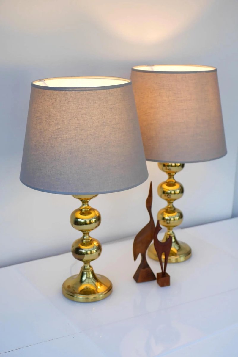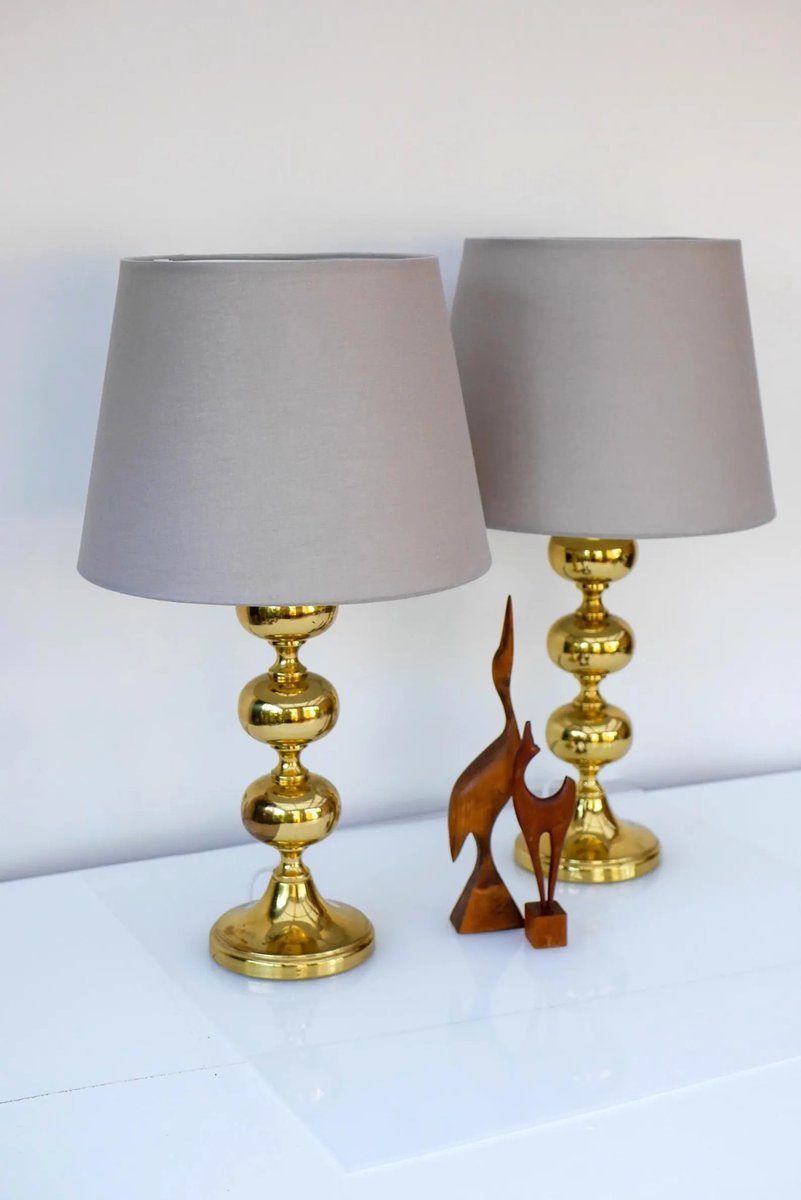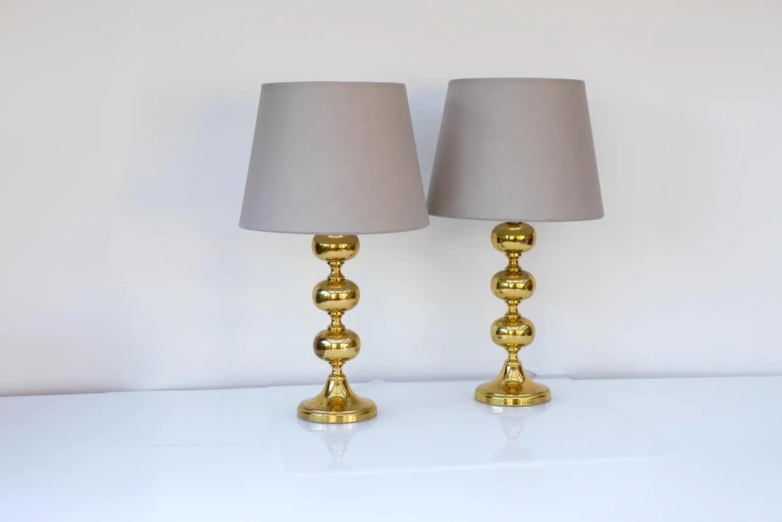 Scandinavian Modern Space Age Brass Table Lamps from Nafa, Sweden, 1970s, Set of 2