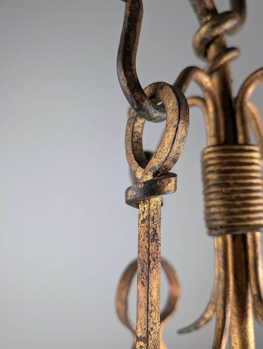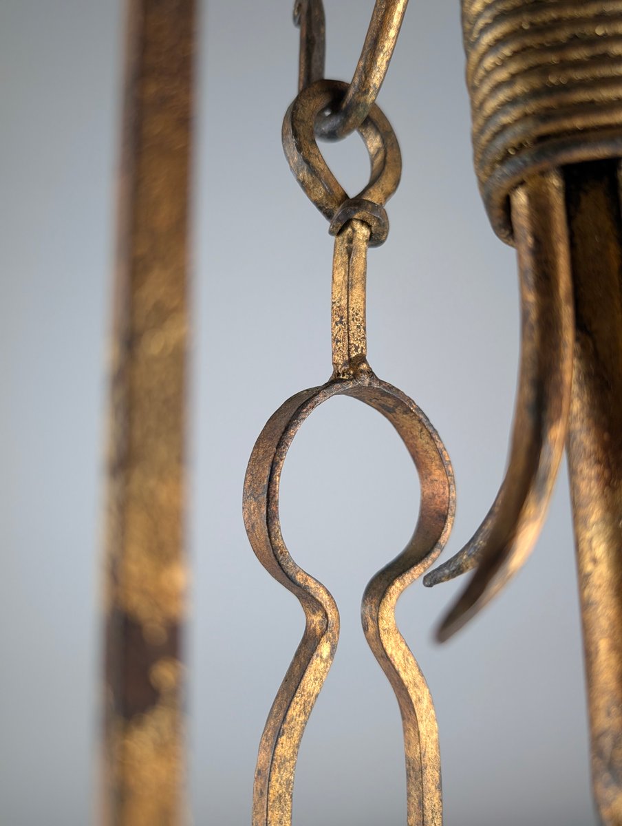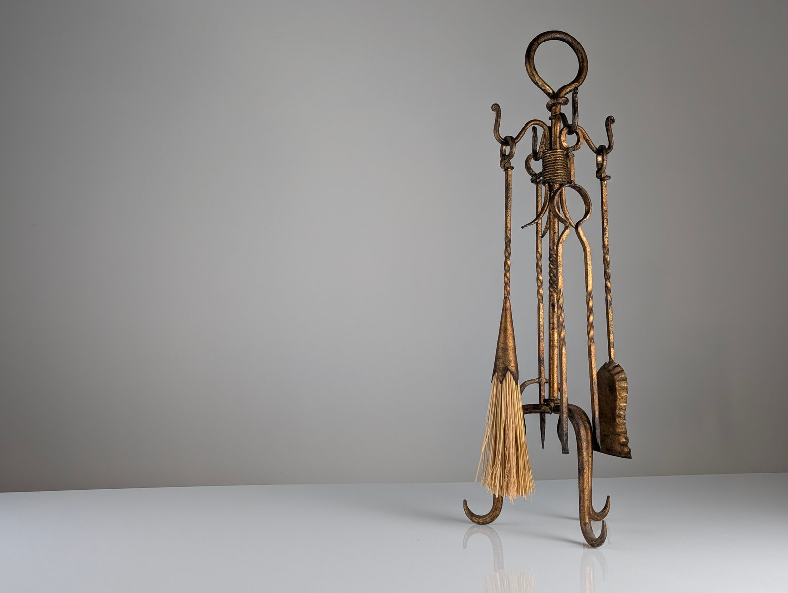 Sculptural Fireplace Tools in Gilded Wrought Iron, 1960s, Set of 5