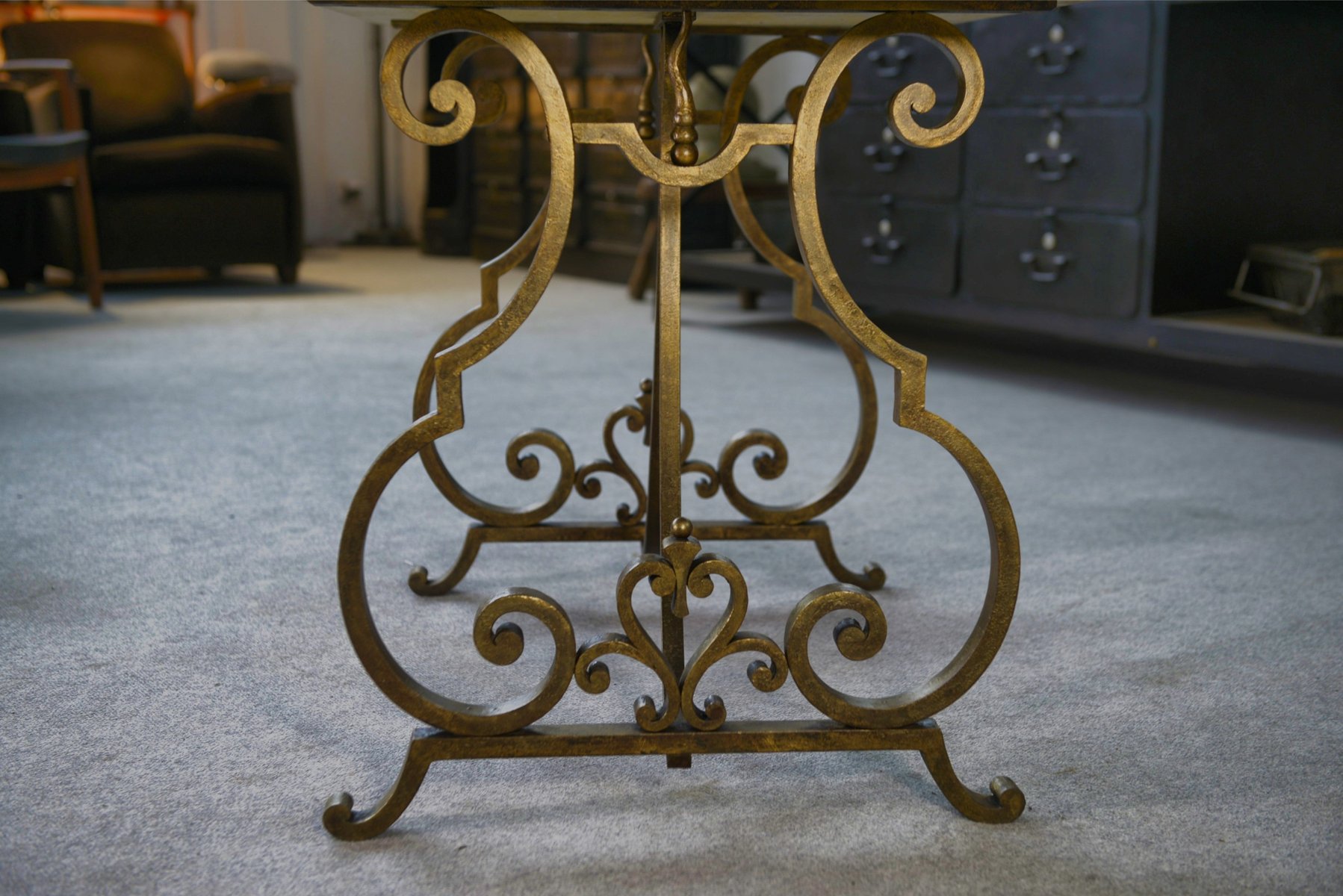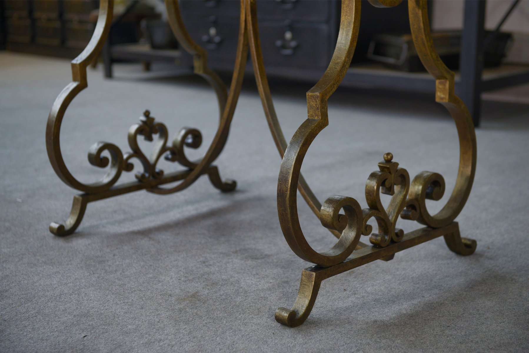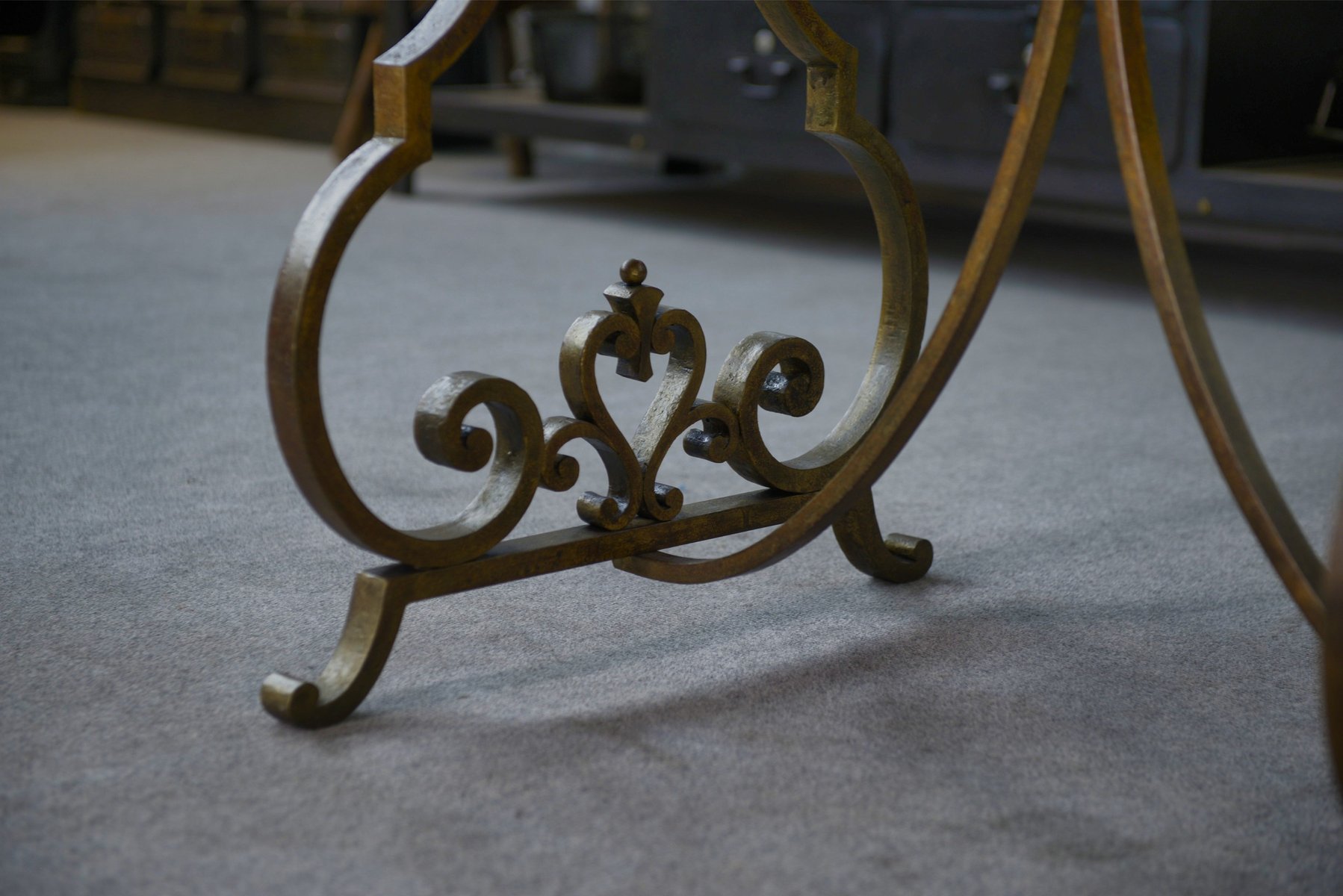 During the 1930 and ’40s, Poillerat continued to design a variety of furniture and architectural elements, including tables, lighting, grilles, and consoles. His early work, in particular, was marked by a calligraphic-like fluidity. He drew inspiration from a variety of sources, including historical architecture and nature. In 1934, he began producing jewelry. In the mid-1930s, under the influence of Christian Bérard and Jean Cocteau, Poillerat found inspiration in the Neo-baroque movement.