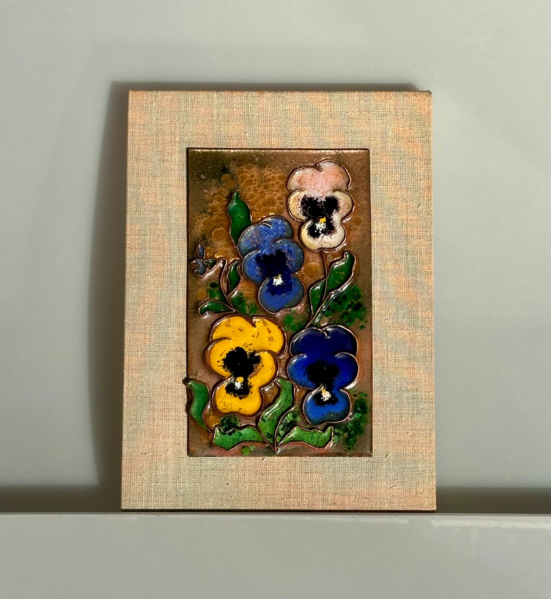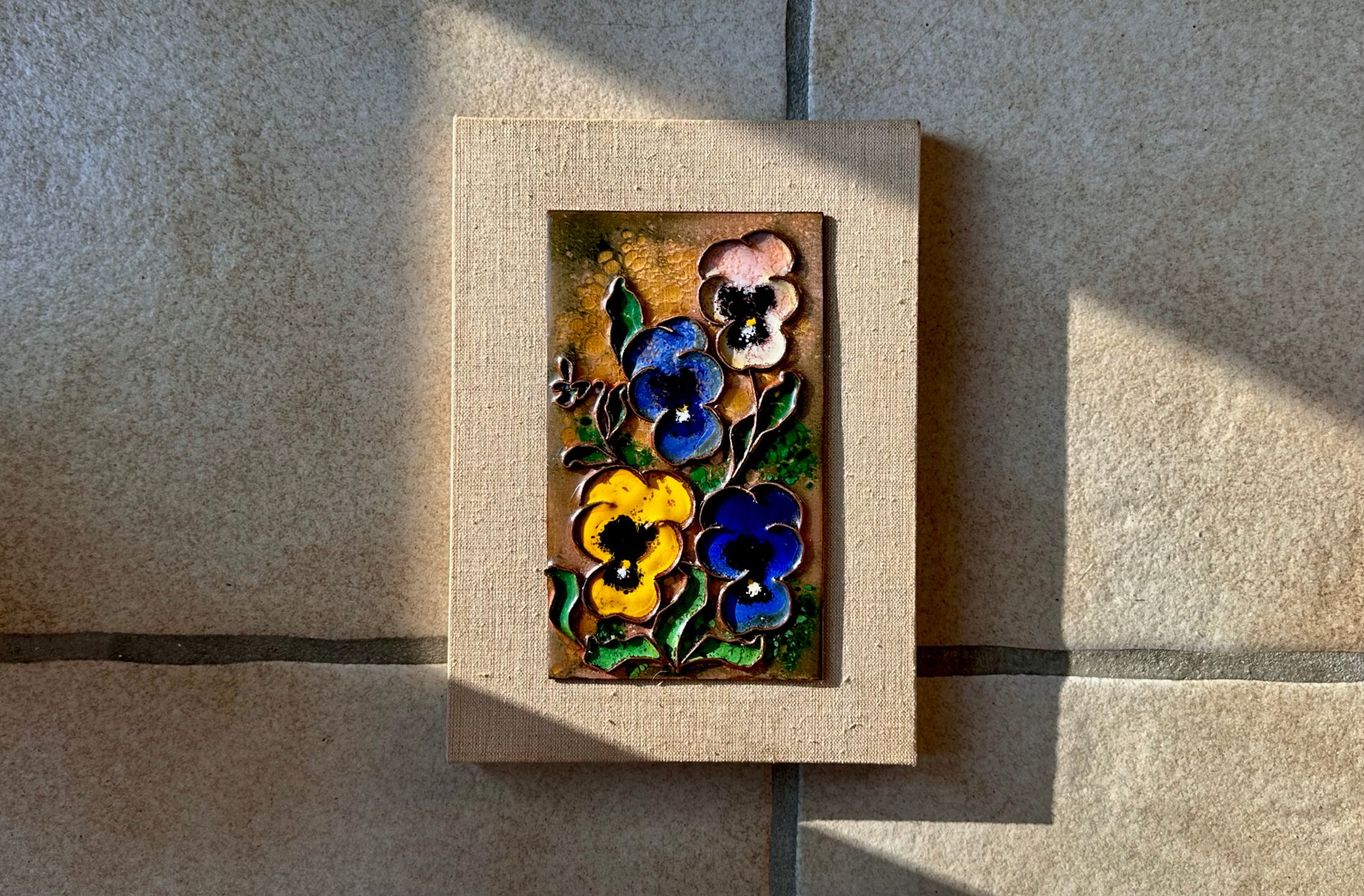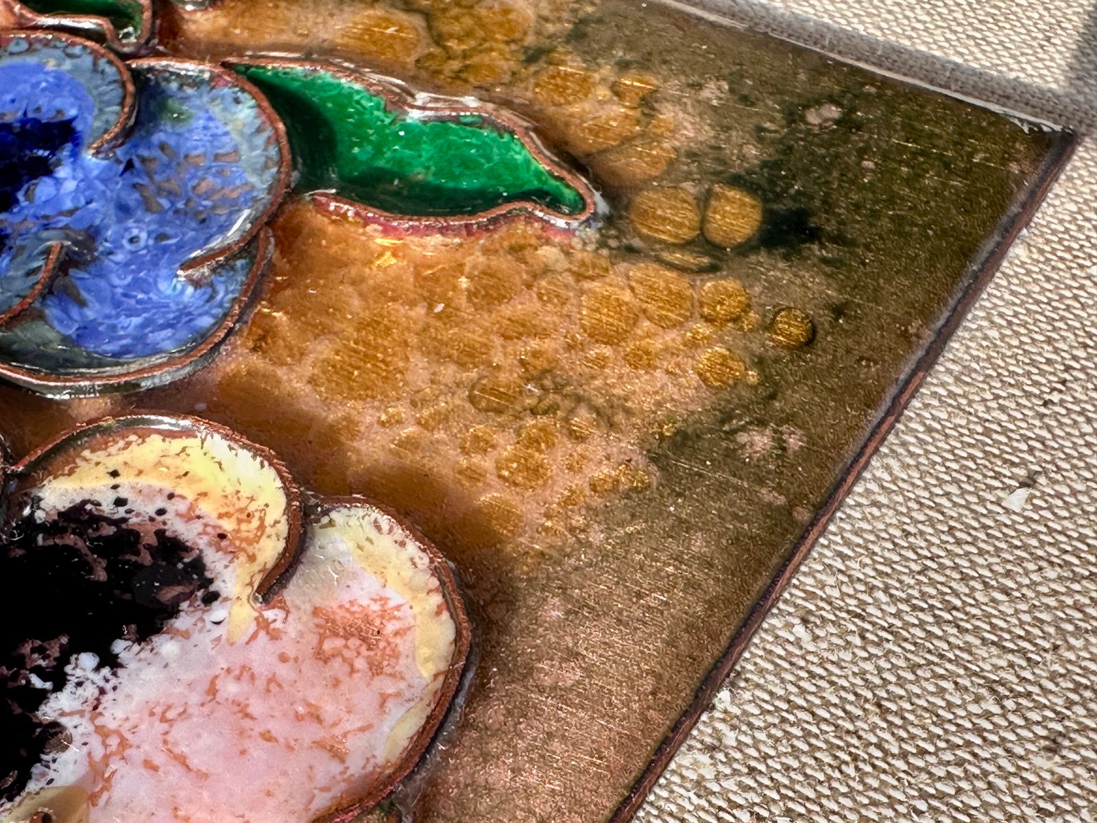 Small Enamel Art Picture in Cloisonné Technique with Floral Motif from Steg-Email, 1960s